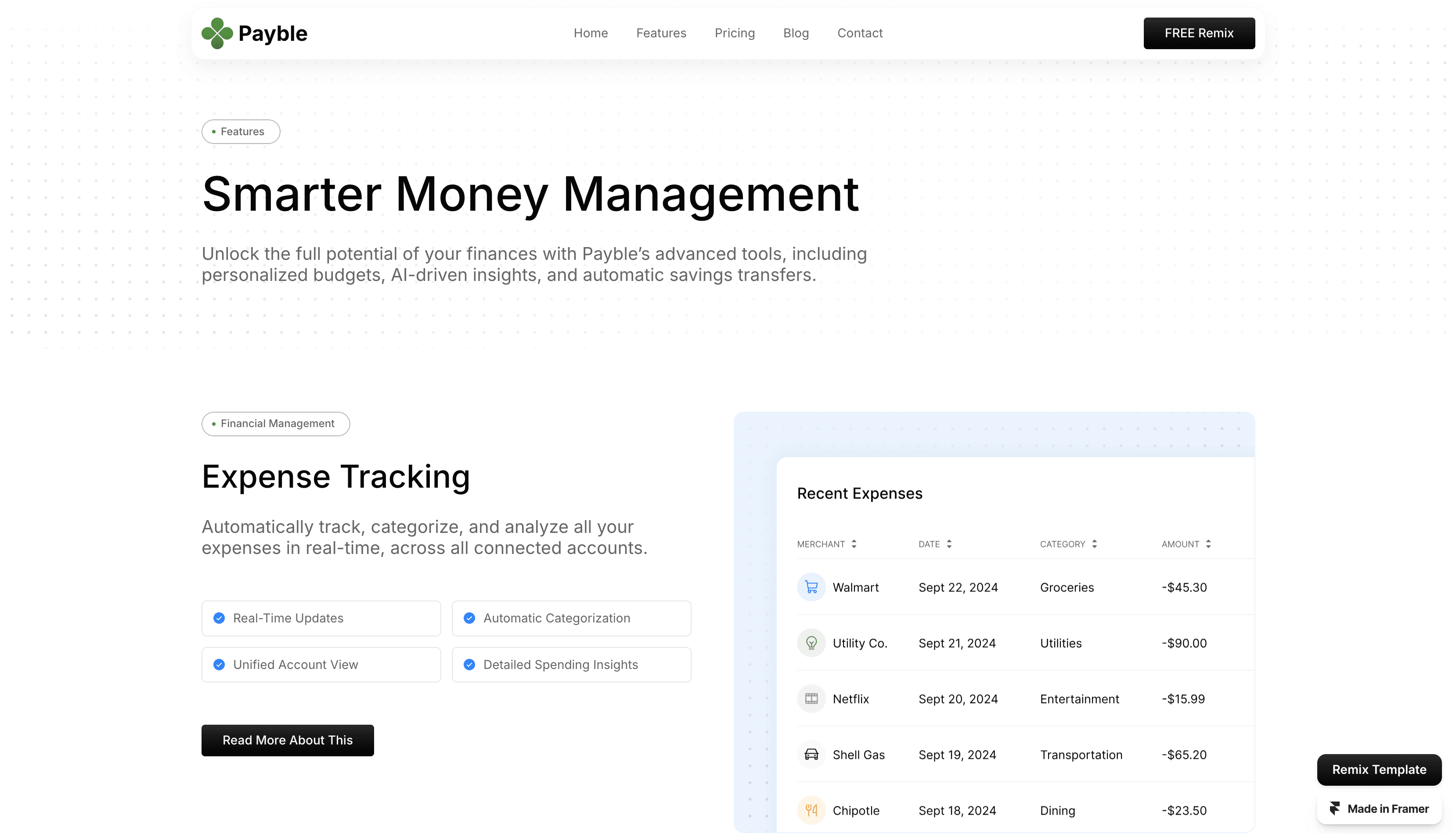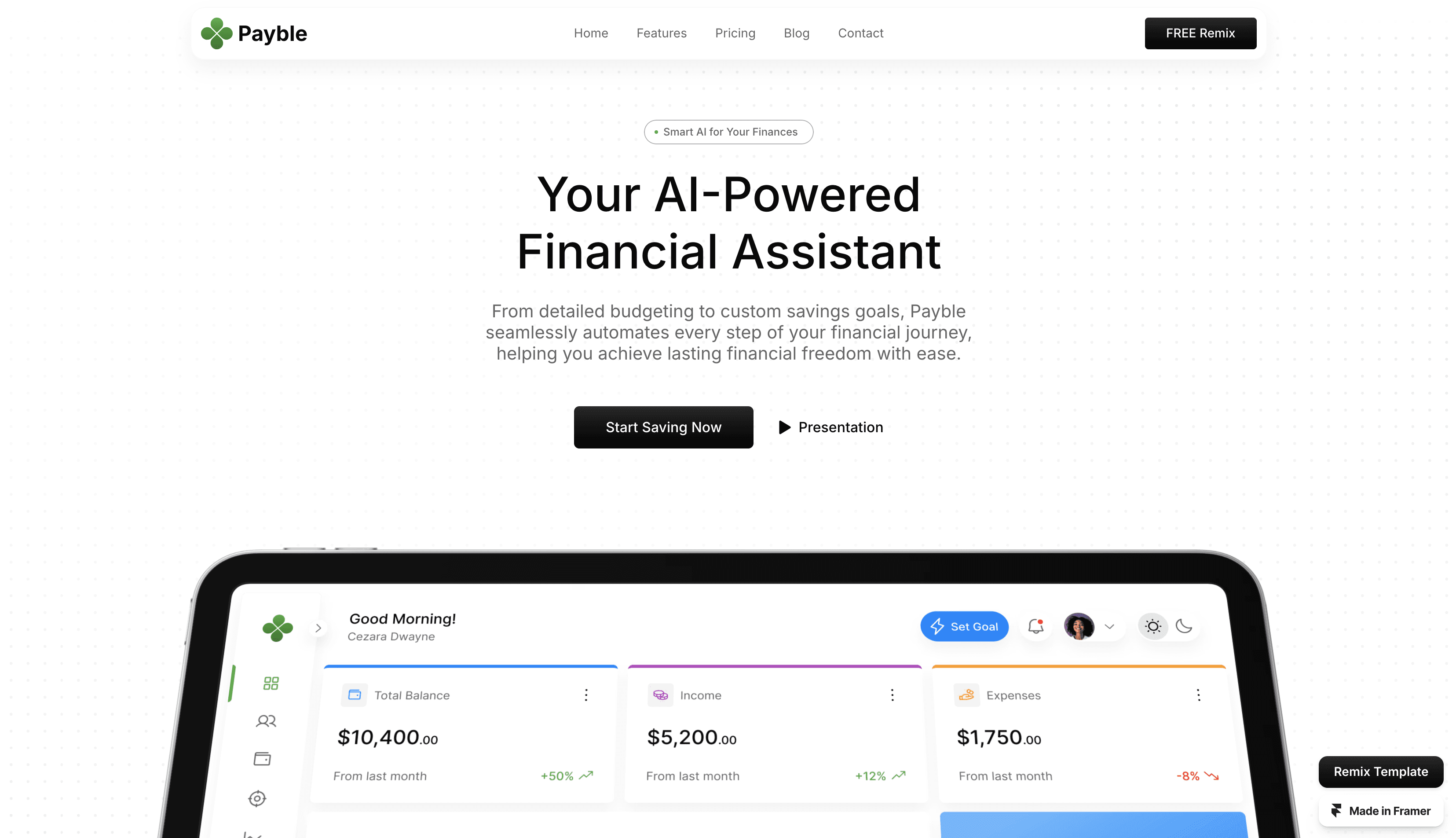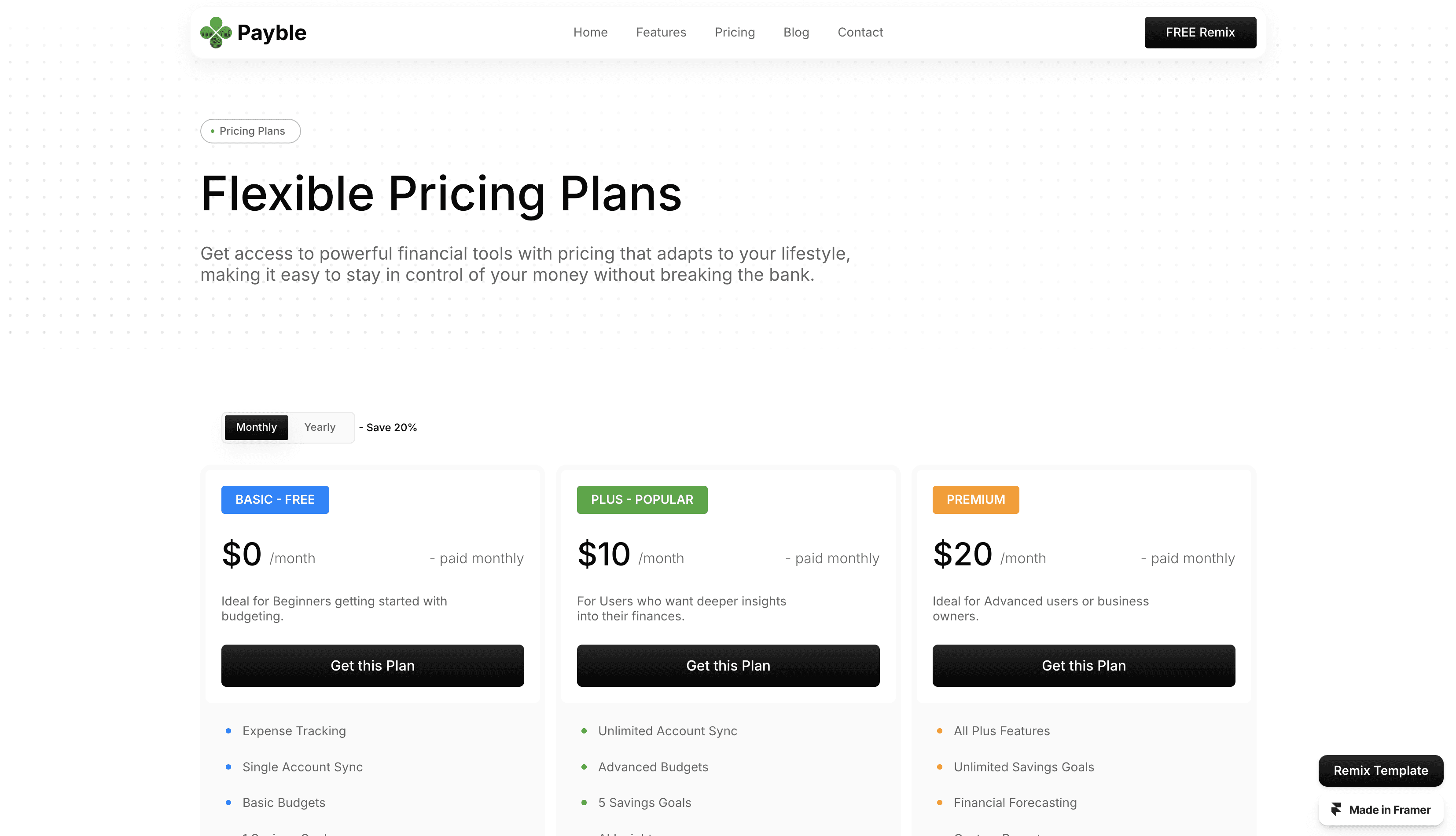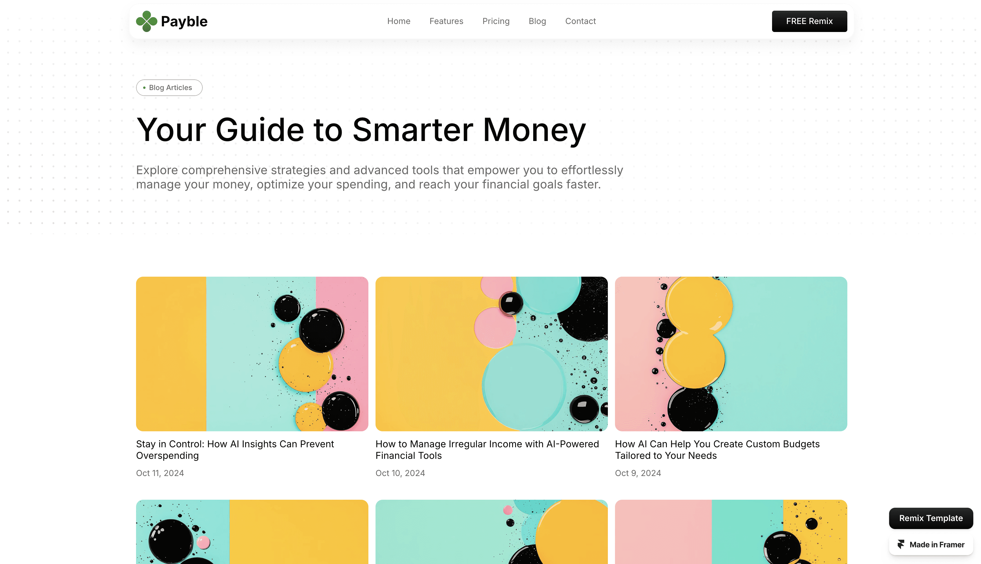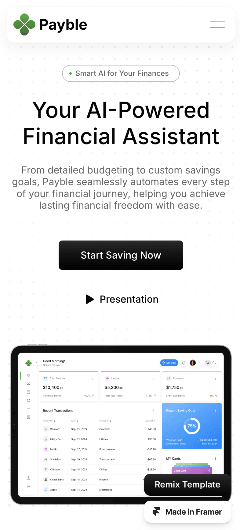 Bring your financial platform vision to life with Payble, a sleek and versatile Framer template crafted for innovators in the personal finance space.