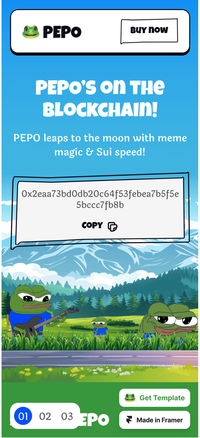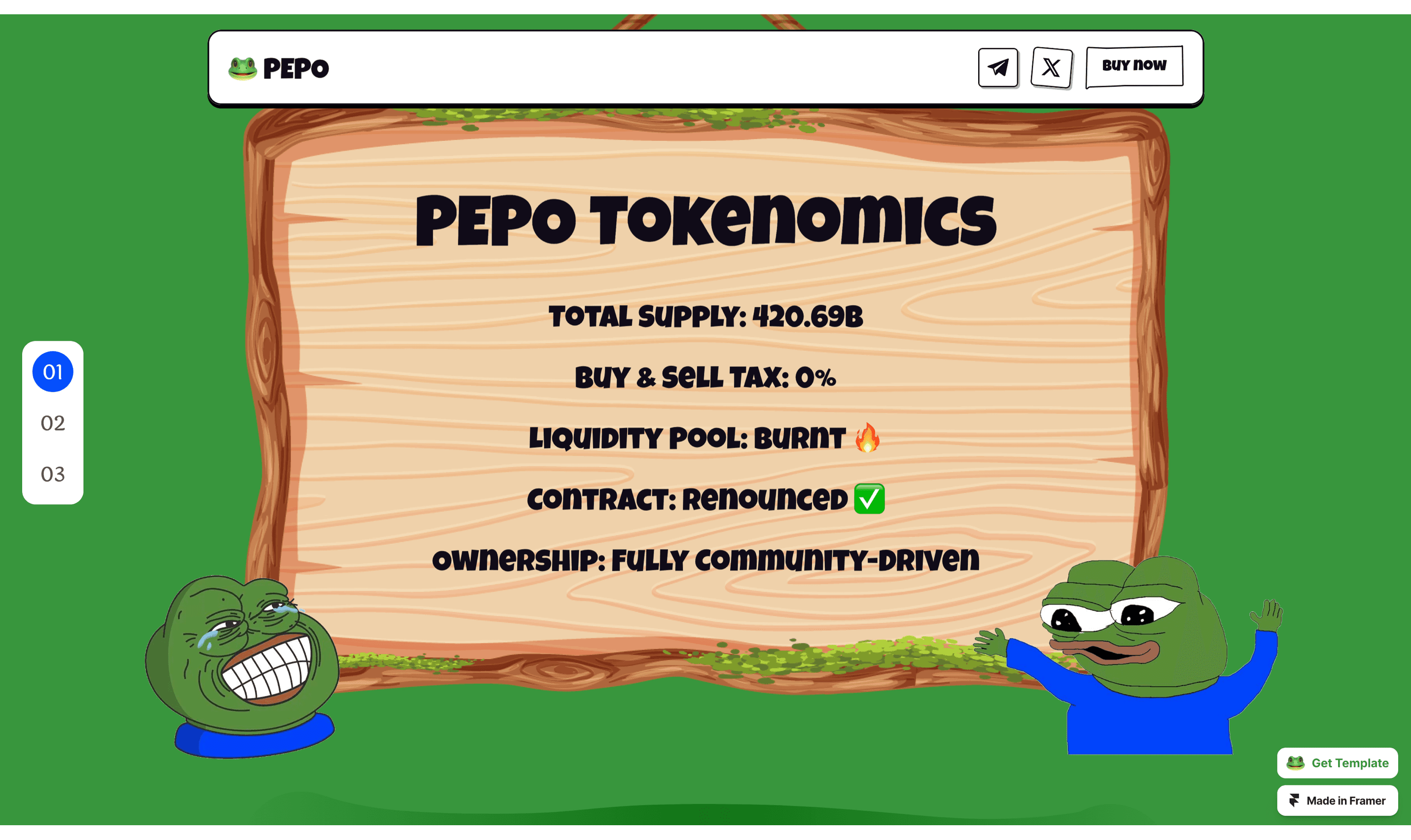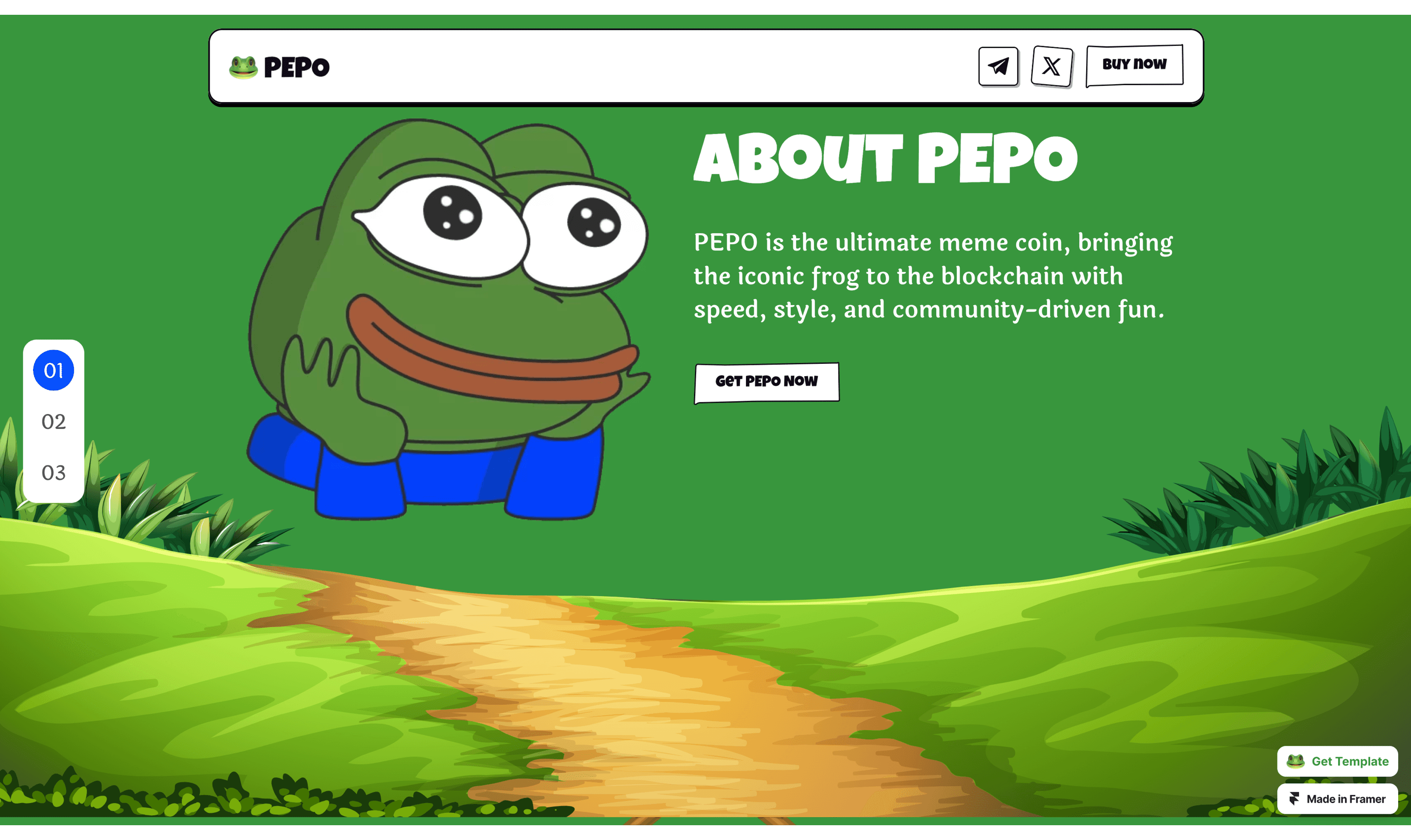 PEPO is a high-converting landing page built for launching memecoins, cryptocurrency projects, and viral crypto tokens.