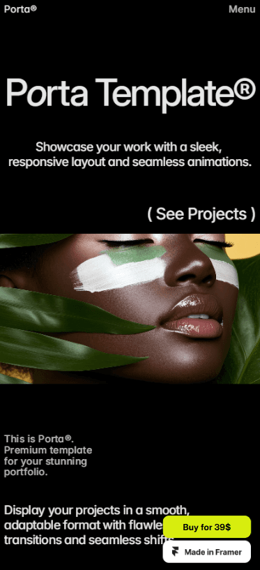 Porta Template® is a sleek, minimalist premium portfolio template for Framer. Clean design, smooth animations, and flawless typography.