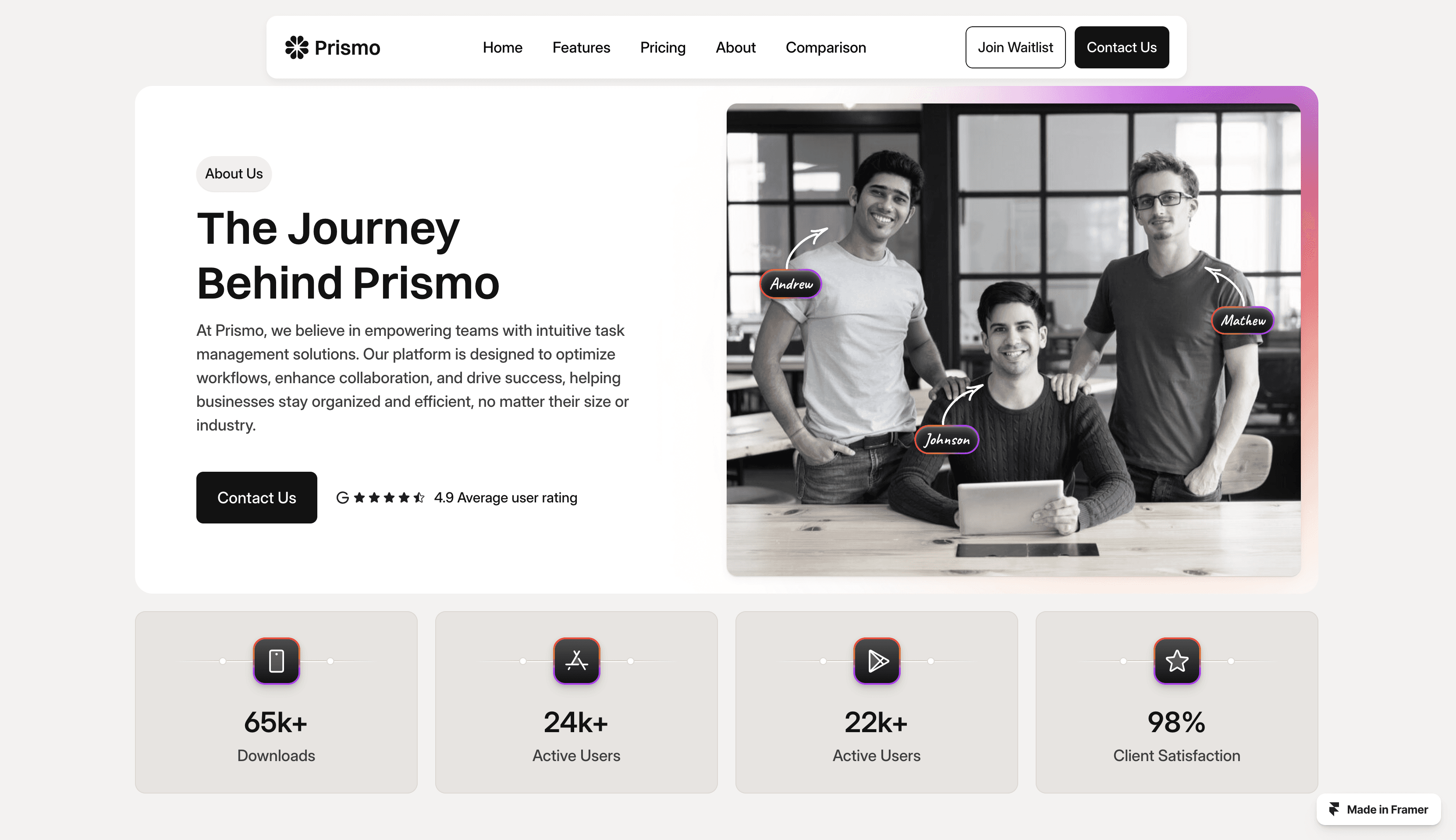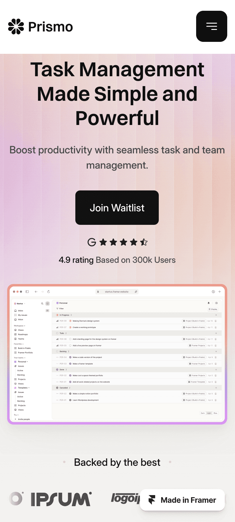 Prismo is a modern landing page template crafted for SaaS products and startups that want to stand out.