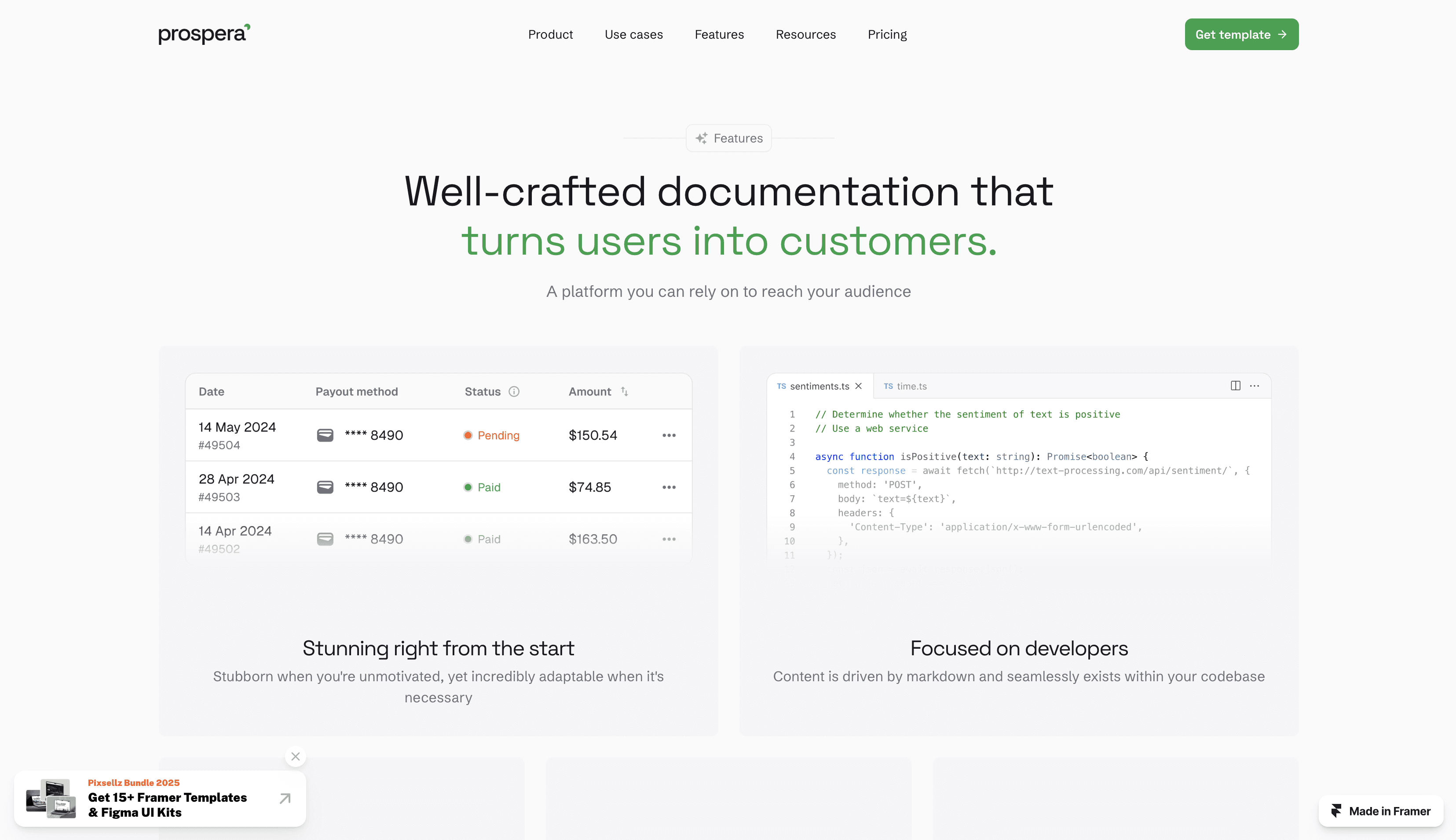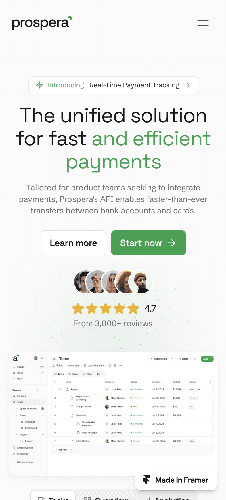 Prospera – a modern, responsive SaaS template for payment platforms.