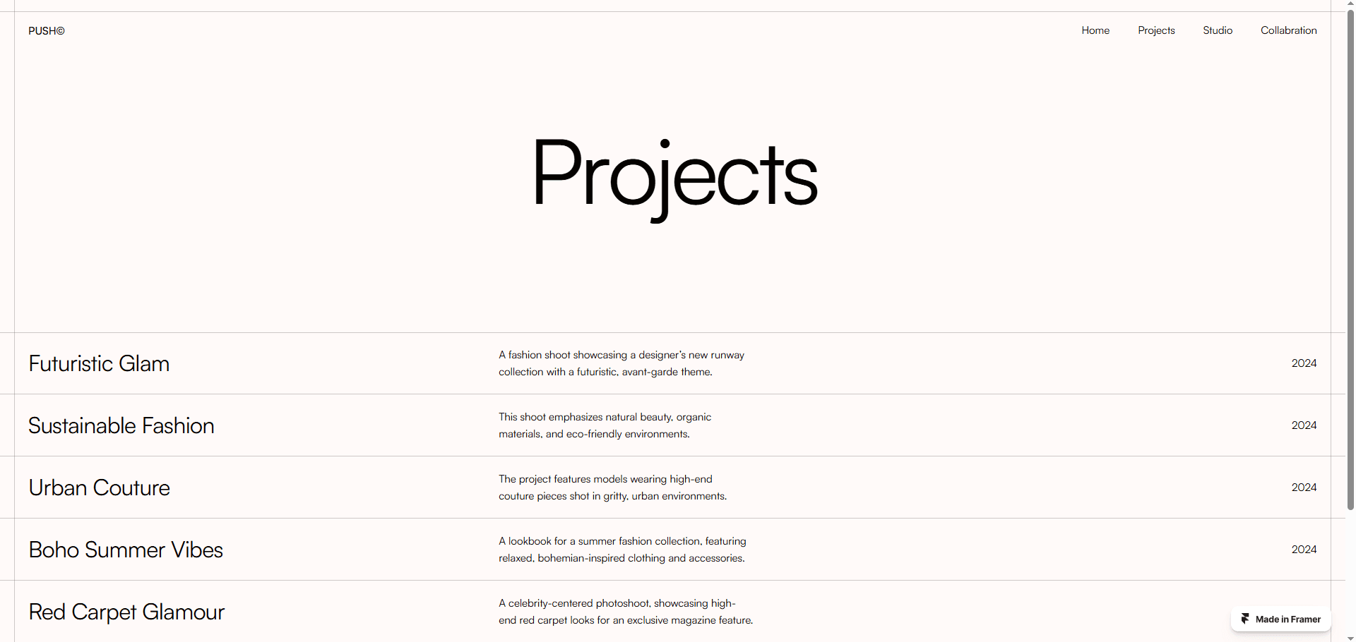 A sleek and modern Framer template designed for creatives and professionals to showcase their work beautifully.