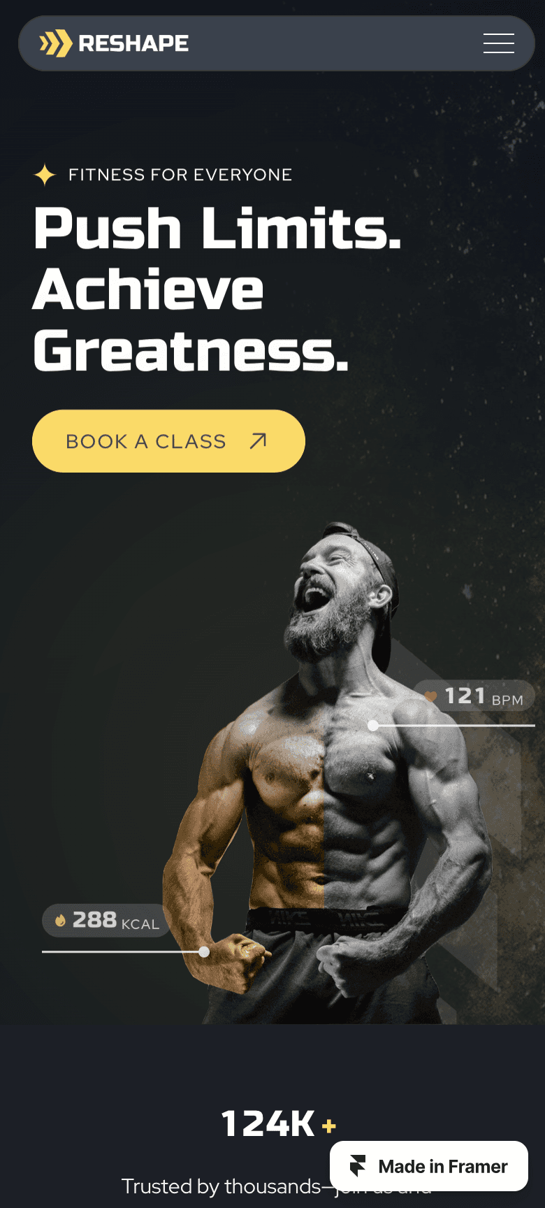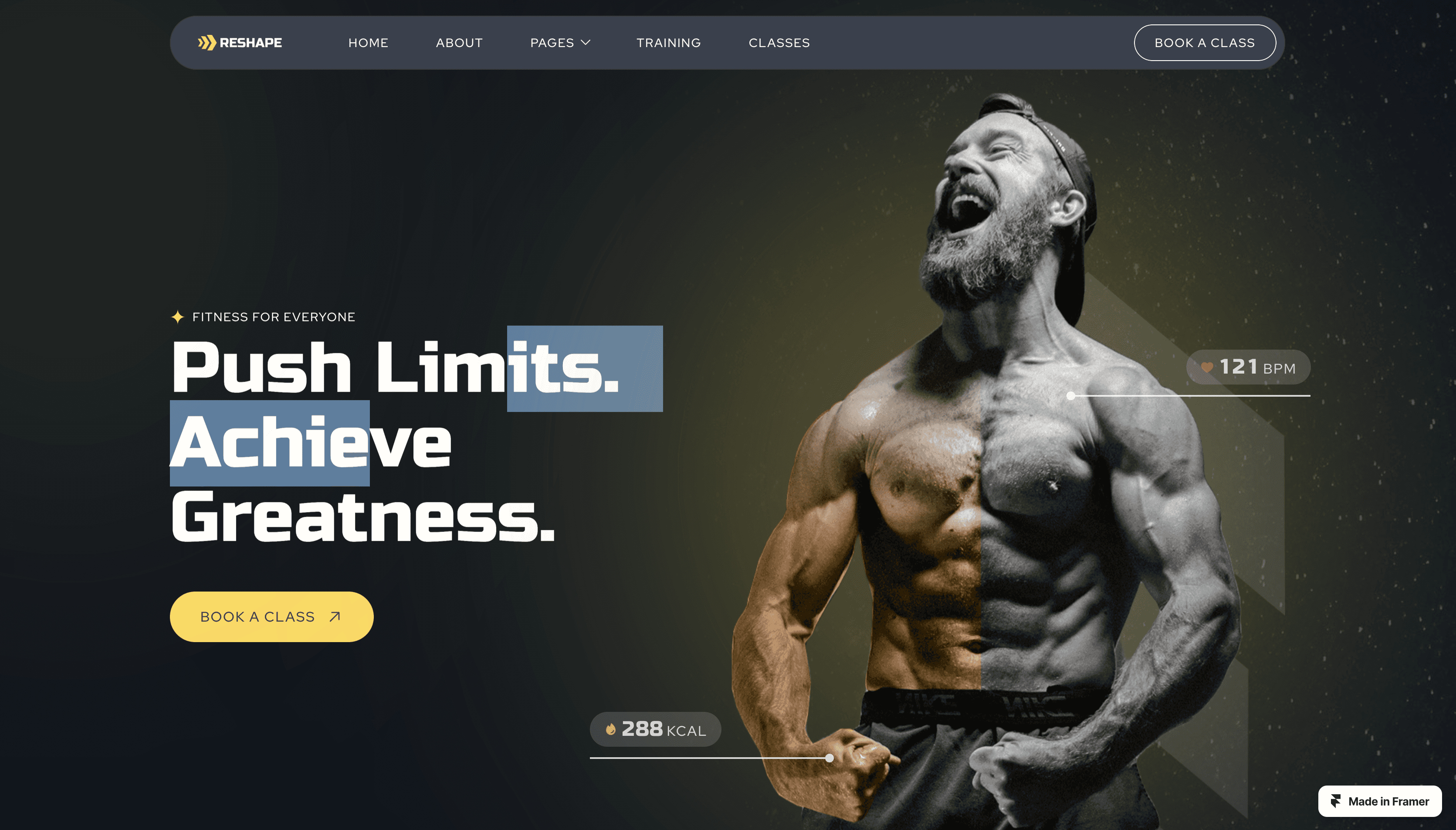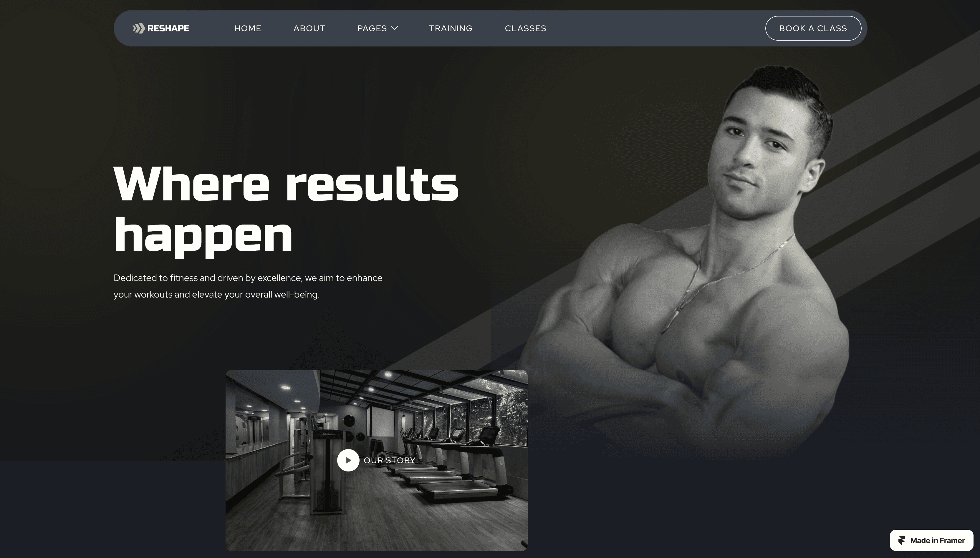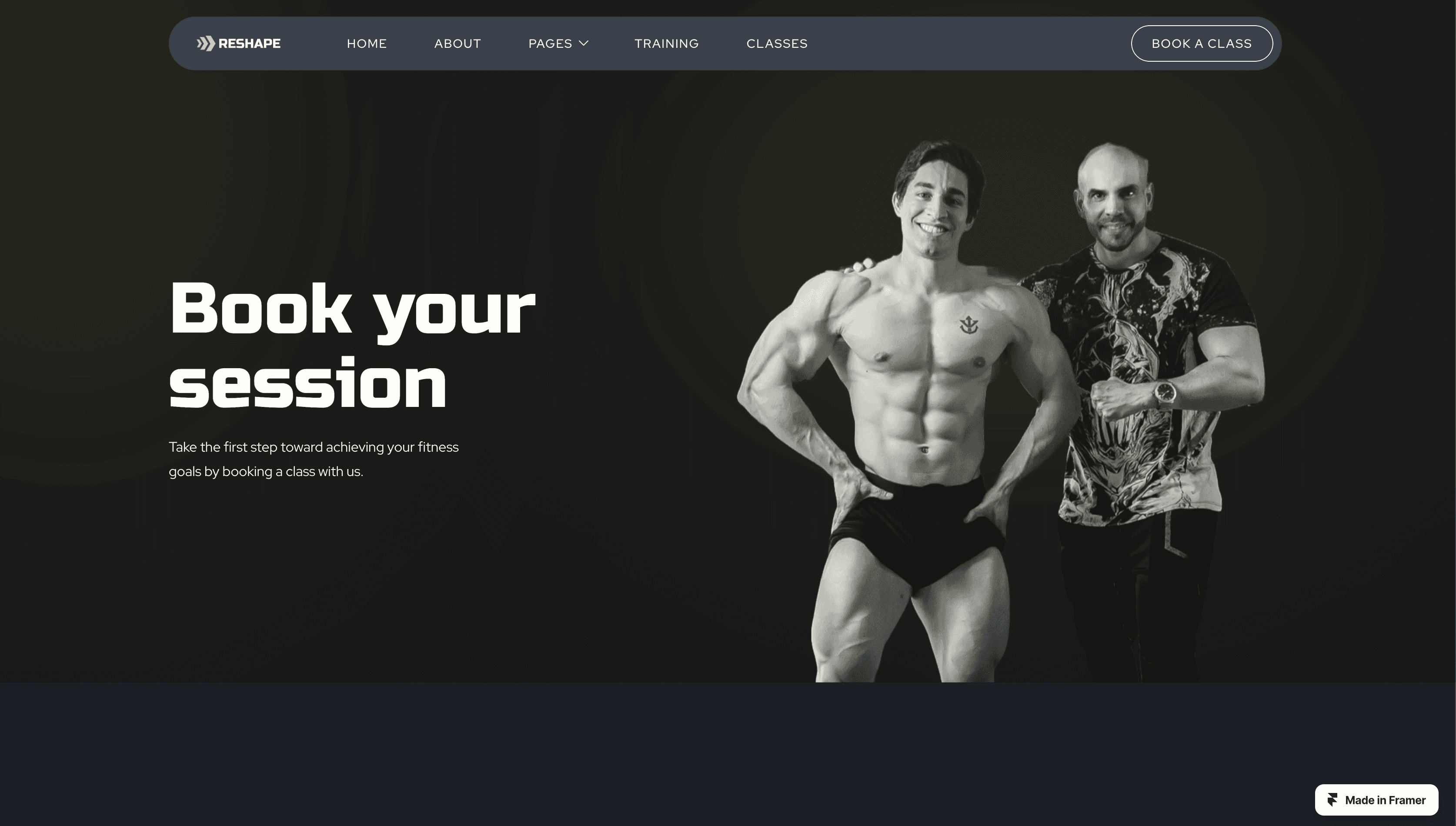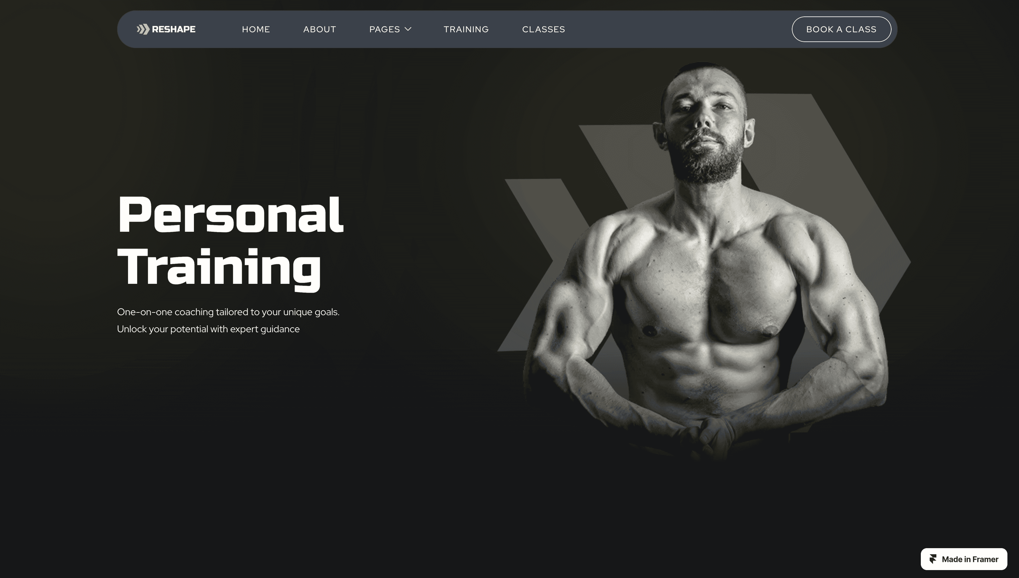 Reshape is a modern Framer template for gyms, trainers, & wellness brands.