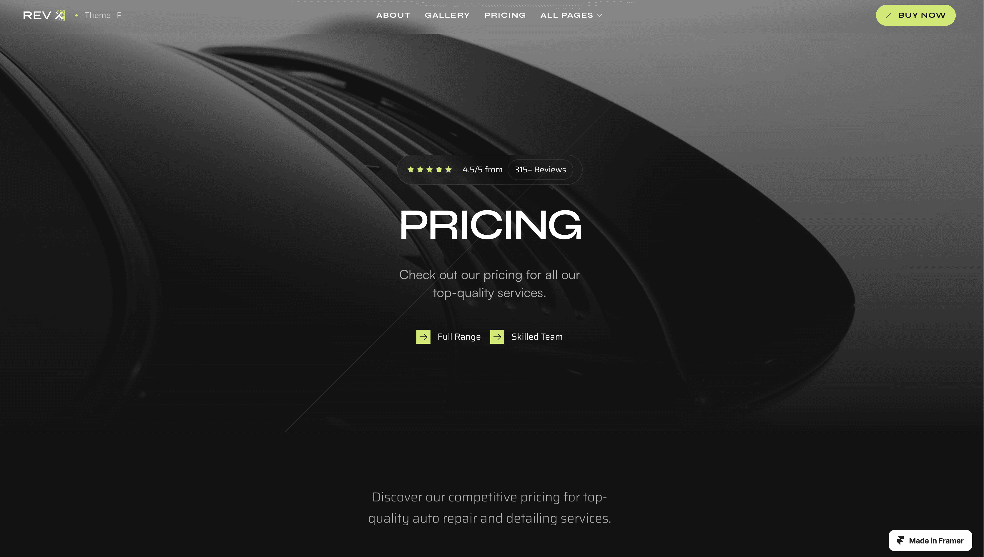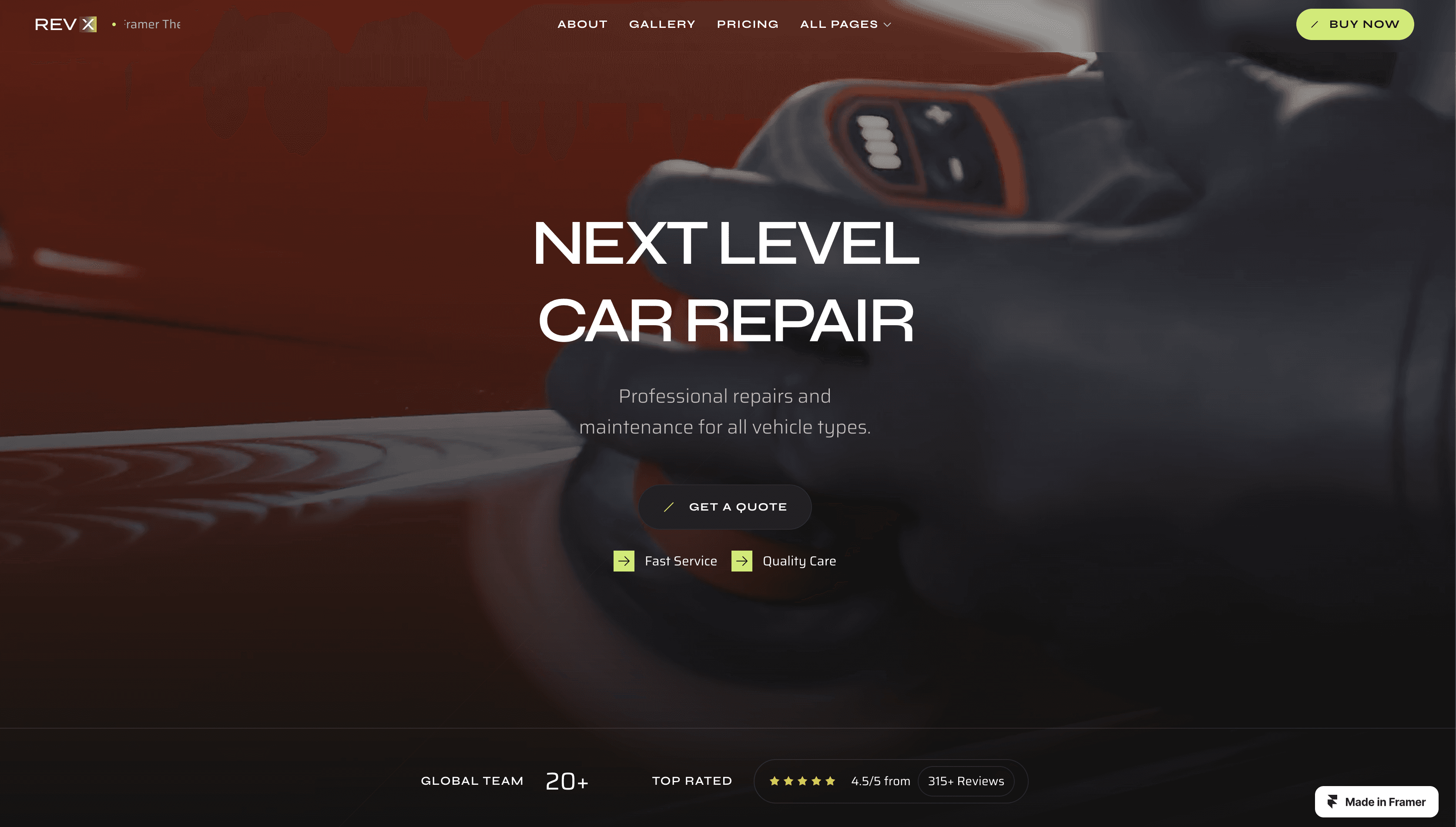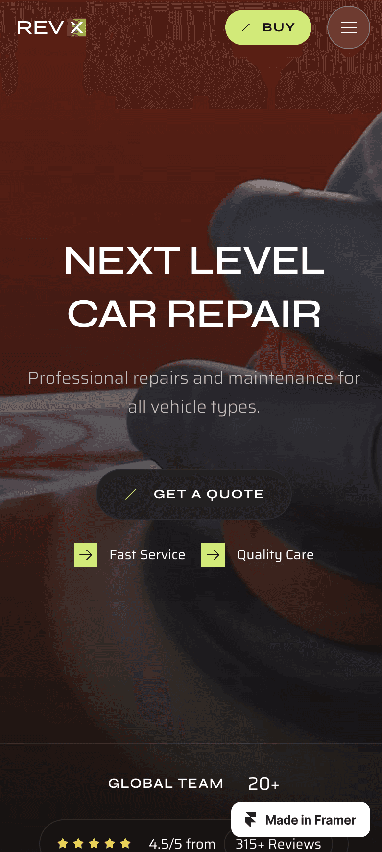 RevX is a versatile template for body shops and car garages.