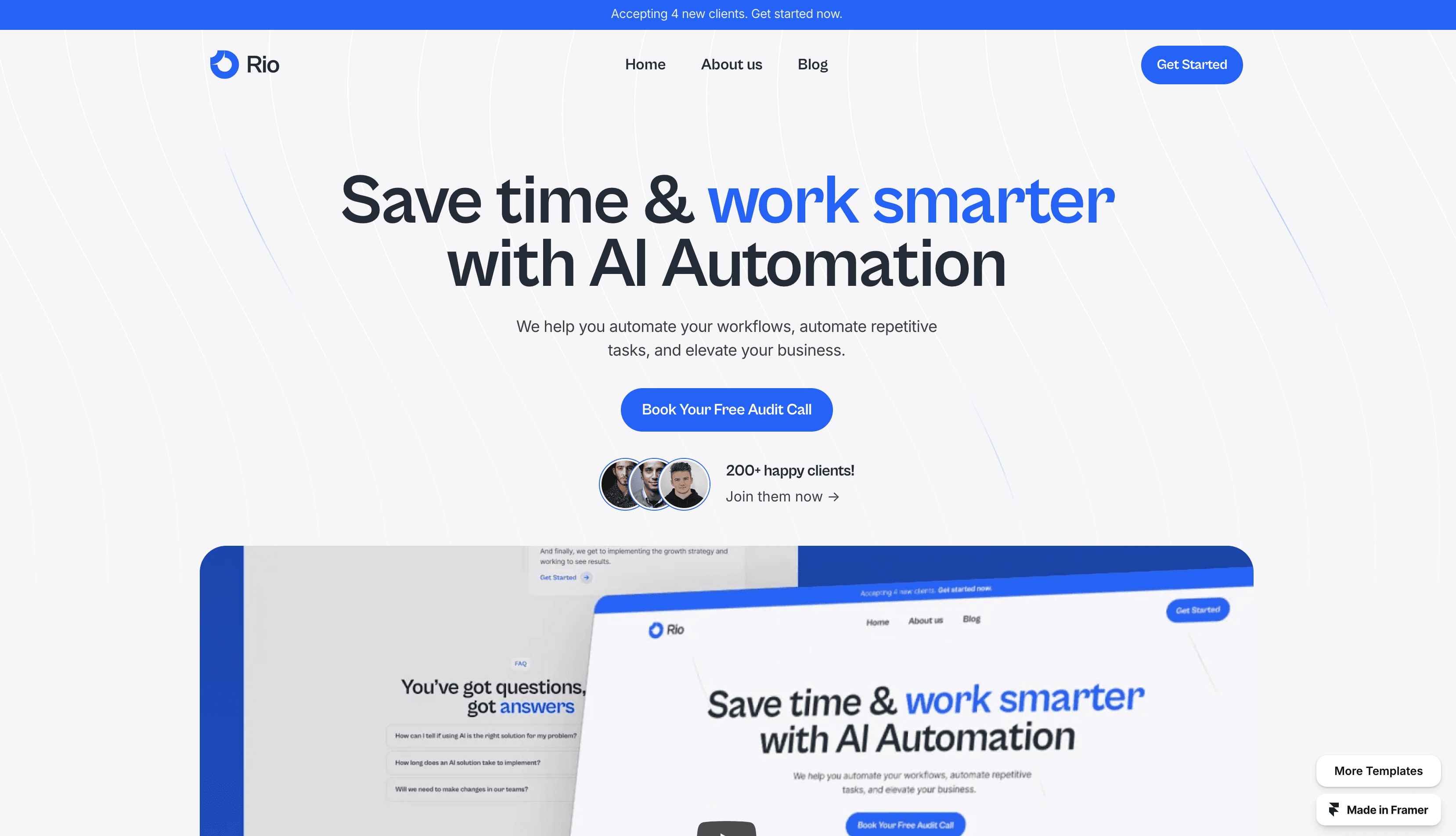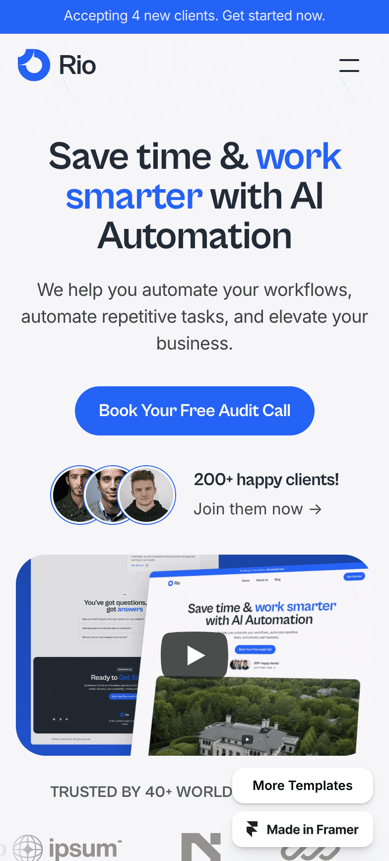 Rio is a Framer template built for AI Automation agencies that are looking to increase their conversion rate, showcase their work, and boost their brand credibility.