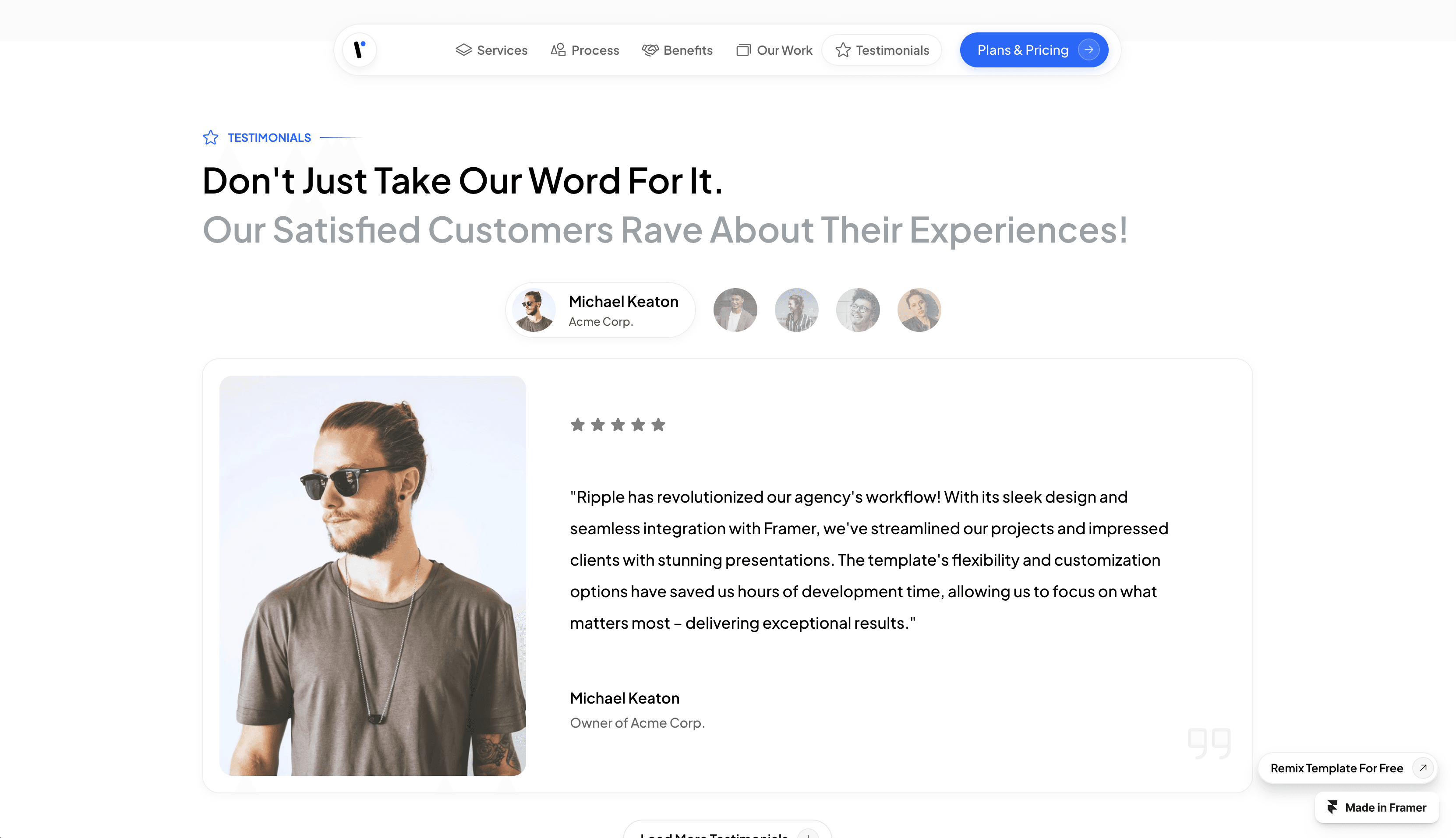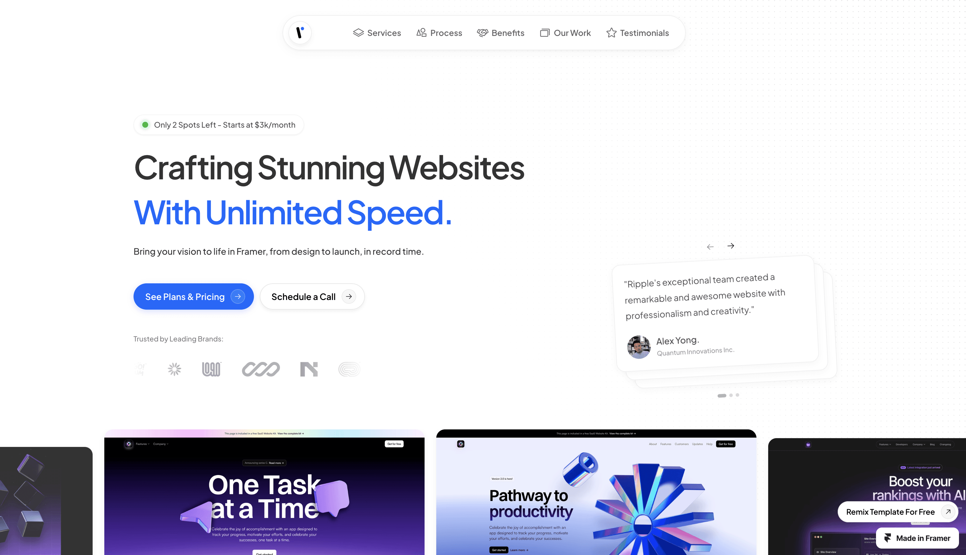 Ripple is a cutting-edge, expertly crafted Subscription agency Template for Framer designed to empower companies to establish a visually stunning online presence in record time, ultimately driving clients and business growth.