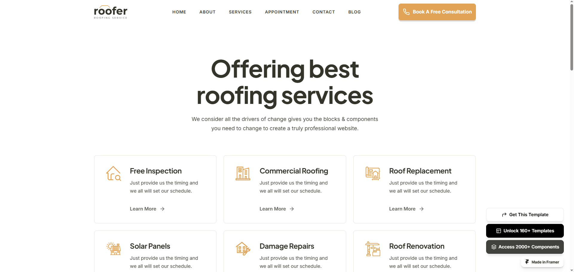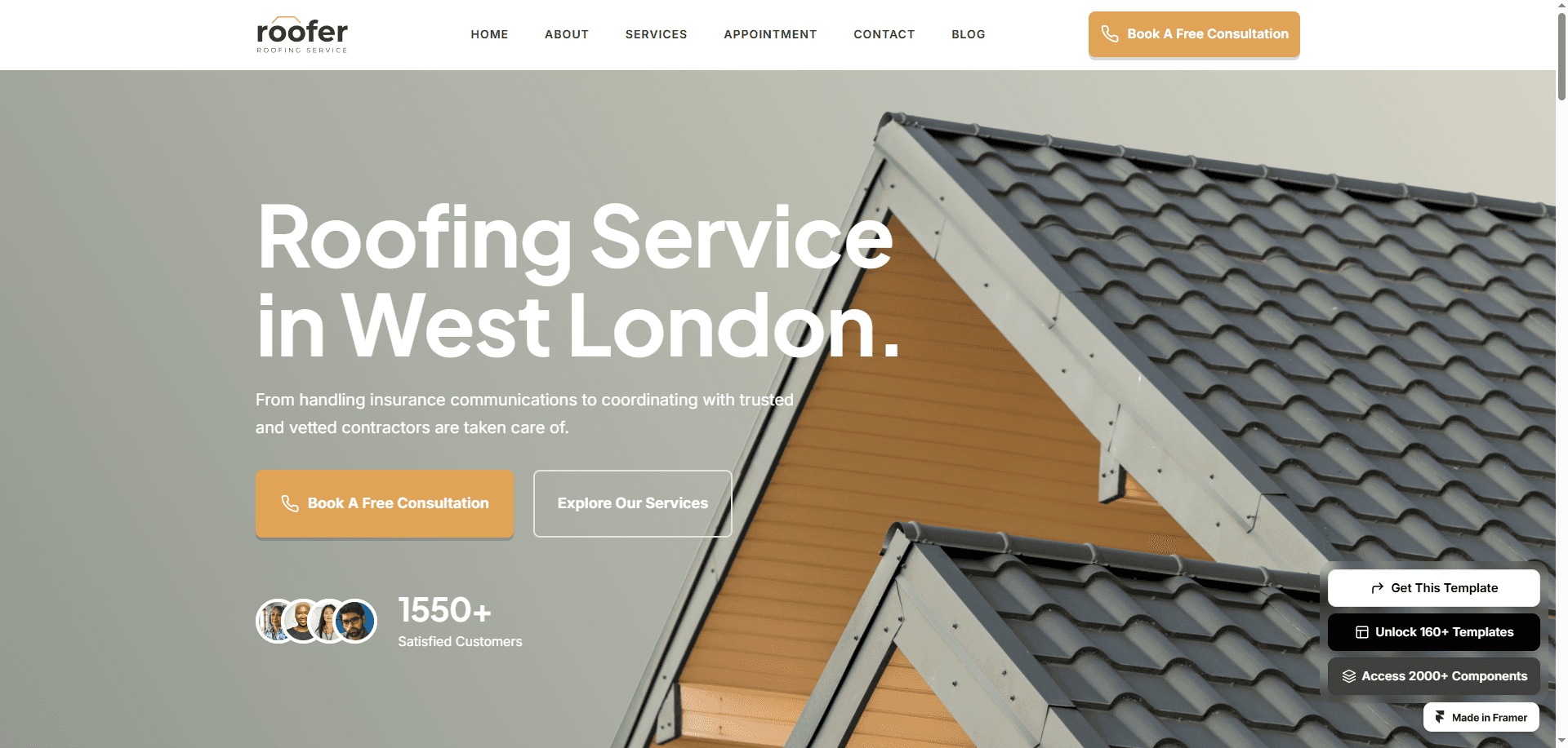 Introducing Roofer, the ultimate Framer template designed specifically for roofing and solar service businesses.