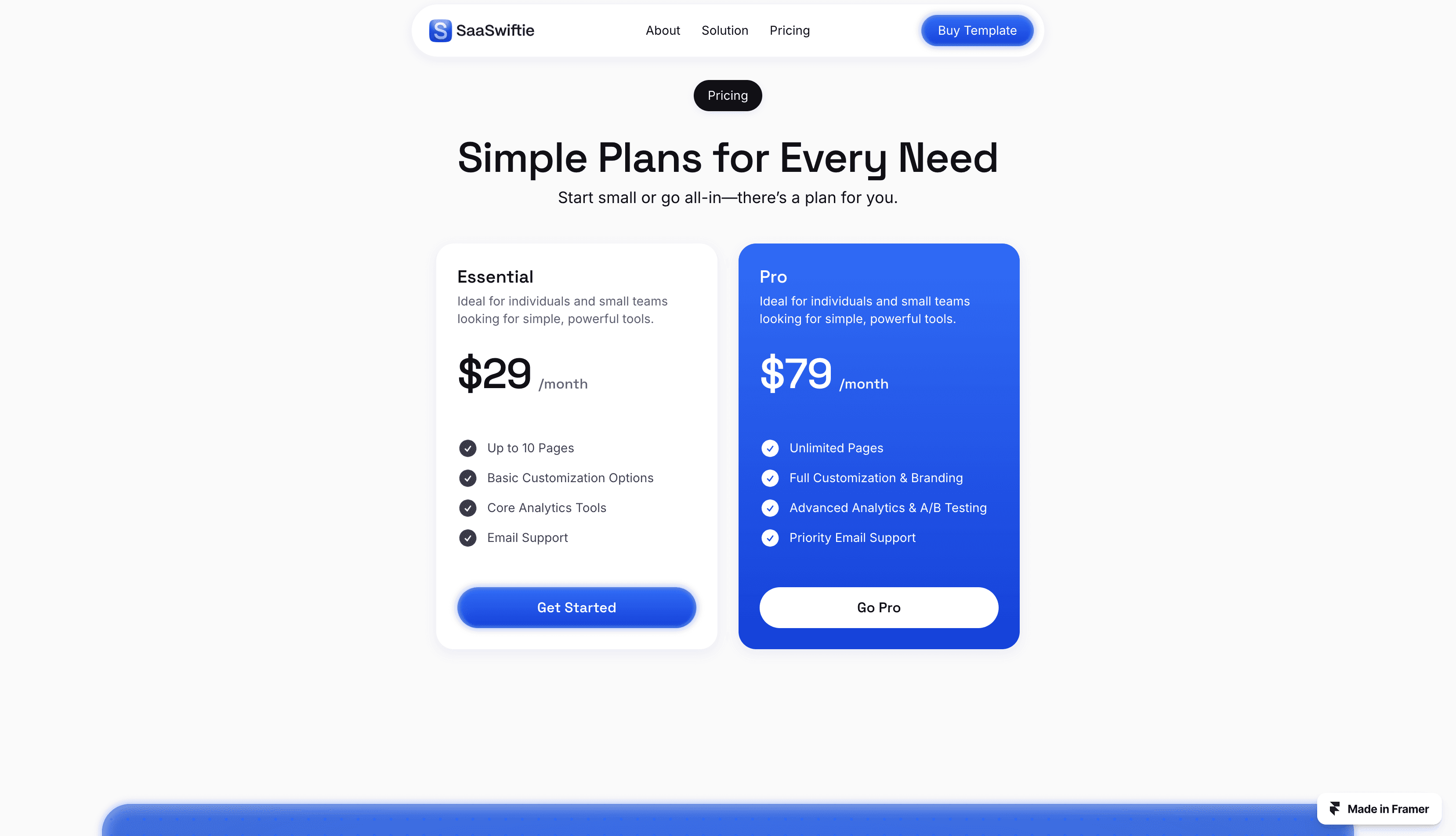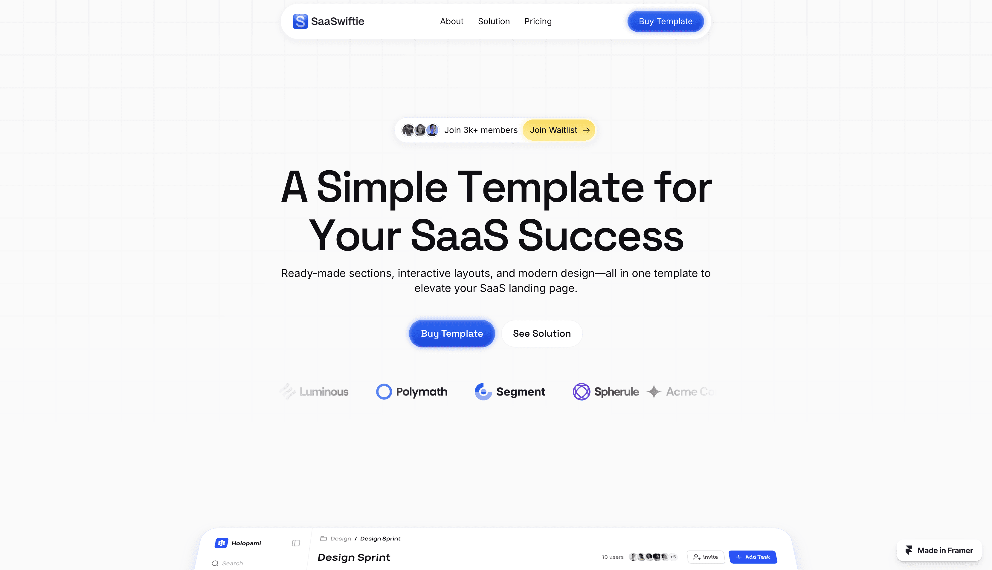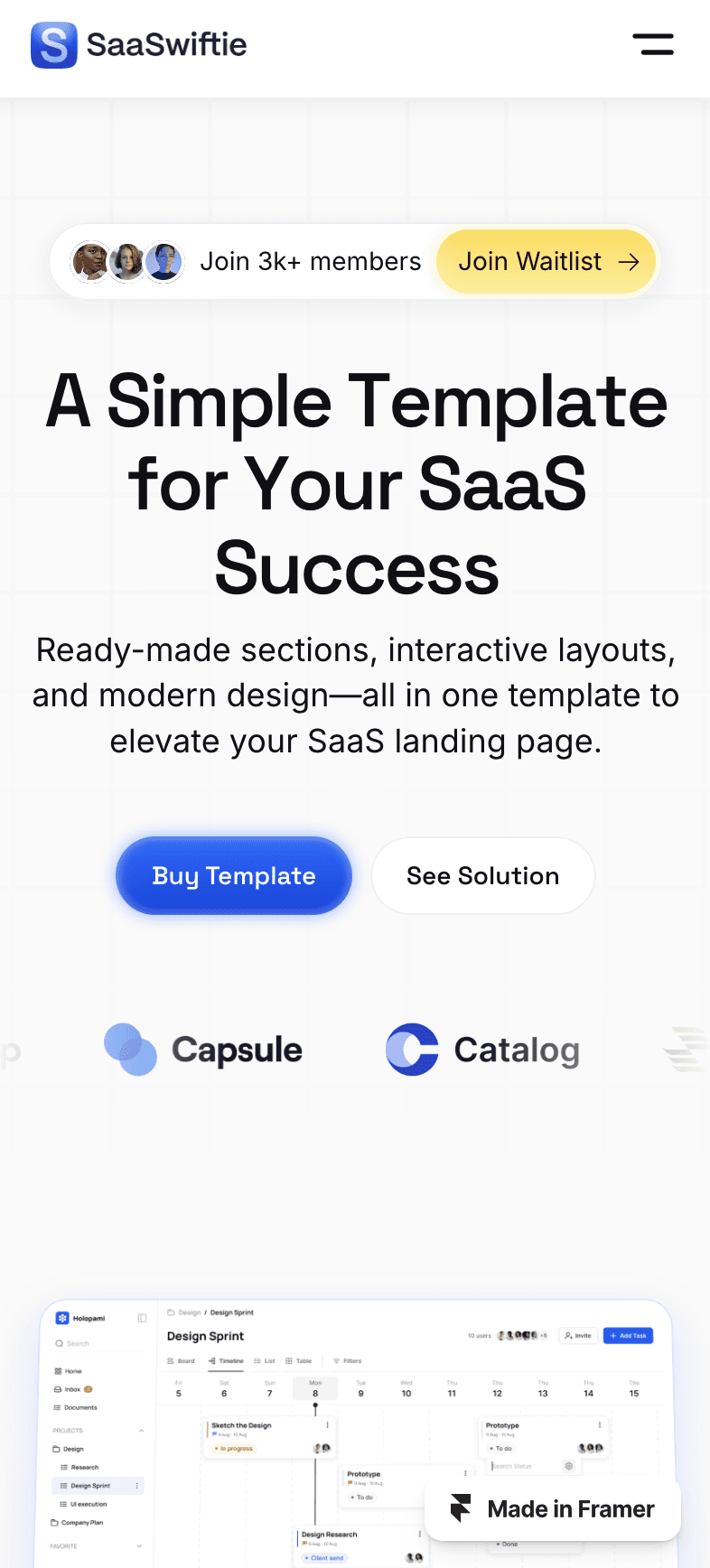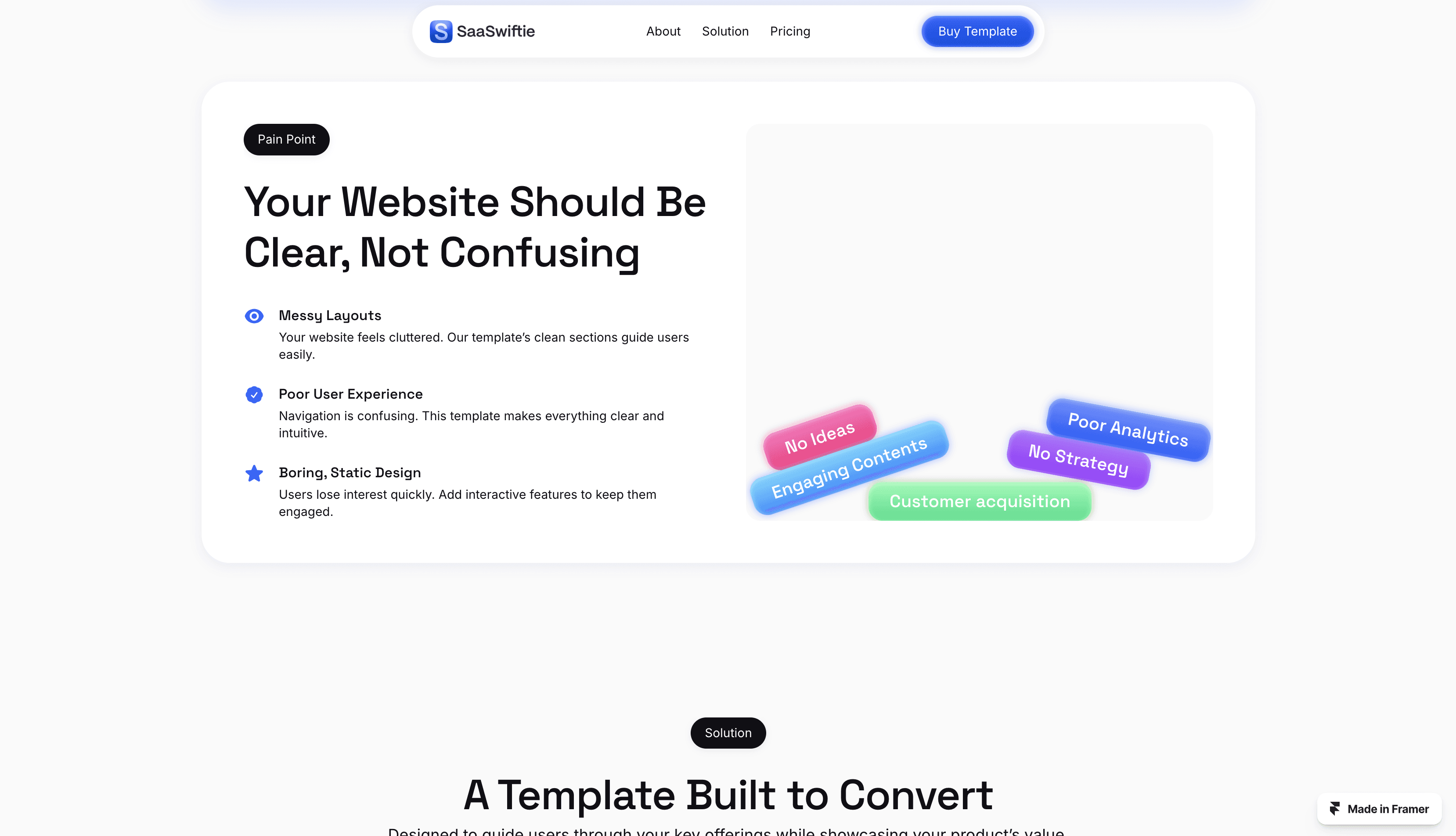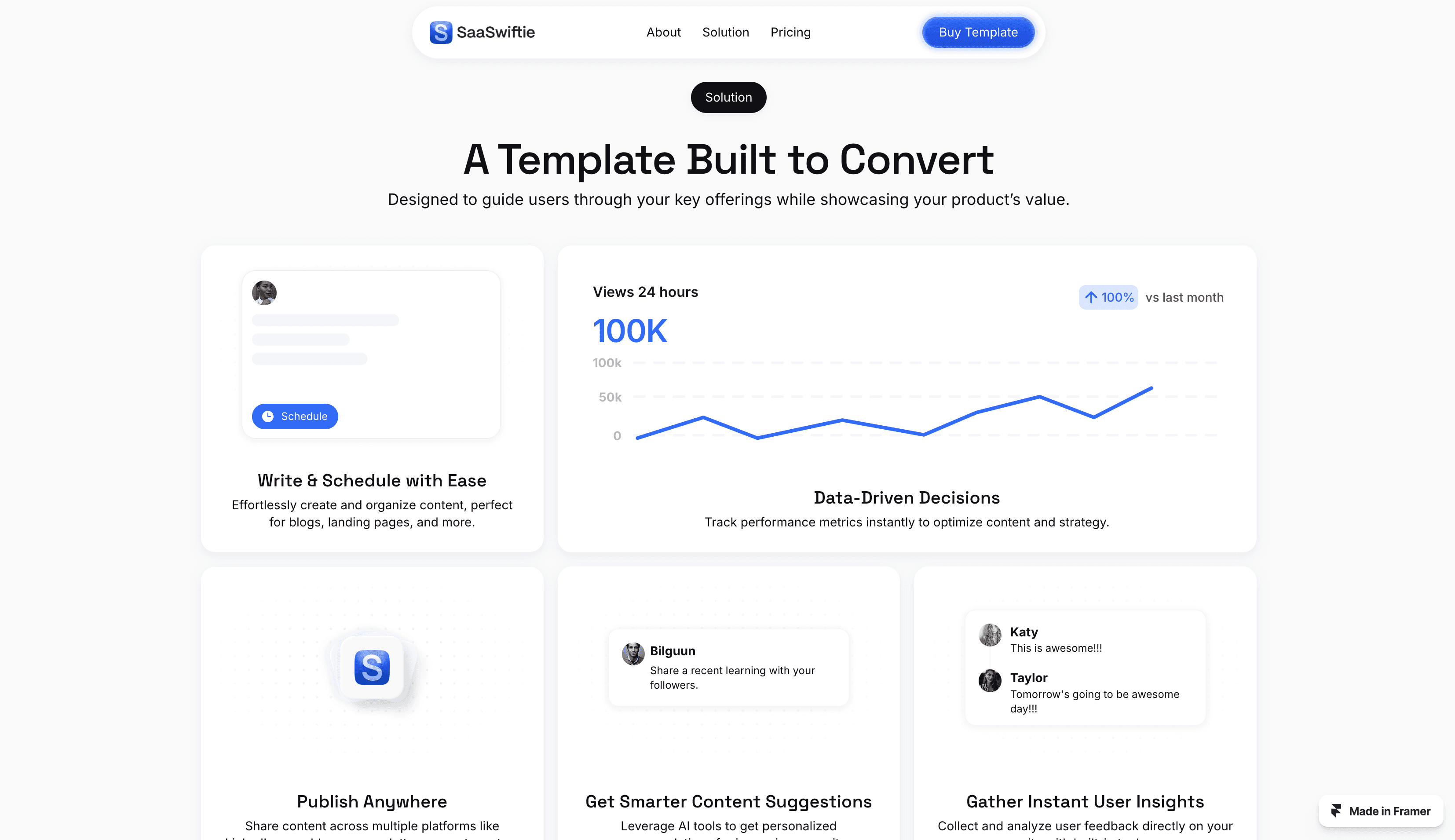 SaaSwiftie is a clean, highly interactive landing page template for SaaS companies, designed in Framer.