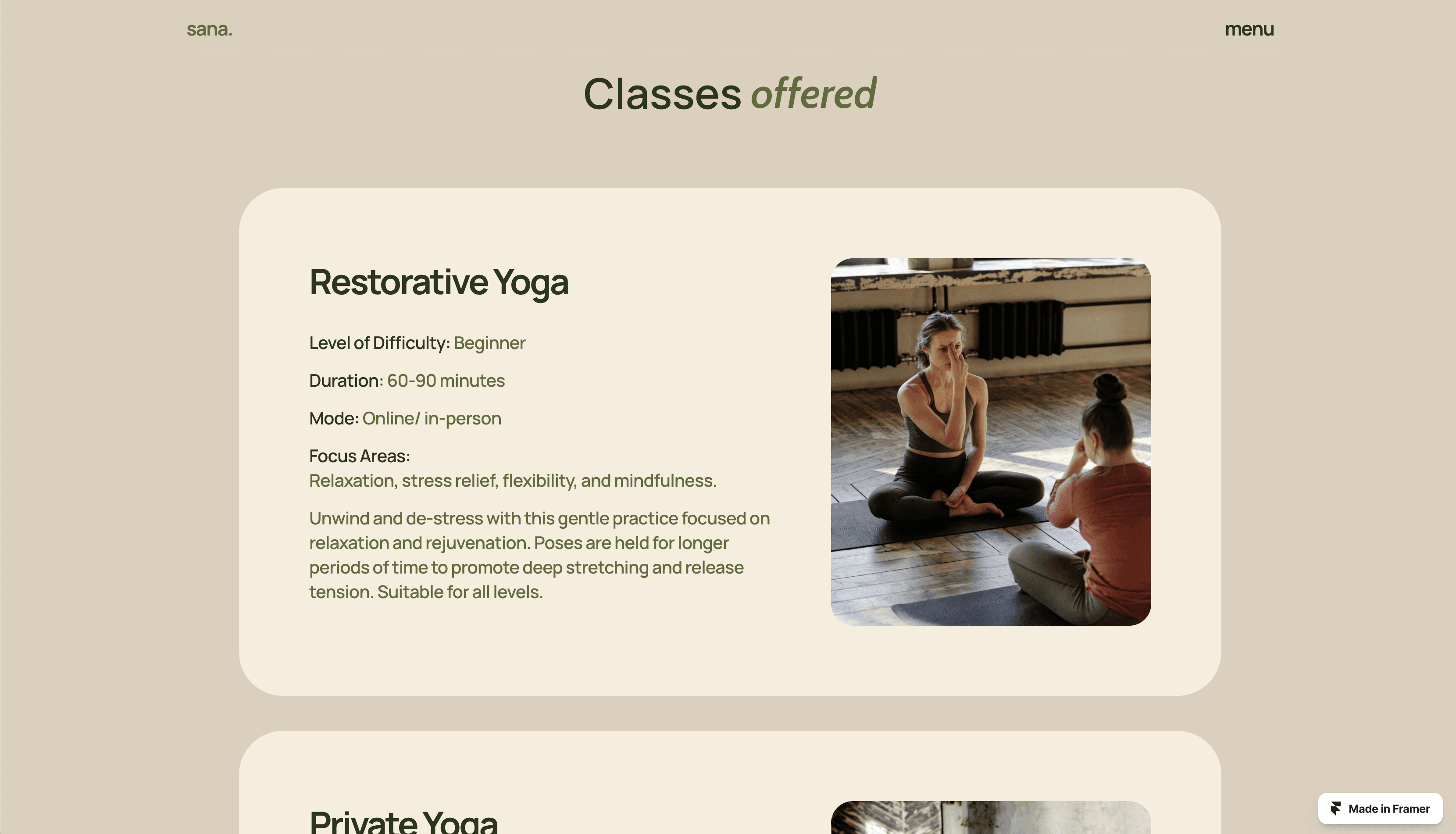 Sana is a premium website template designed to create a welcoming and calming online presence for yoga teachers and meditation coaches.