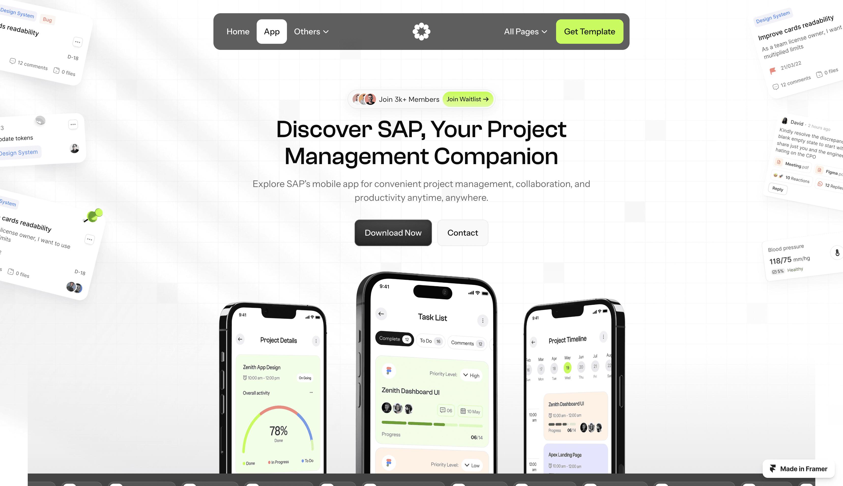 SAP is a landing page template designed to showcase SaaS and app information effectively, featuring a clean and modern look.