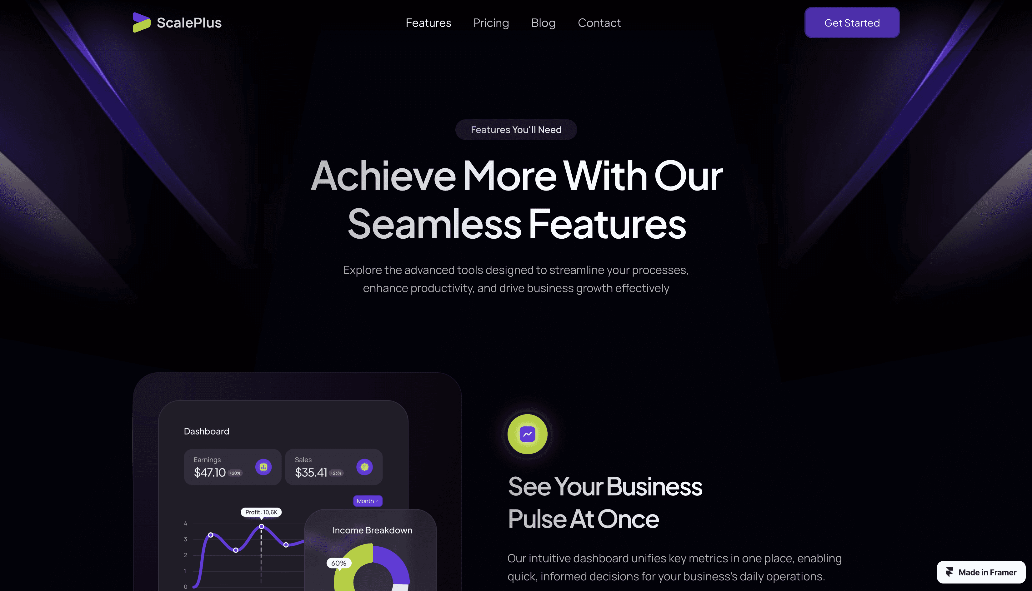 ScalePlus is a Framer template that enhances user experience, offering a seamless journey for visitors.