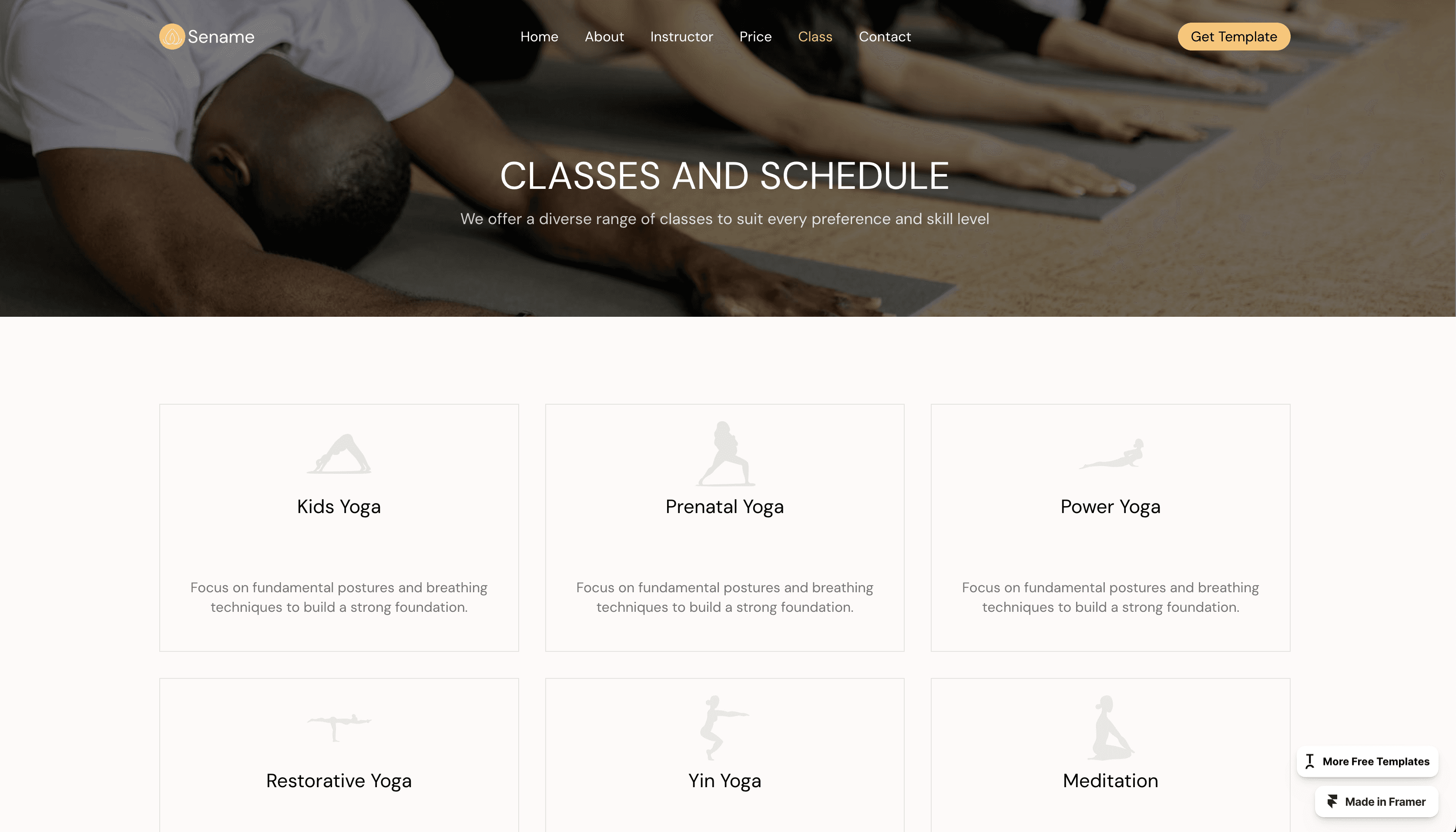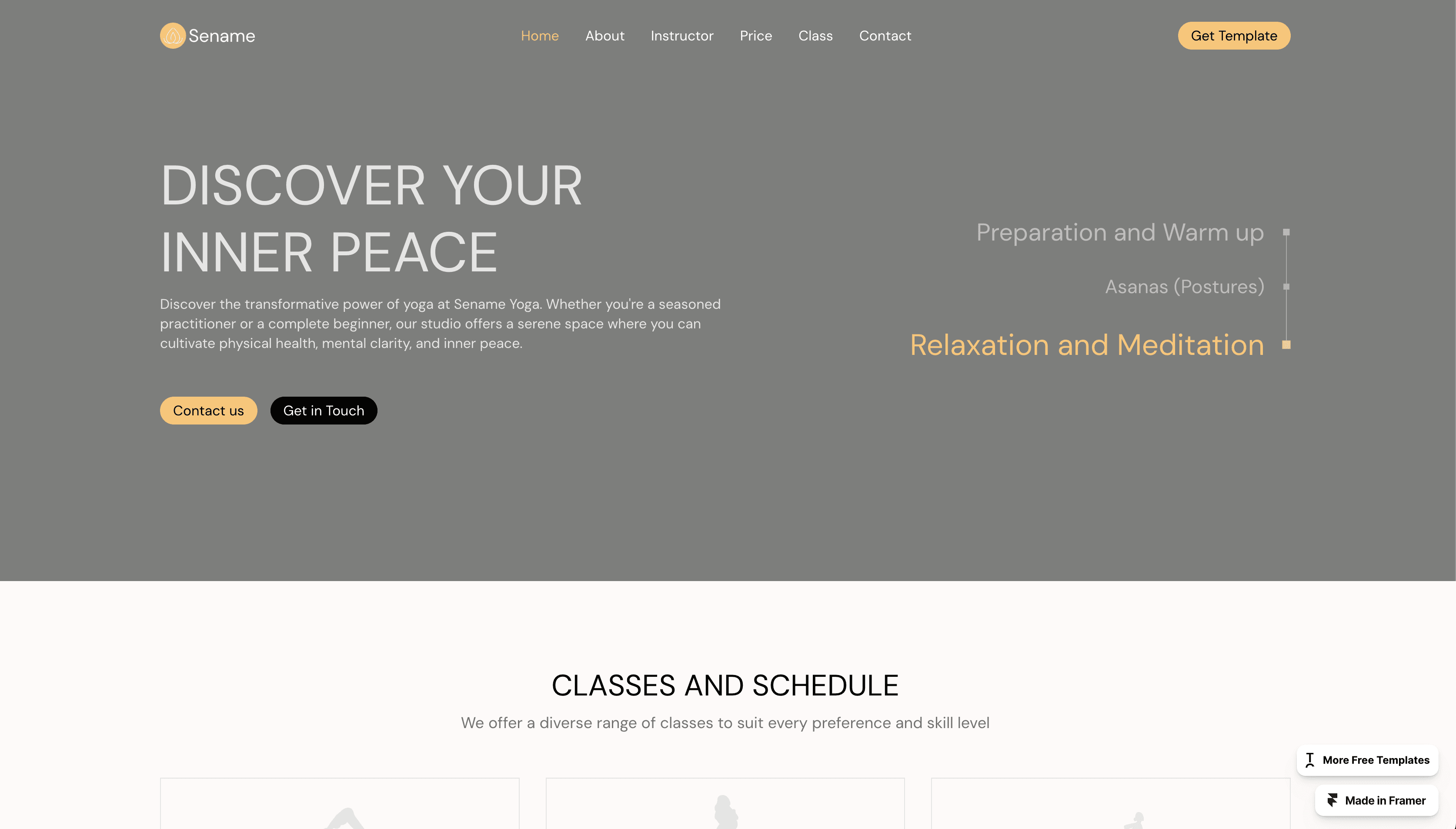 With serene aesthetics, intuitive navigation, and responsive design, it includes features like class schedules, instructor profiles, booking options, and a tranquil blog.