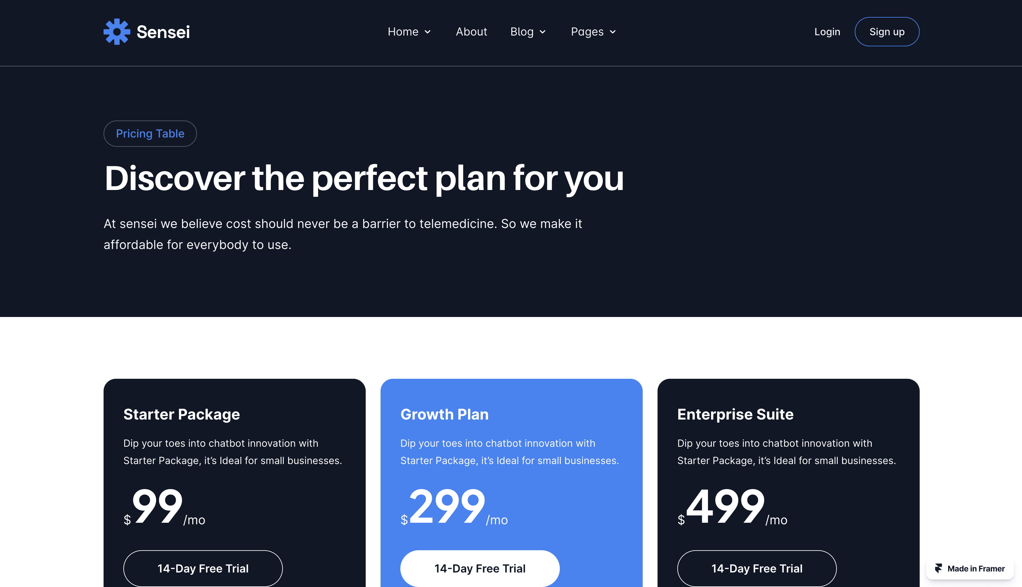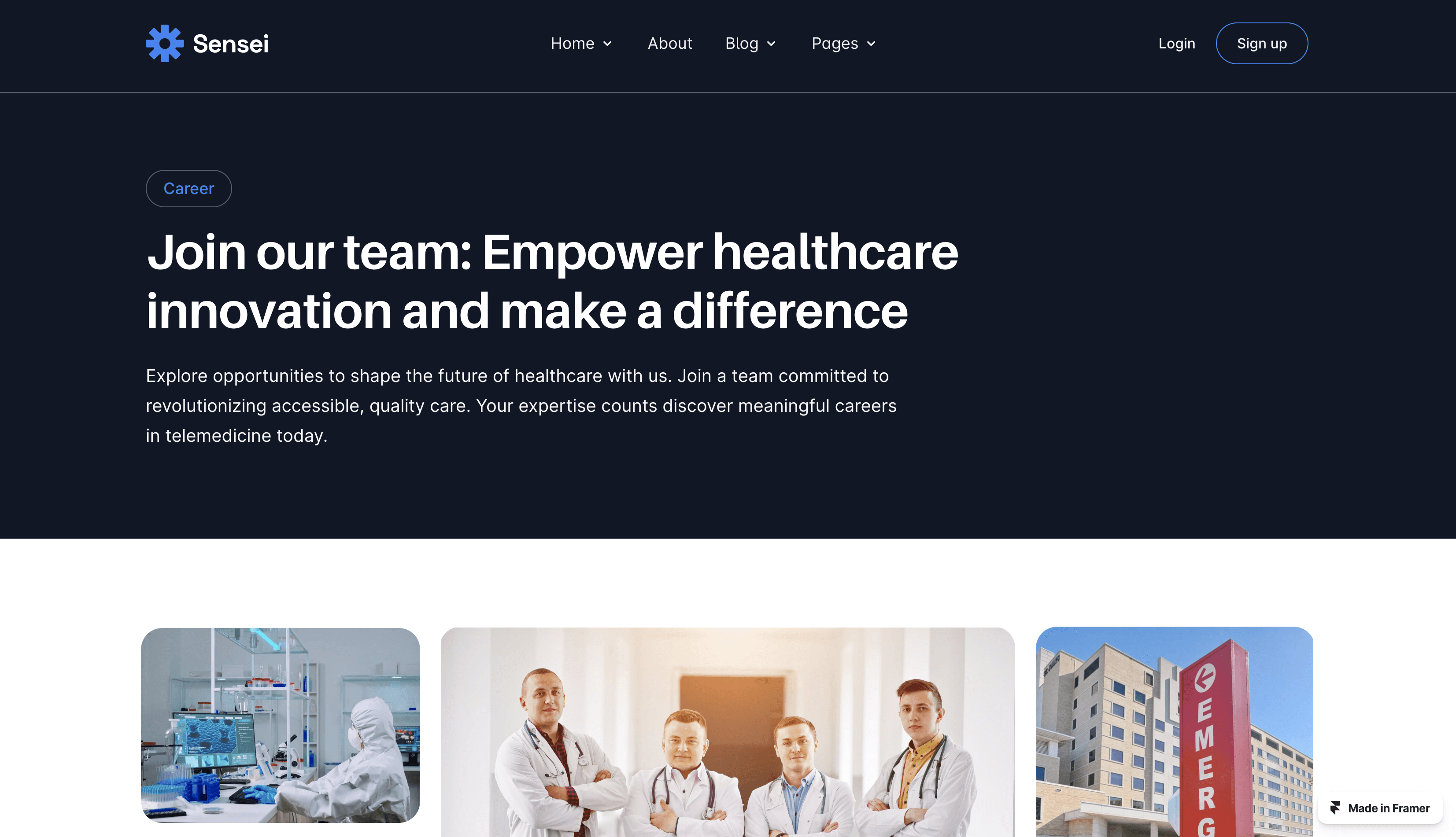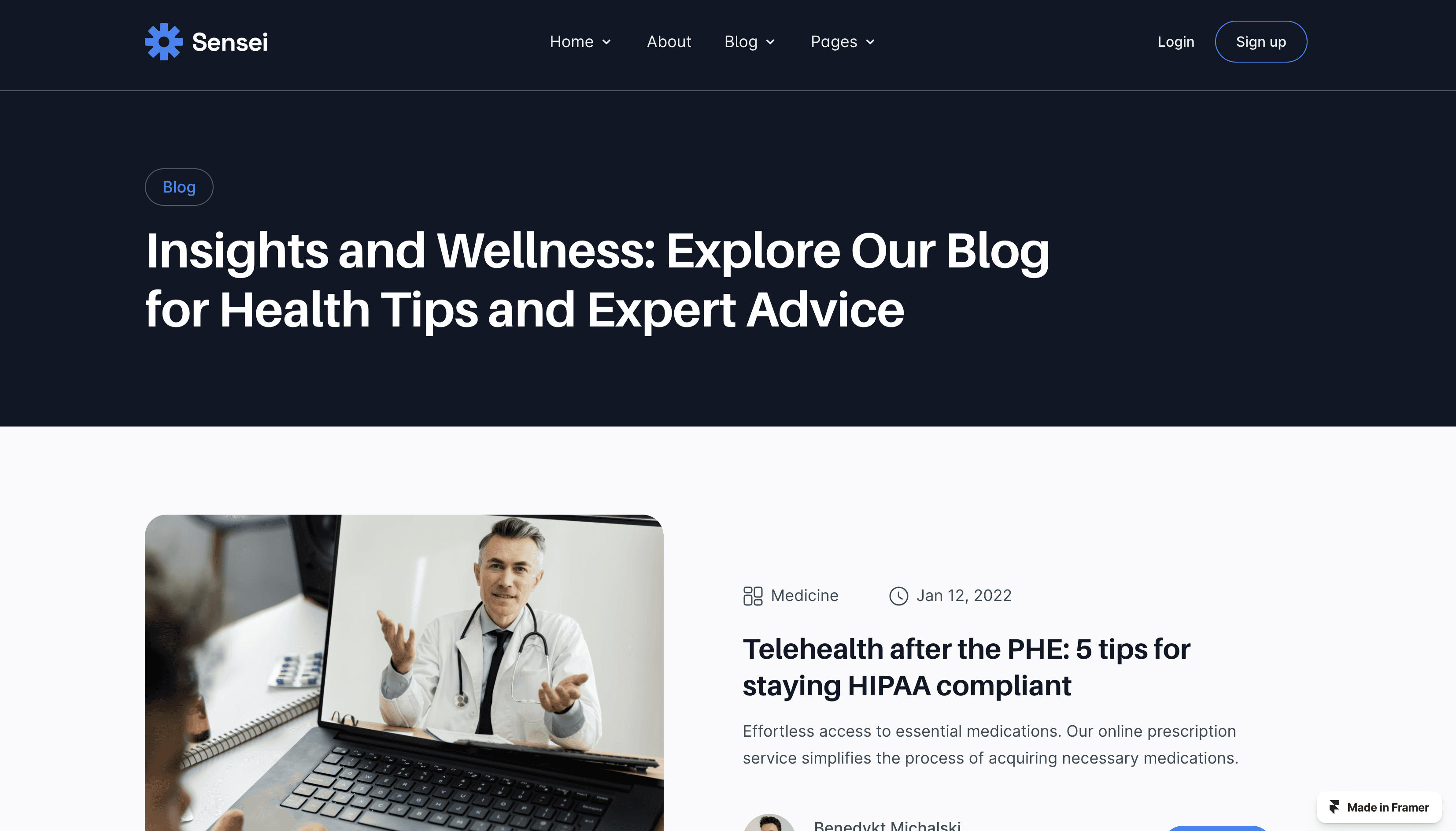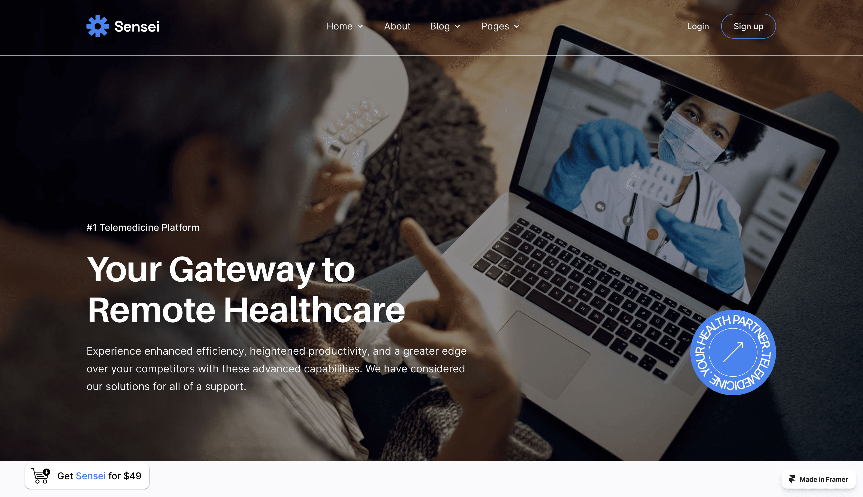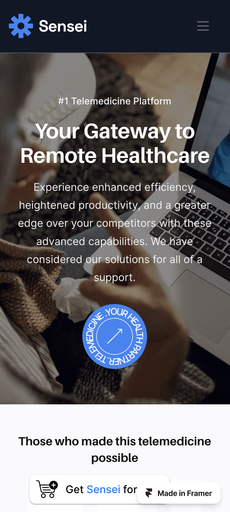 Introducing the future of healthcare, Telemedicine & Telehealth Services website Framer template, Sensei, with 15 ready essential pages.