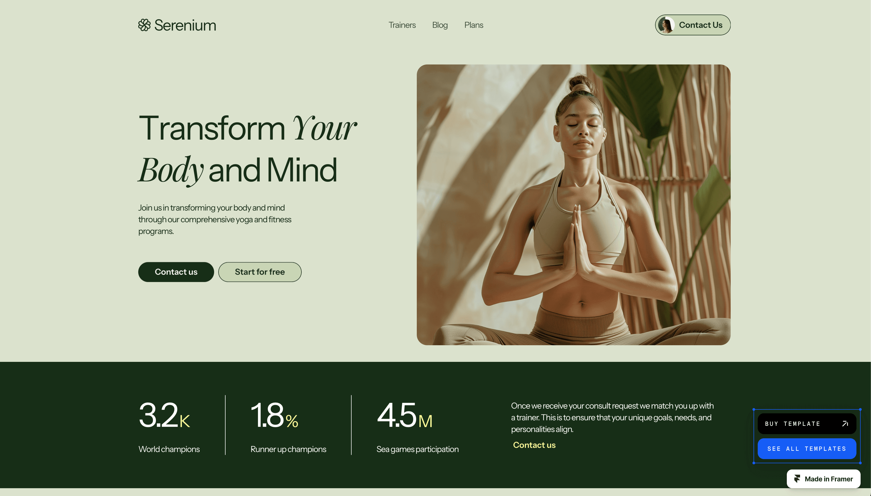 Serenium is a versatile Framer template designed for wellness and fitness professionals.