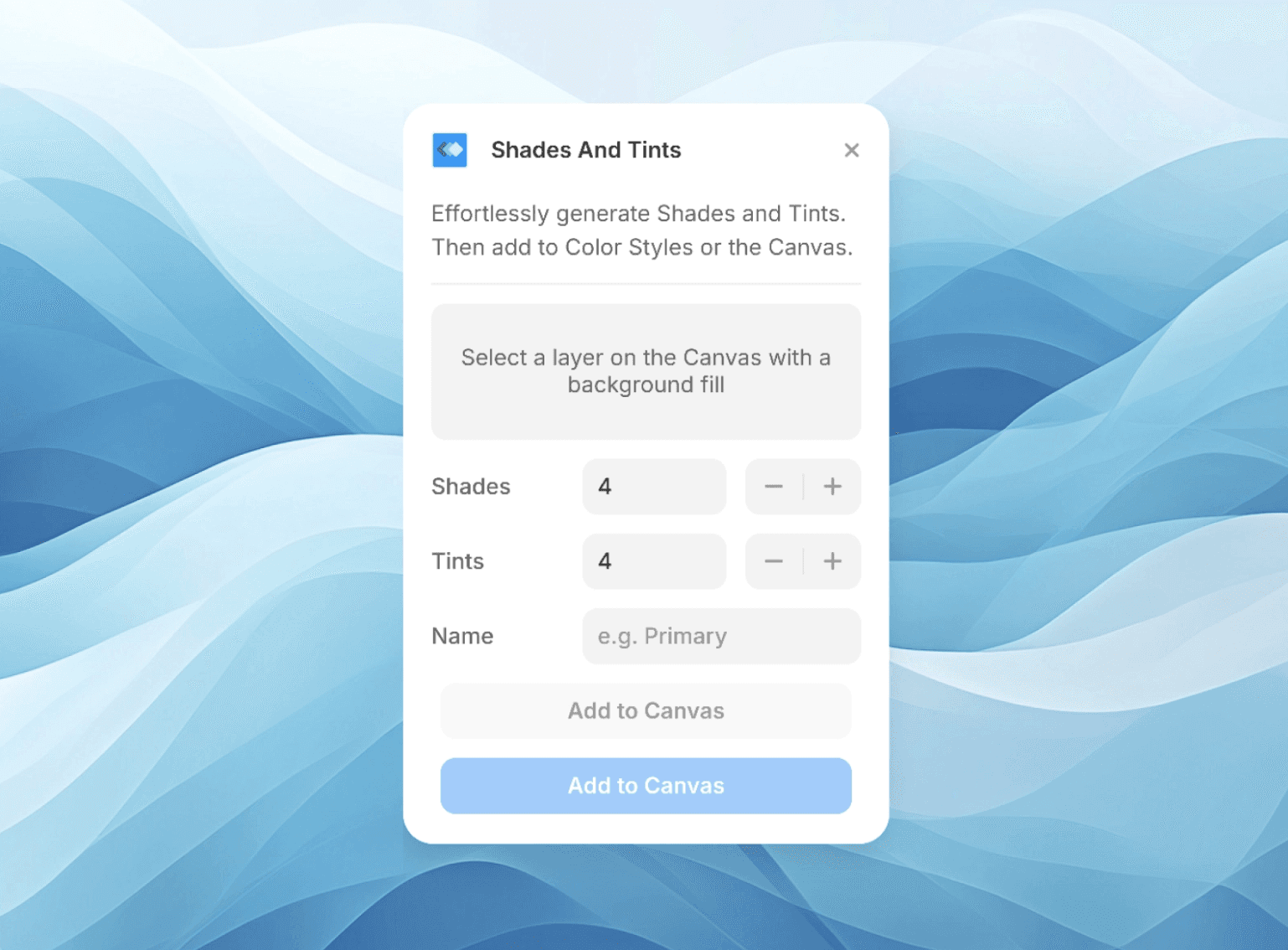 Easily generate shades and tints. Then add them to Color Styles or the Canvas.