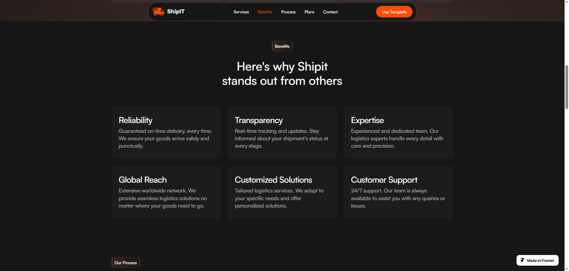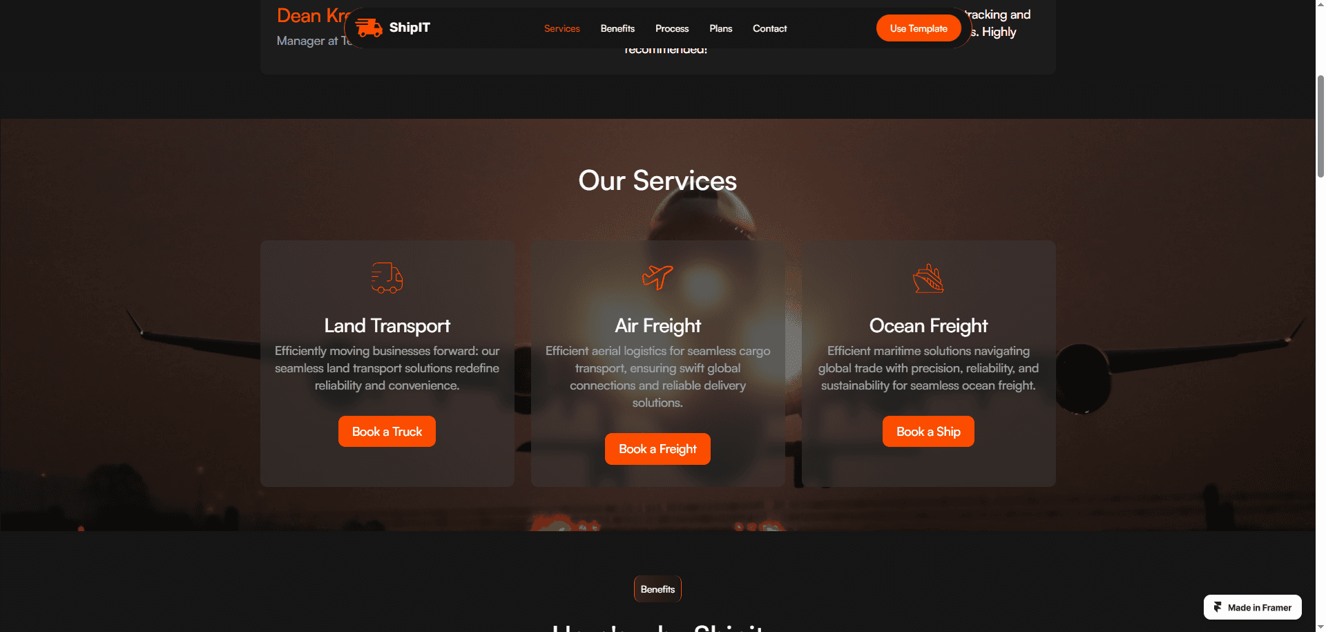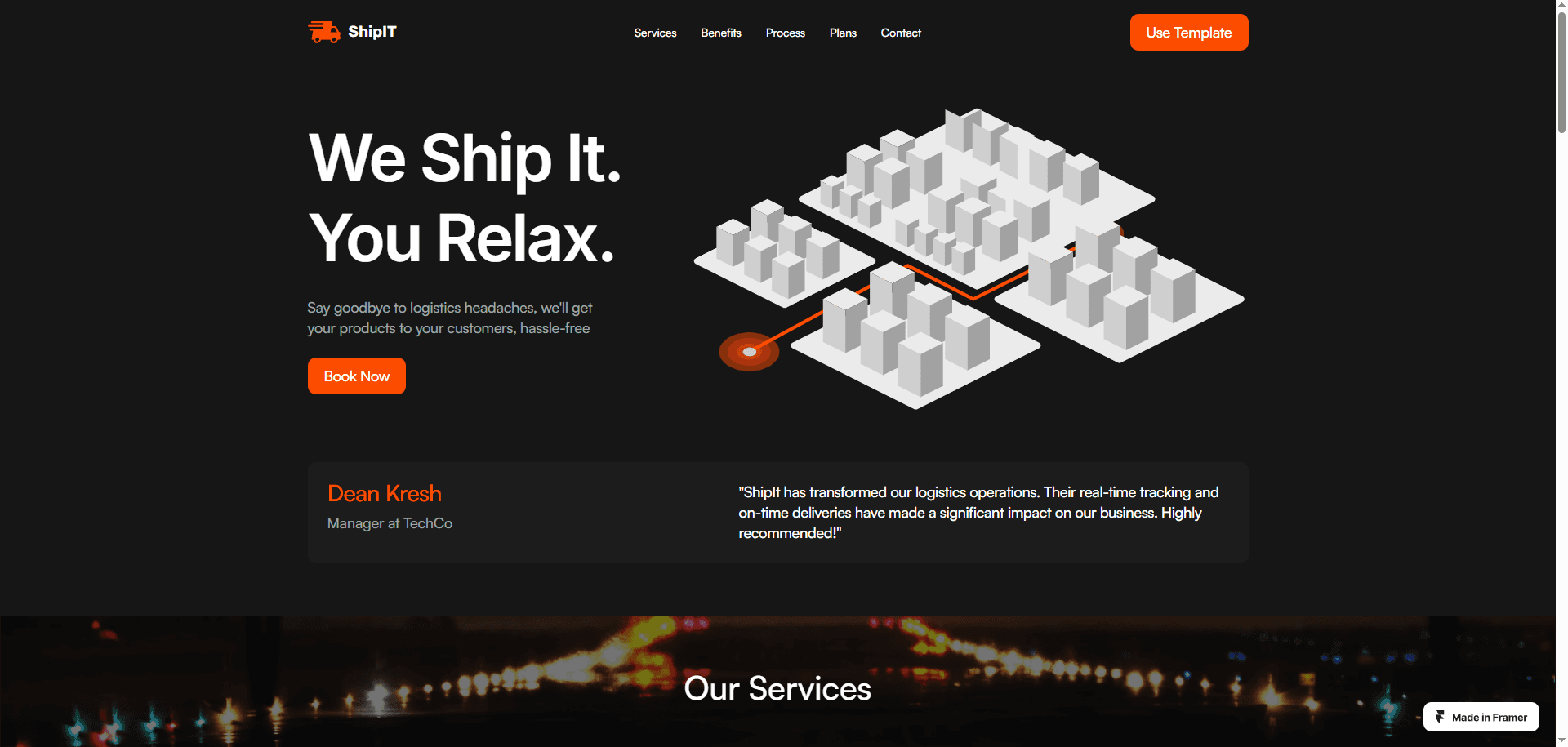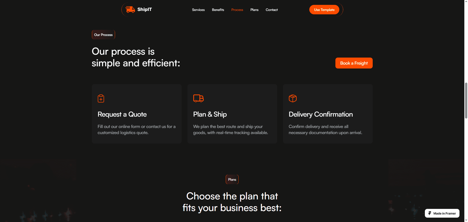 Shipit is a professional website Framer template for logistics and transportation websites.