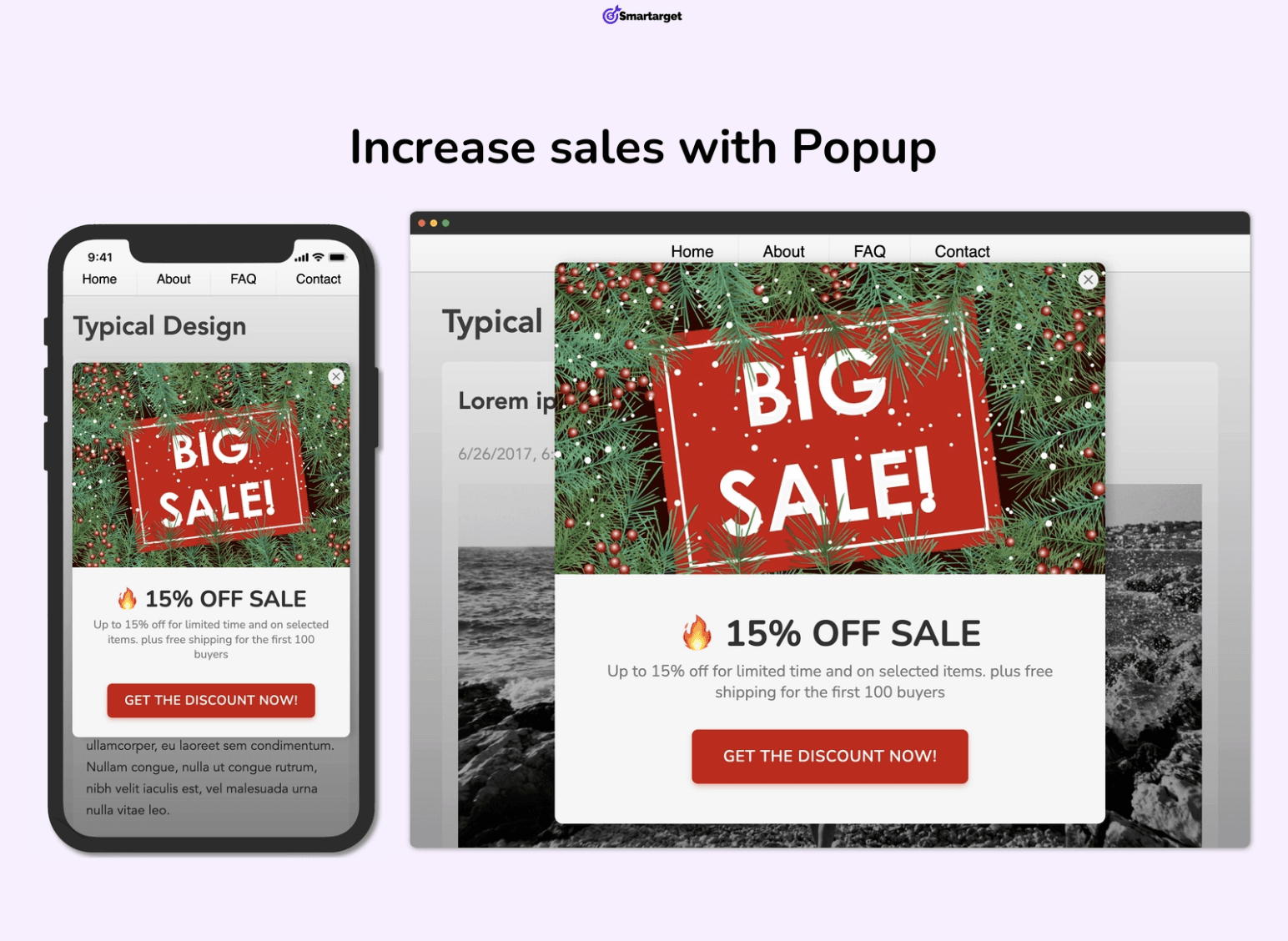 The best way to ensure that customers see your special announcement when visiting your website is by using the Pop up app by Smartarget. These easy-to-use Popups grab their attention and work beautifully on both mobile and desktop.