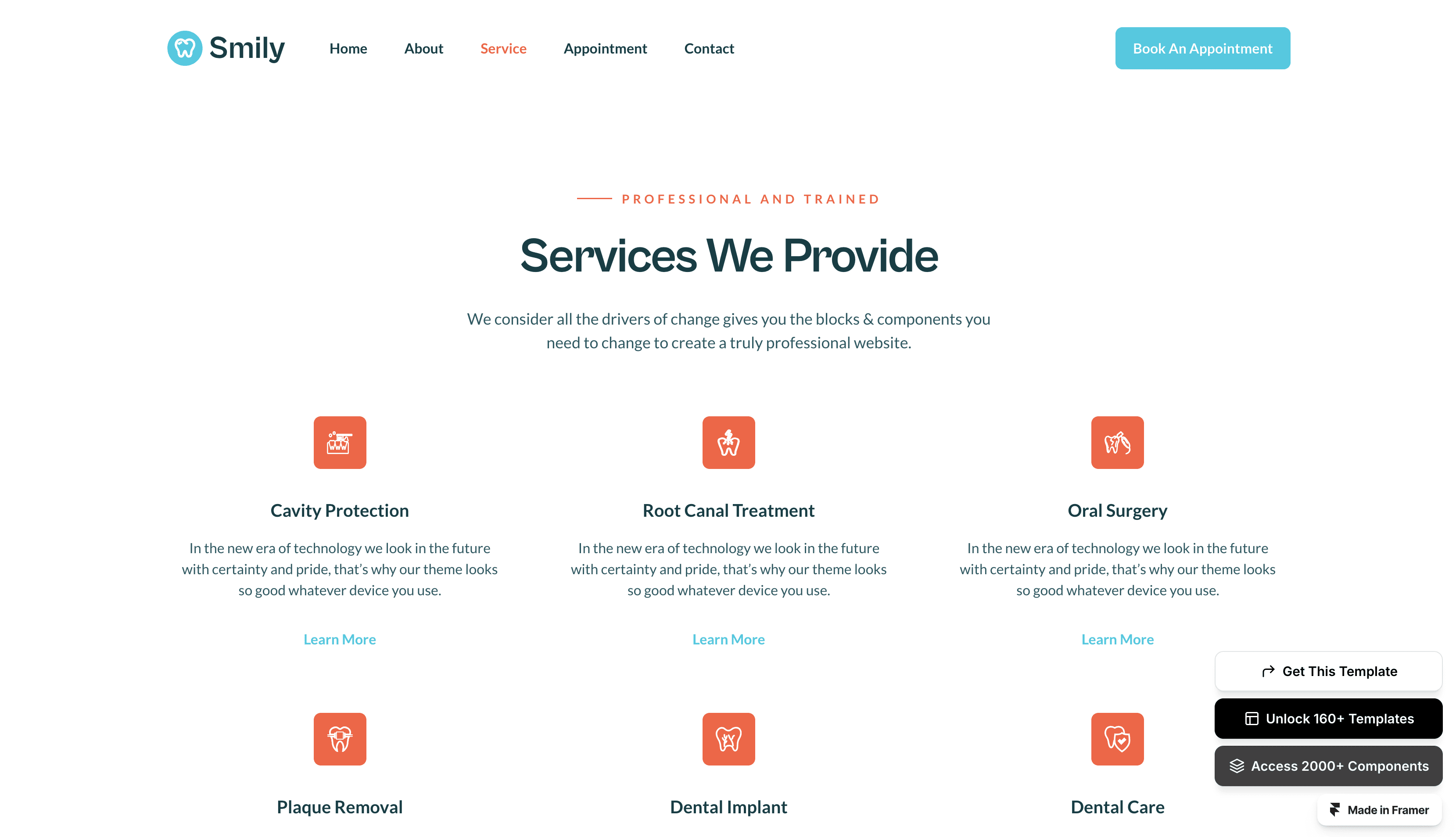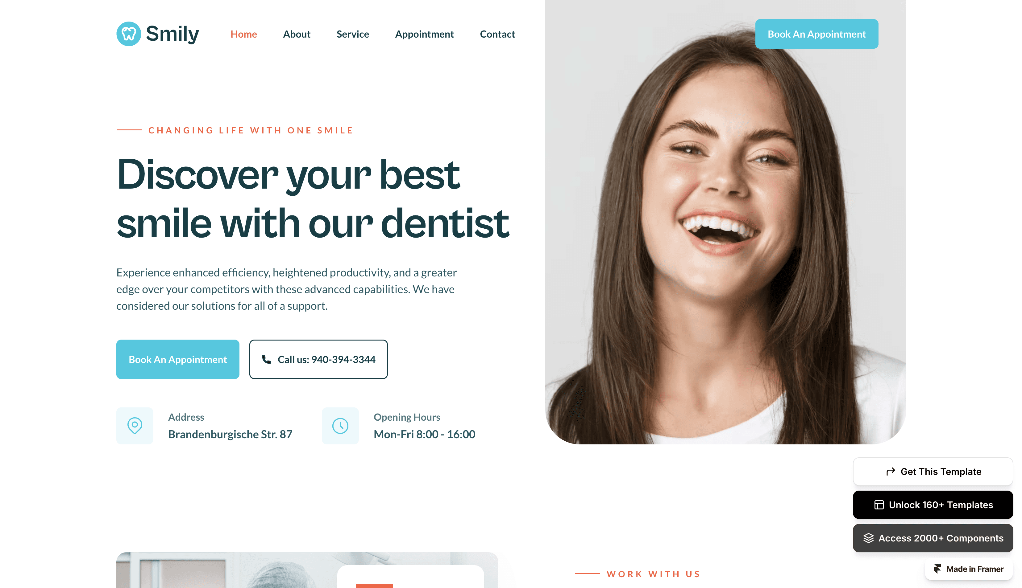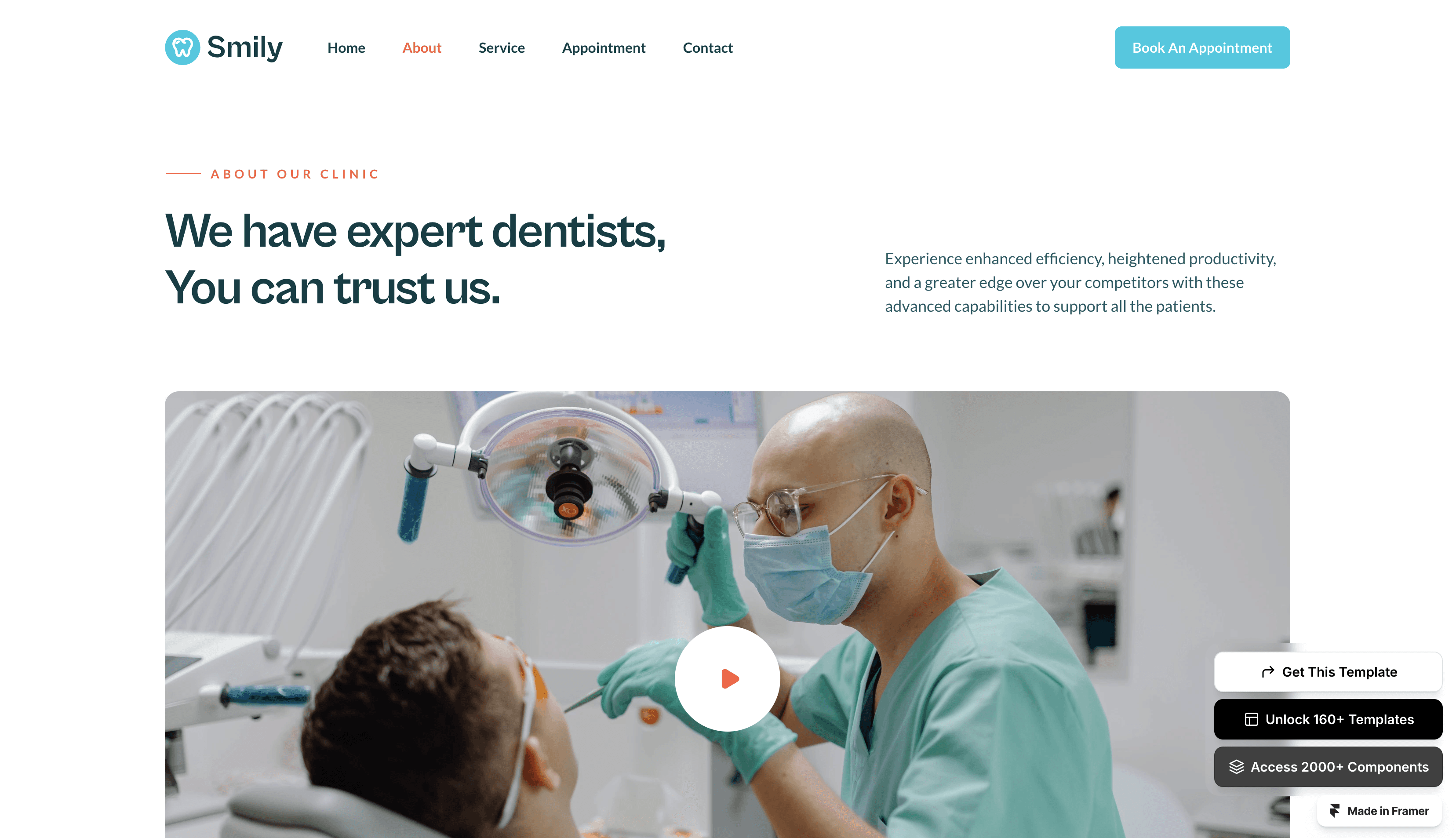 Designed specifically for medical, dentistry, and clinic domains, Smily Framer Template empowers you with a comprehensive suite of features.