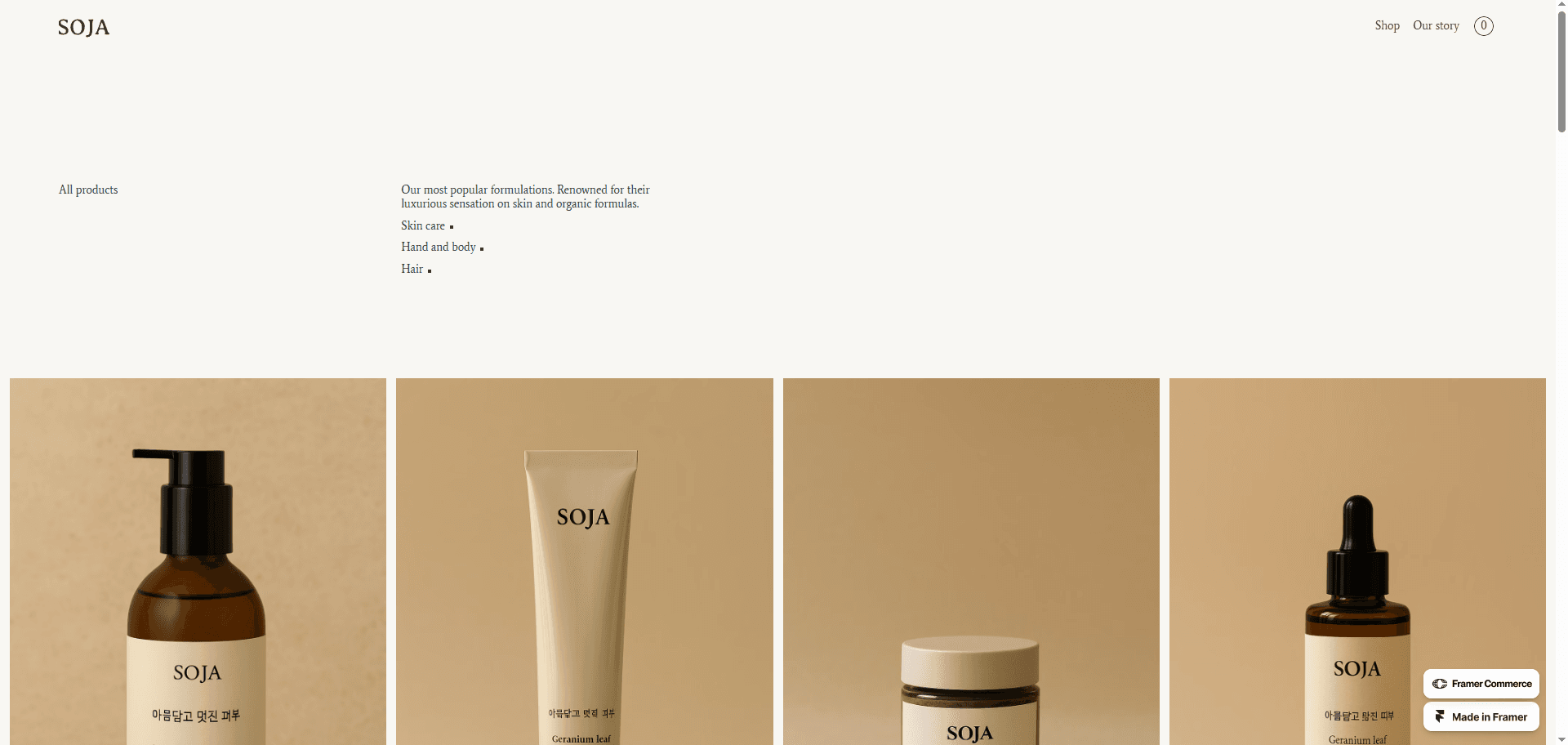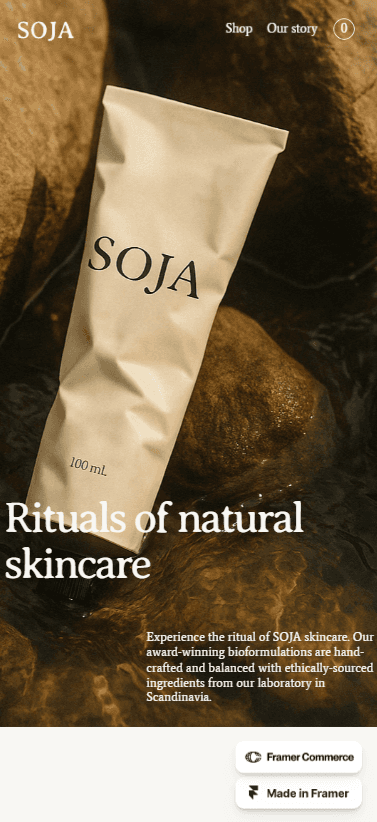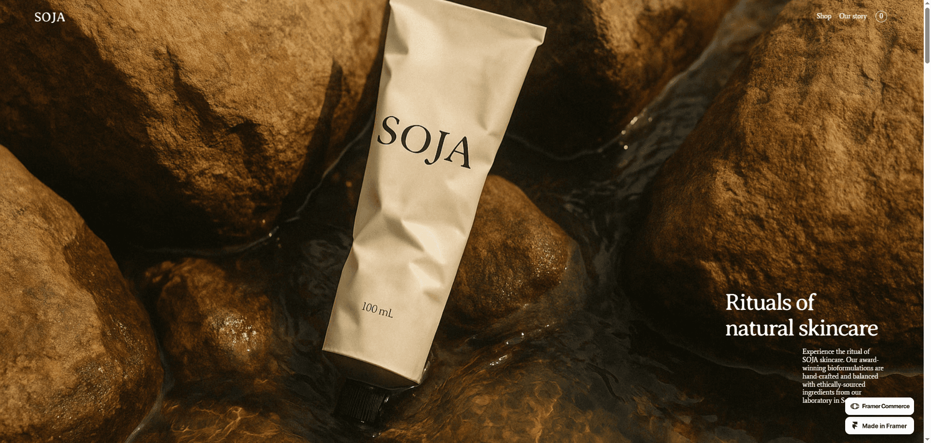 A carefully crafted luxury eCommerce template with full Shopify functionality powered by Framer Commerce.