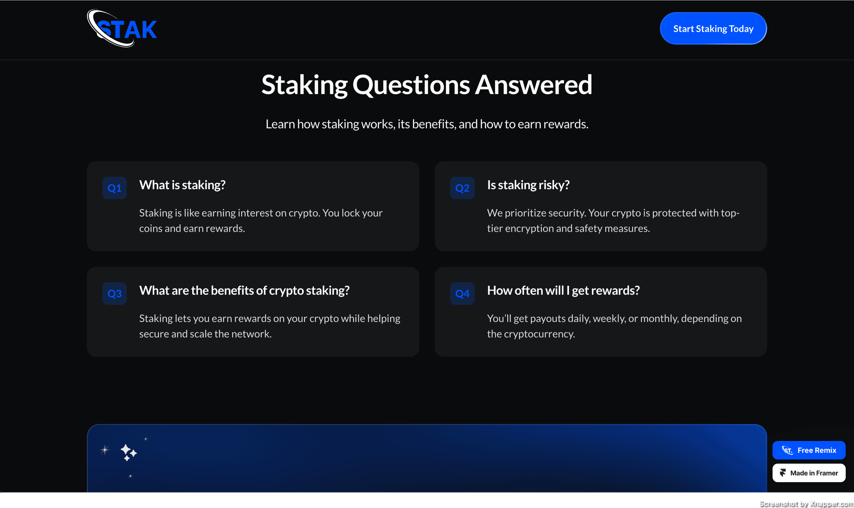 Need a polished landing page to advertise your staking platform? Stak is exactly what you need to achieve higher conversions.