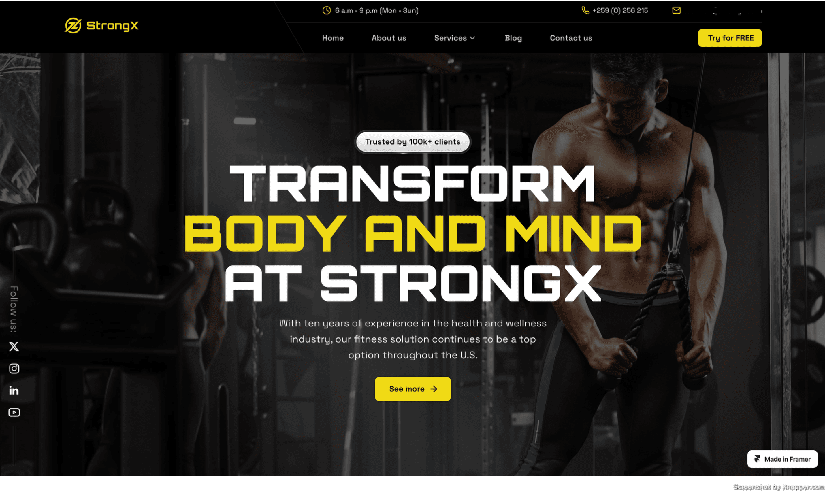 StrongX is a template for the fitness industry, with a luxurious dark mode interface.