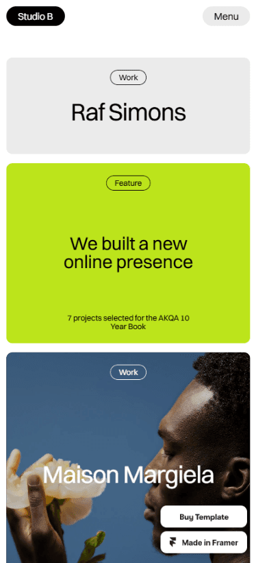 Introducing Studio B – The Essence of Modern Minimalism. Designed specifically for portfolios and design studios, this Framer template is a testament to the power of simplicity.