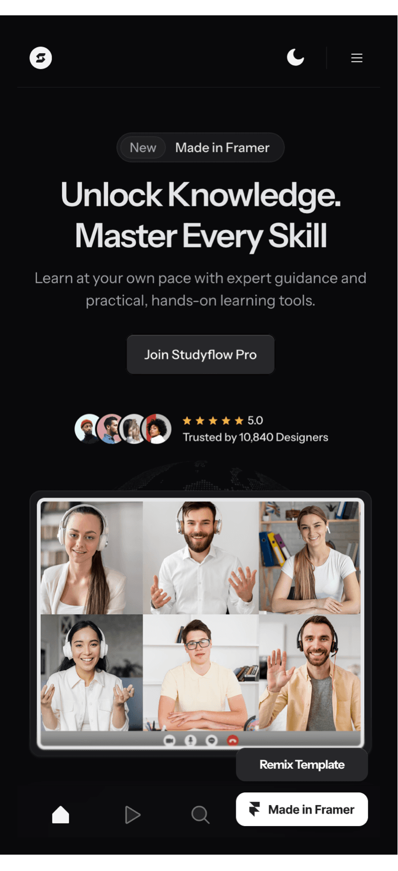 Unlock the power of interactive learning with StudyFlow, a beautifully crafted Framer template designed for education platforms. Build responsive, engaging websites effortlessly.