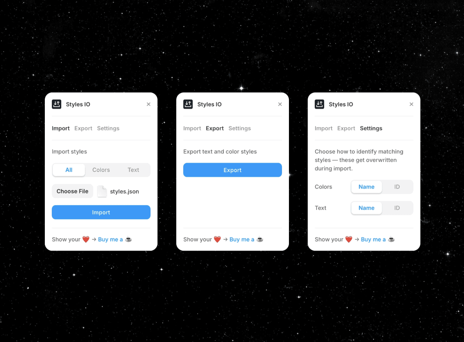Styles IO lets you to export text and color styles to a JSON file and then import them into another project.