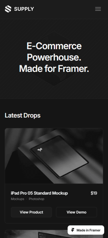 Sell digital products directly in Framer powered by Lemon Squeezy with this Framer template. Supply was built with the intention to help designers, creatives and marketers to sell within Framer through a custom eCommerce solution powered by Lemonsqueezy, which offers the best user experience for checkout.