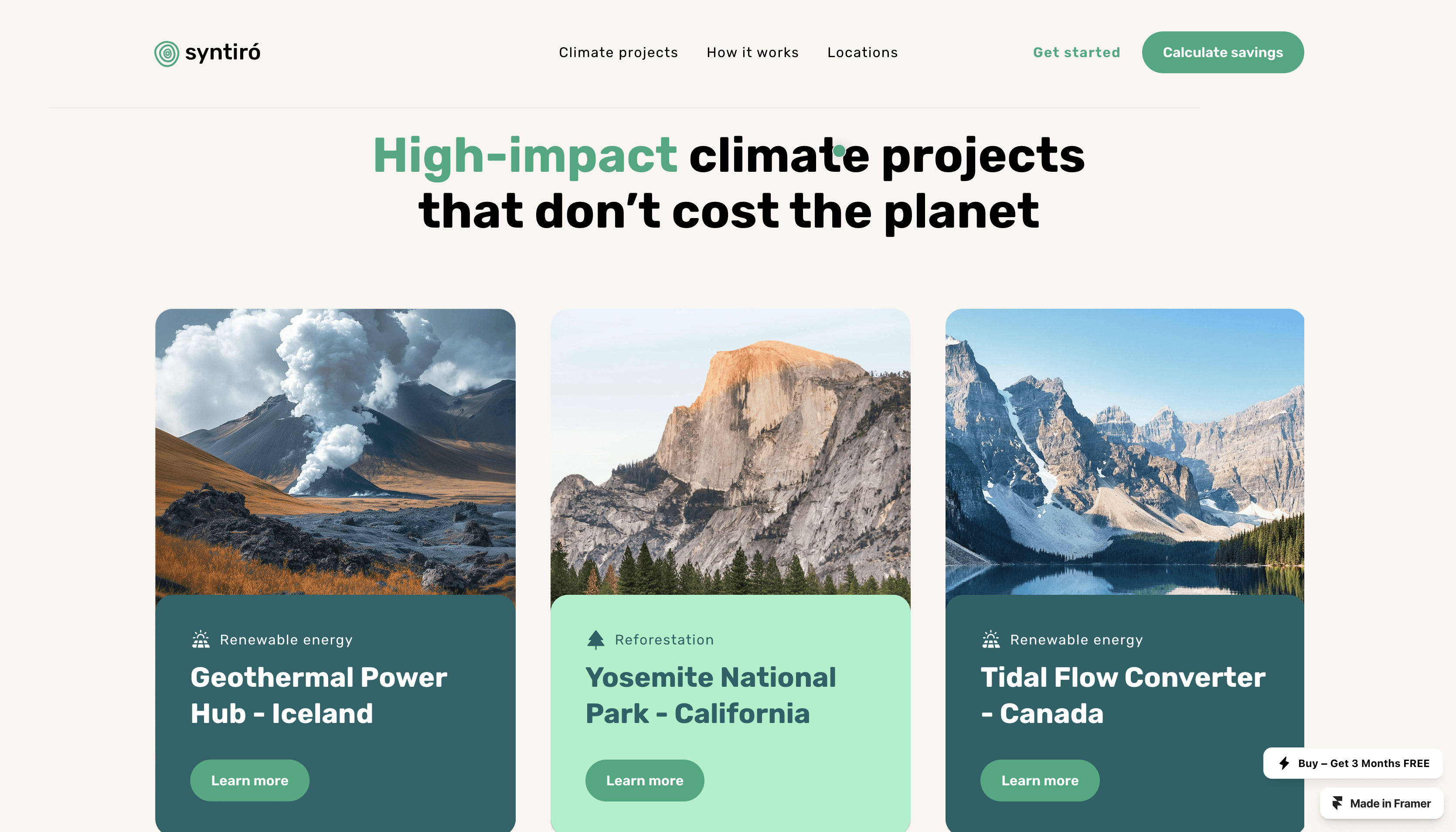 Syntiró is a sustainable website template designed for environmental / green-tech / eco-friendly businesses.