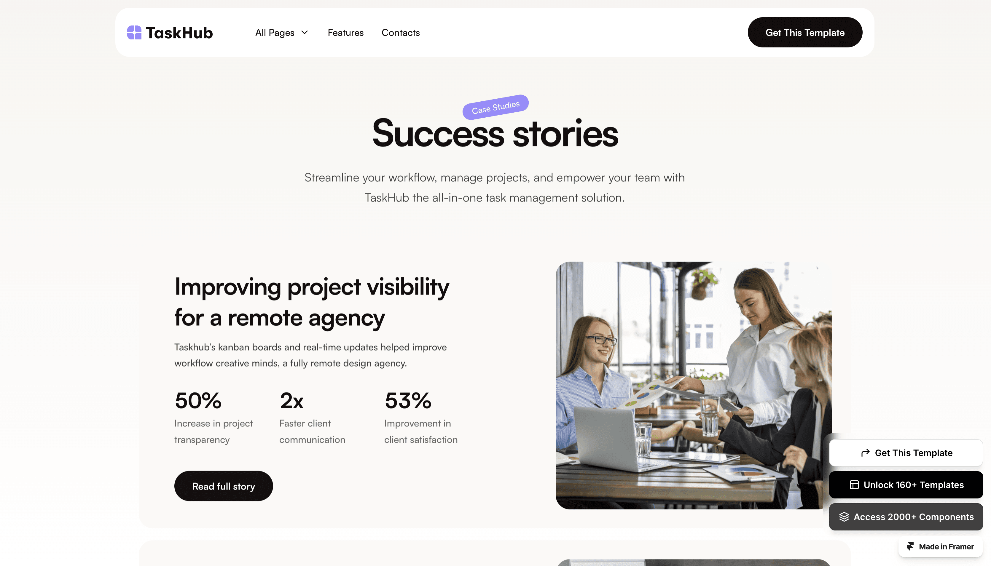 Building SaaS or Startup? Taskhub is a SaaS & startup template that is modern & playful.