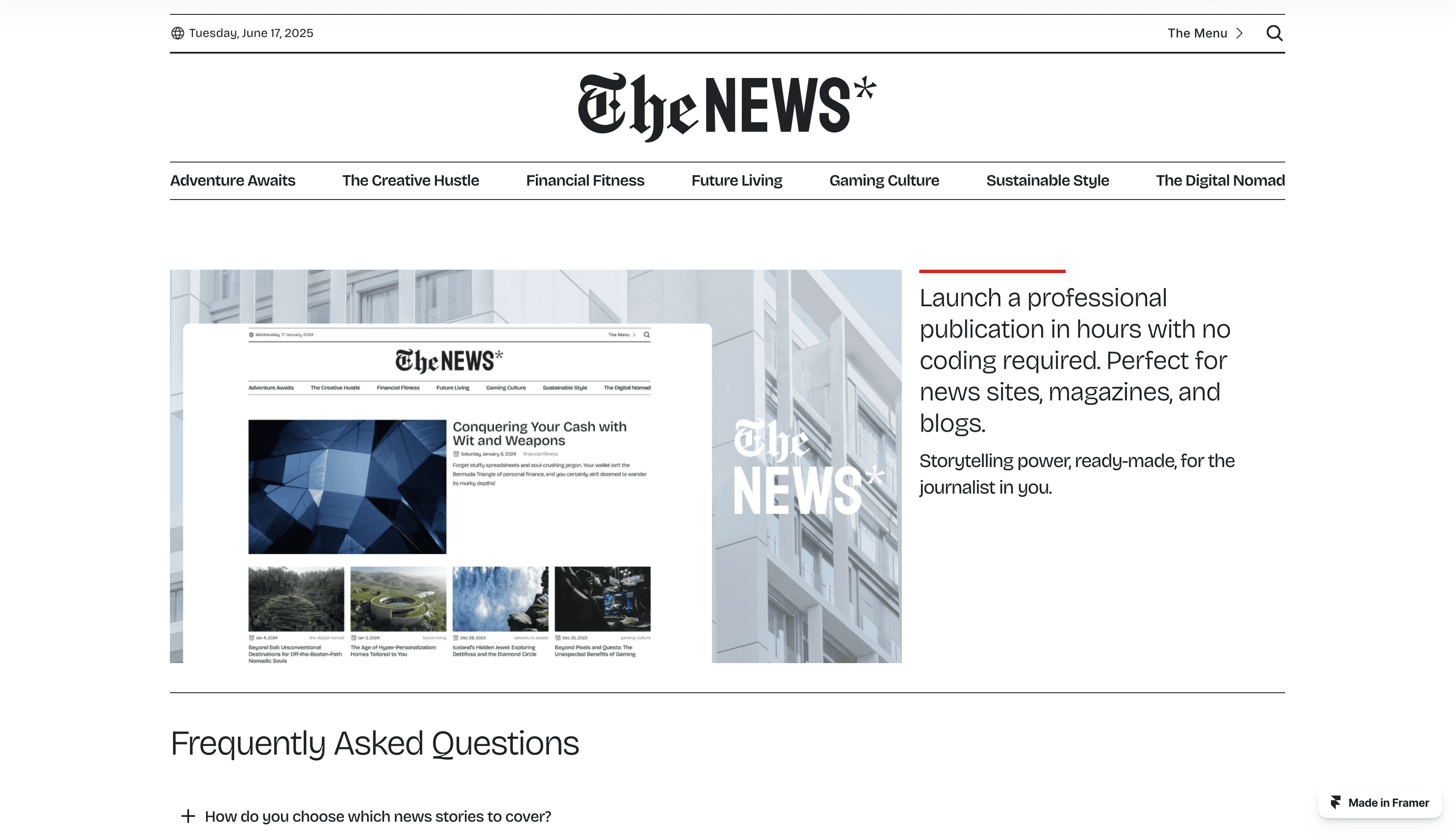 Launch a professional publication in hours with no coding required. Perfect for news sites, magazines, and blogs.