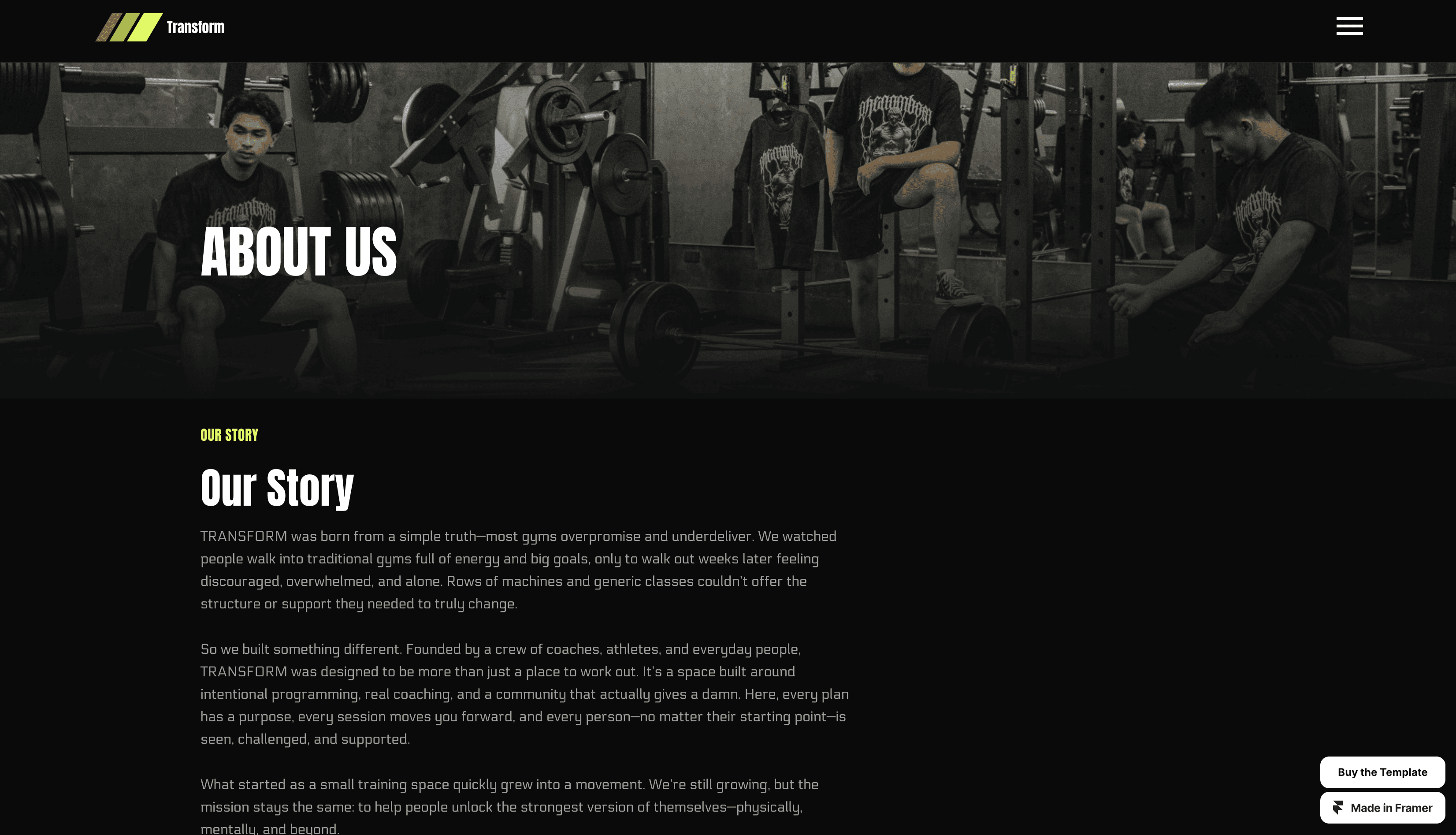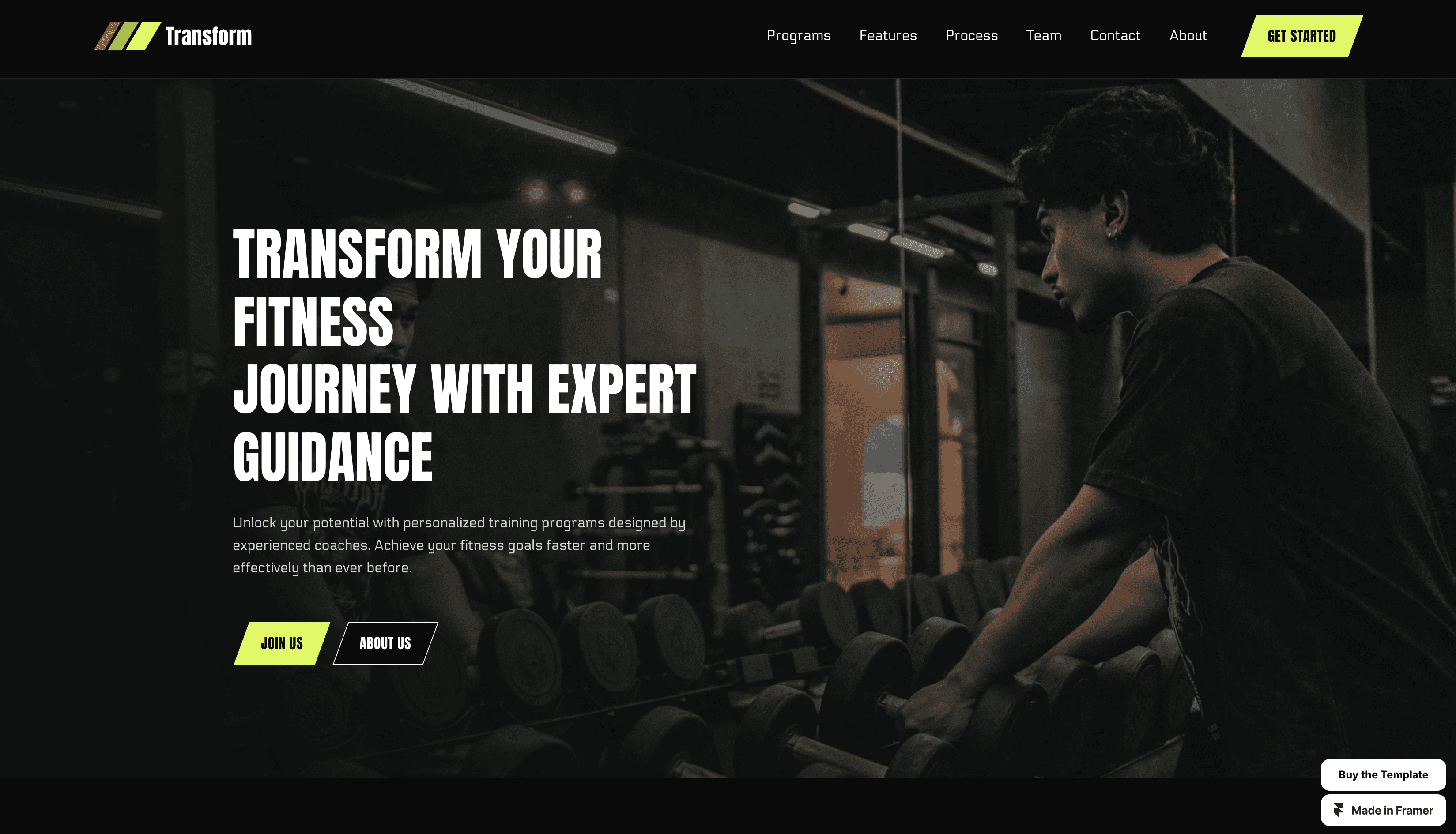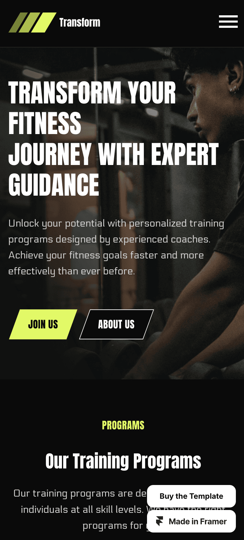 Transform is a fitness landing page template crafted to promote training programs, personal coaching, and fitness services with a bold, fast, simple and impactful structure.