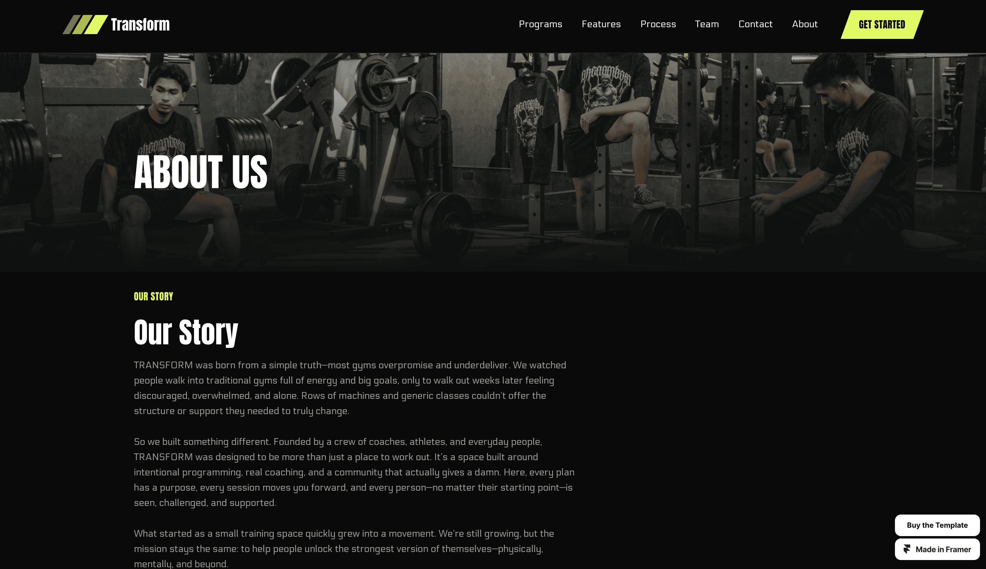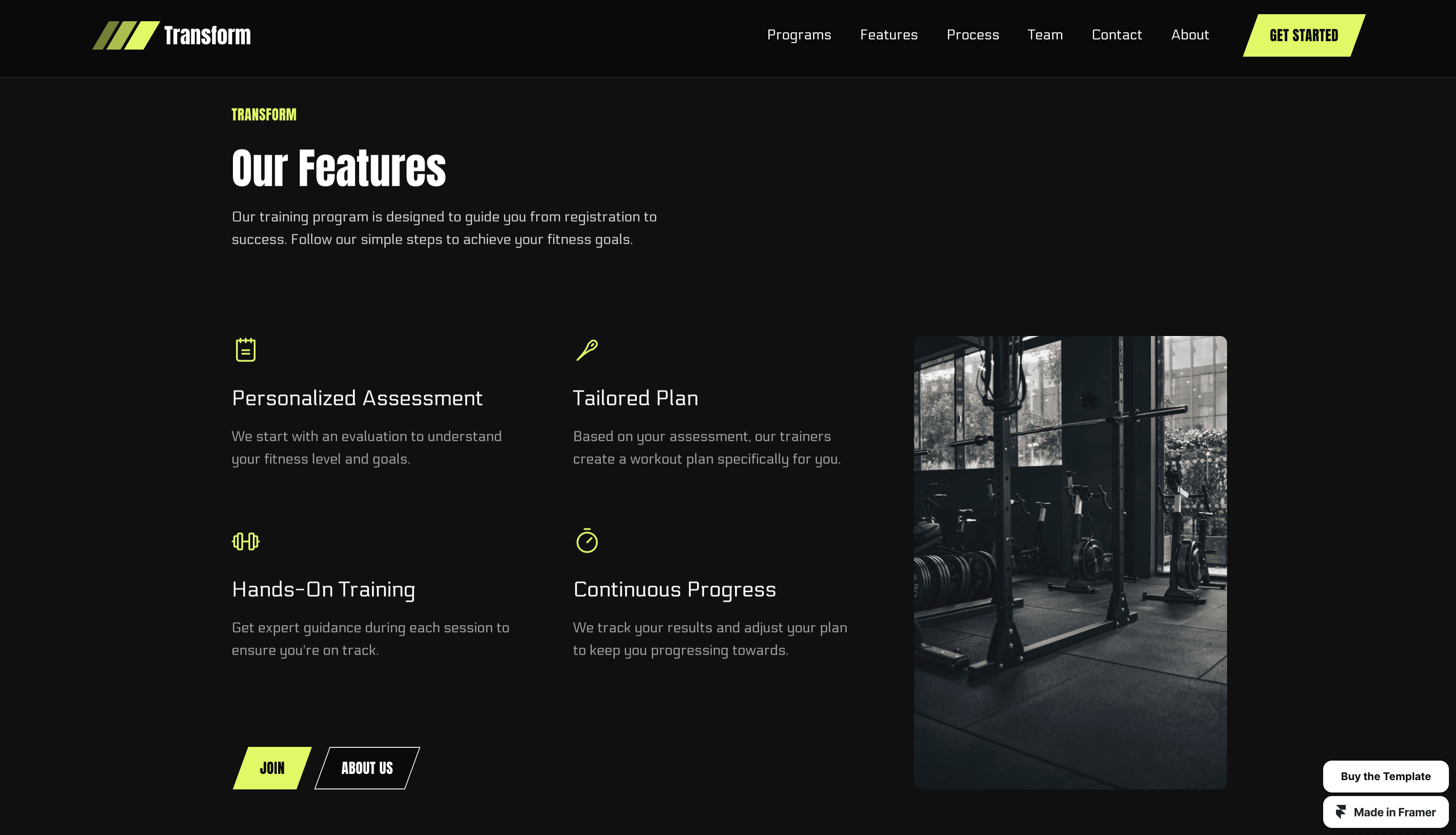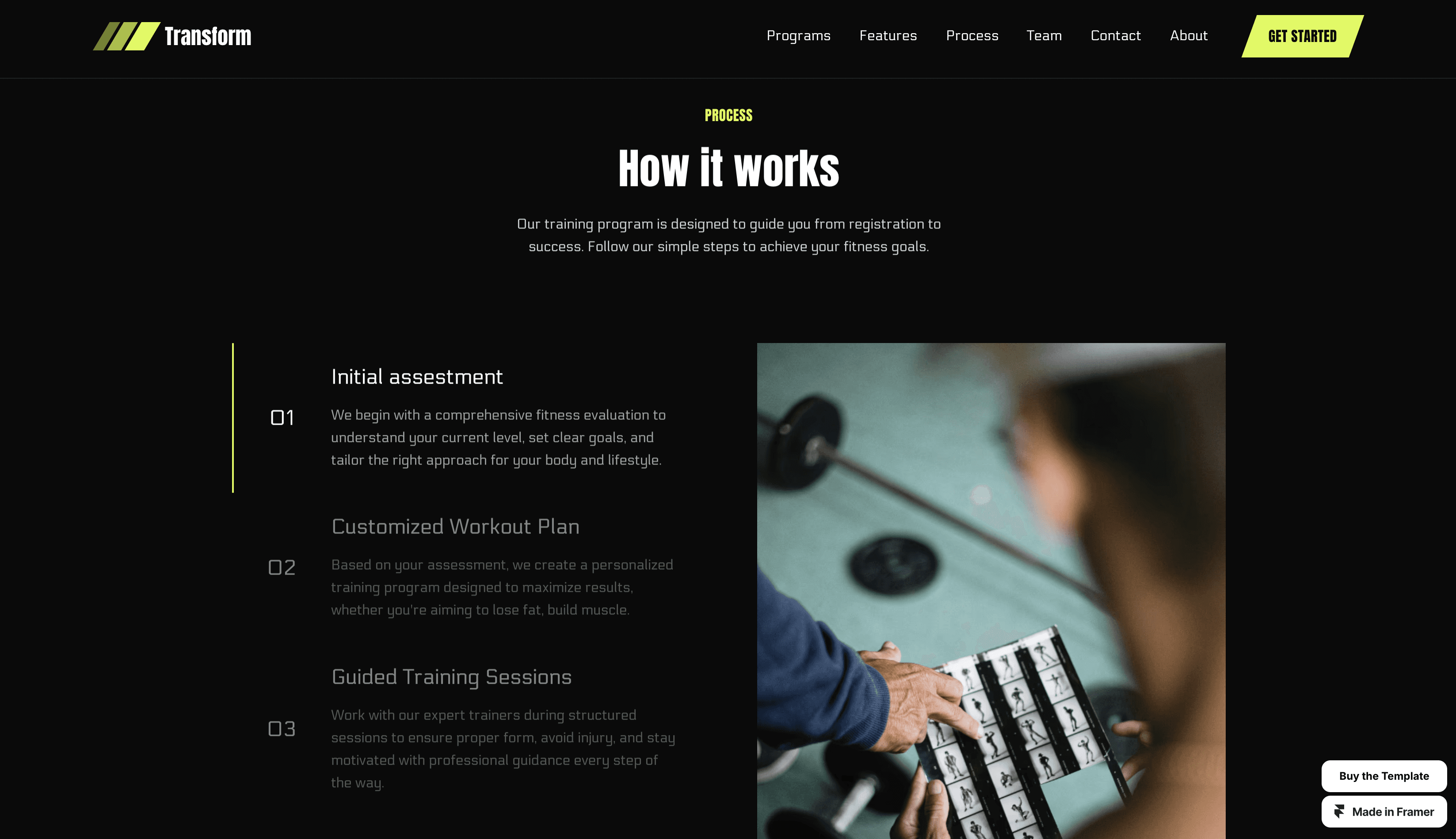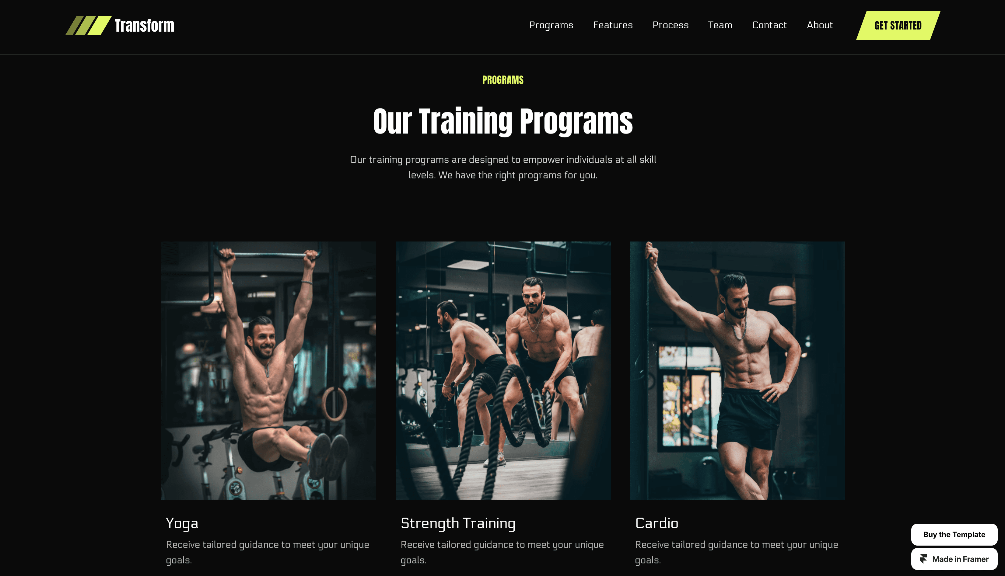 Transform is a fitness landing page template crafted to promote training programs, personal coaching, and fitness services with a bold, fast, simple and impactful structure.