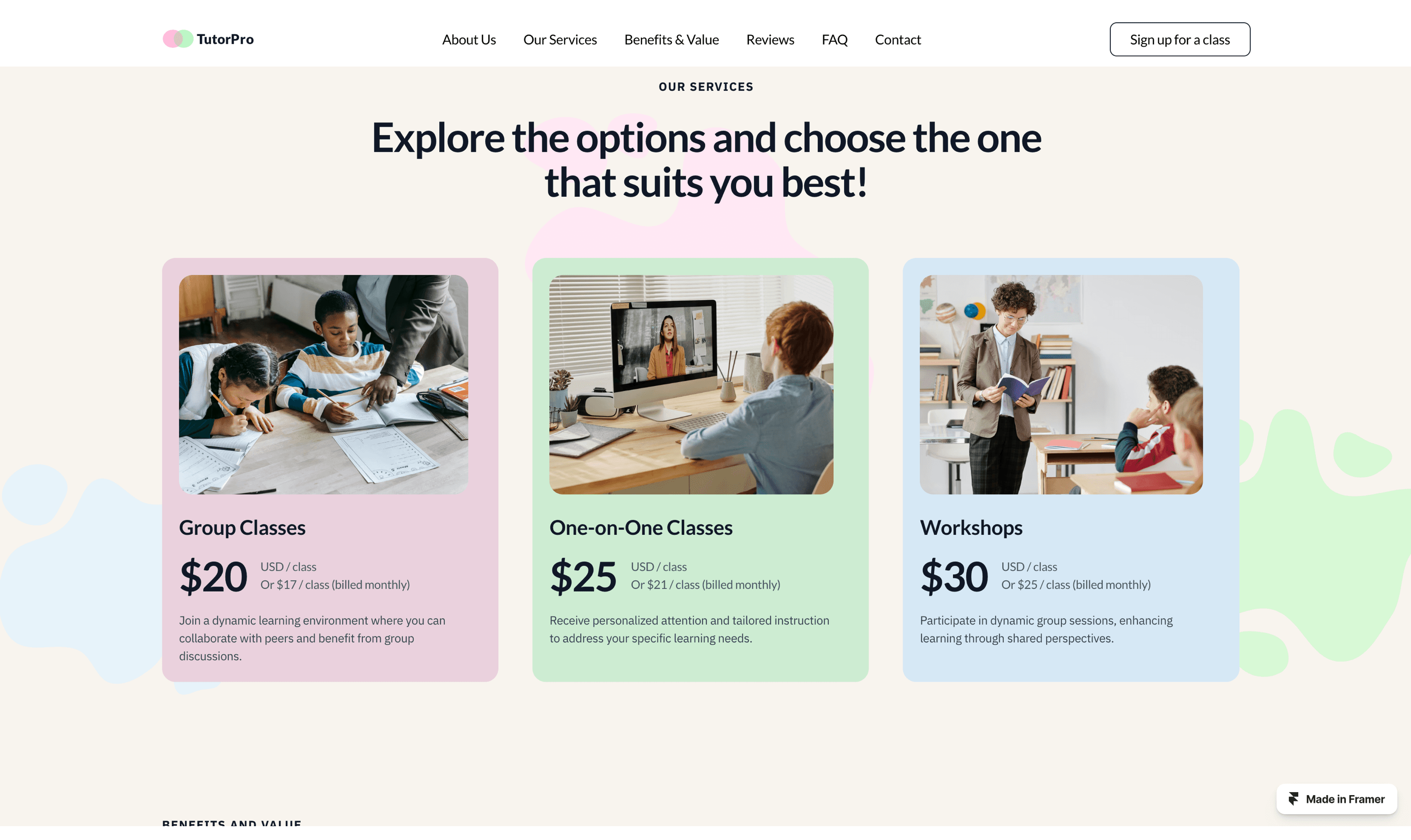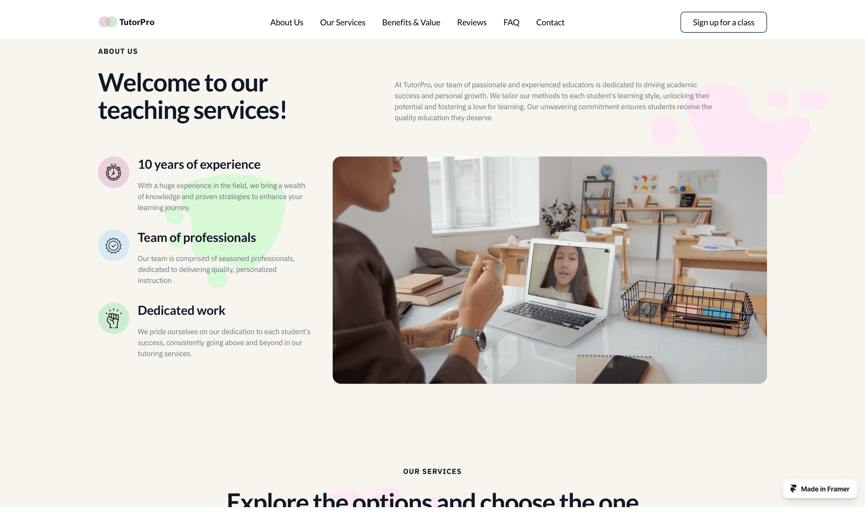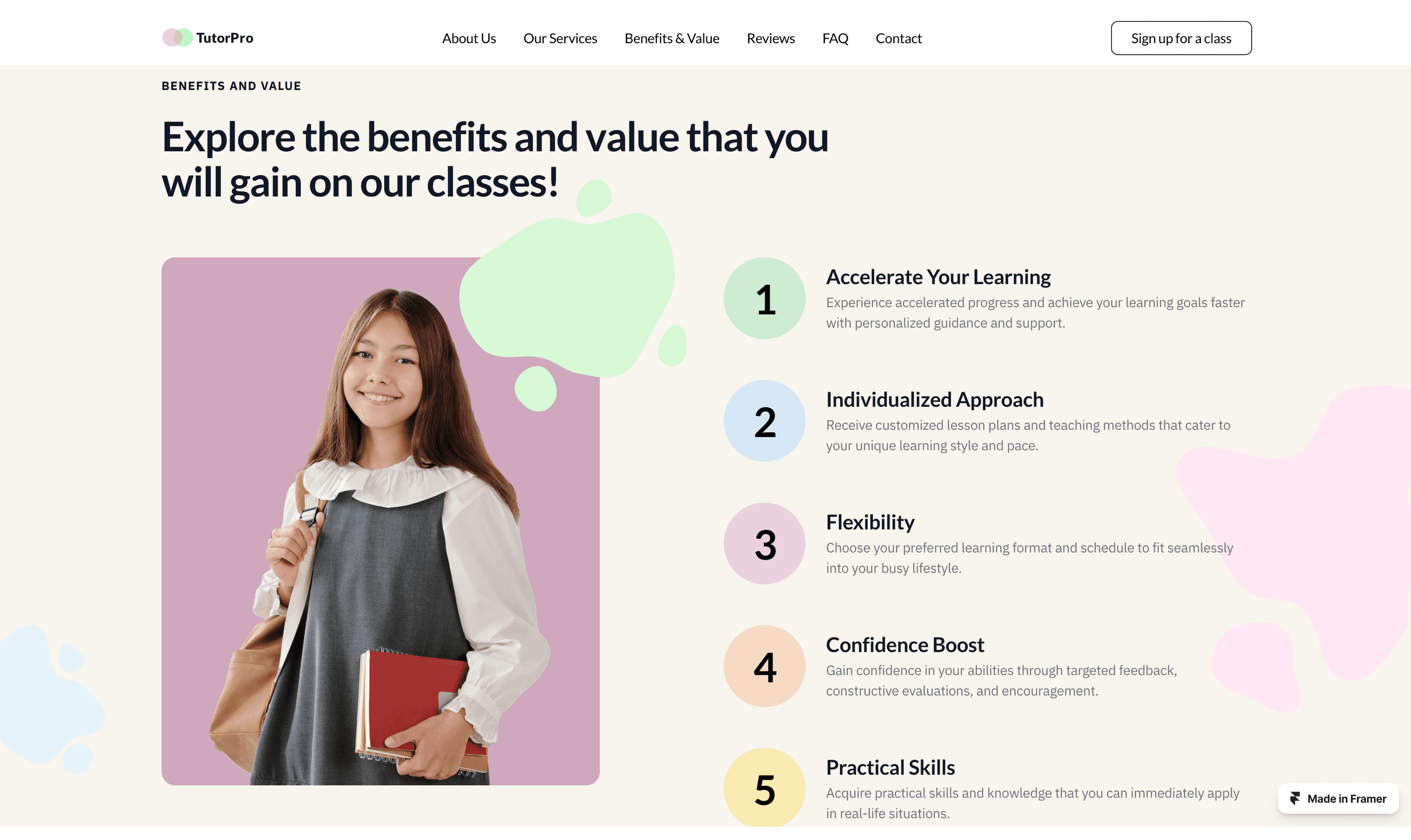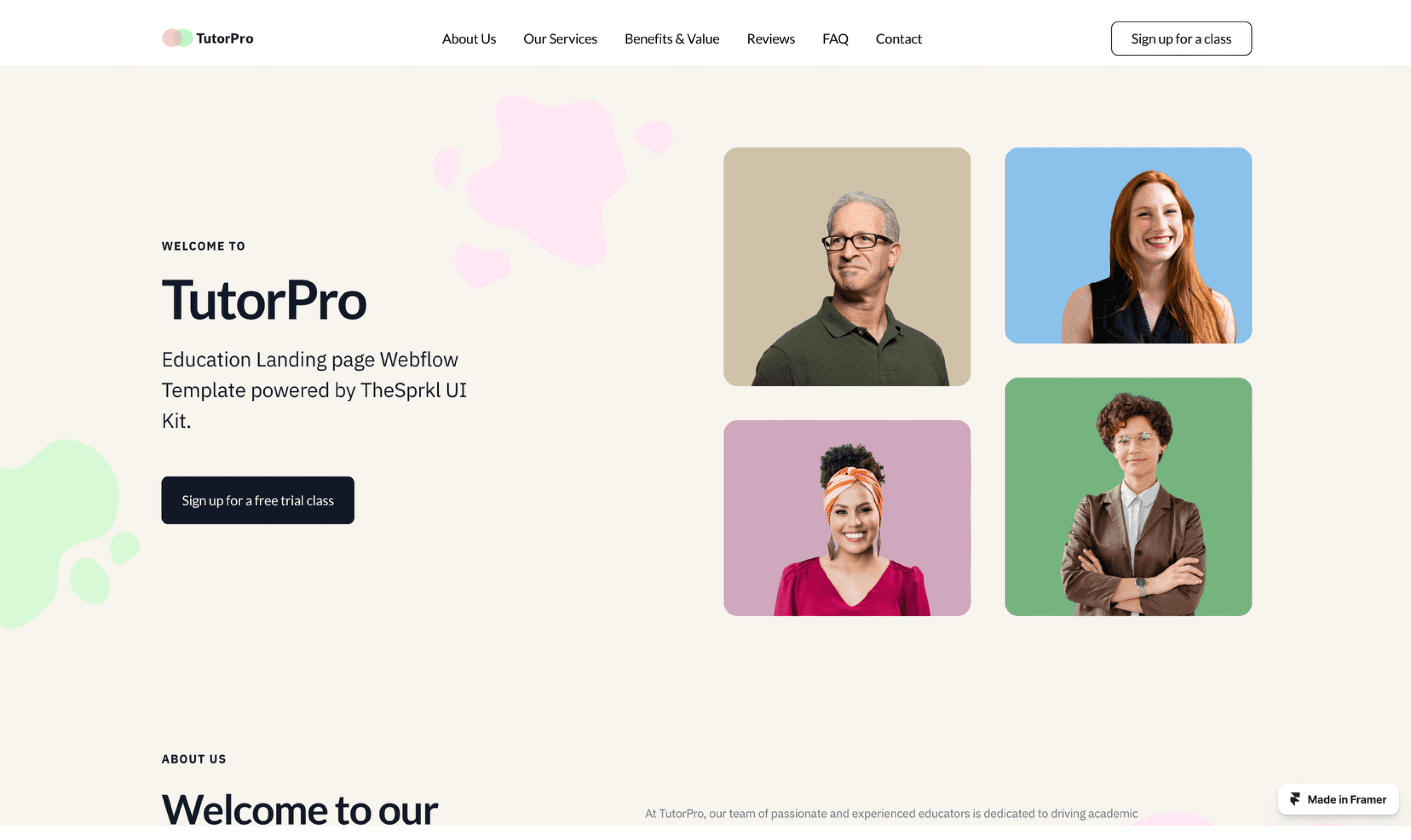 Brighten up your EdTech venture with TutorPro, a vibrant landing page template.