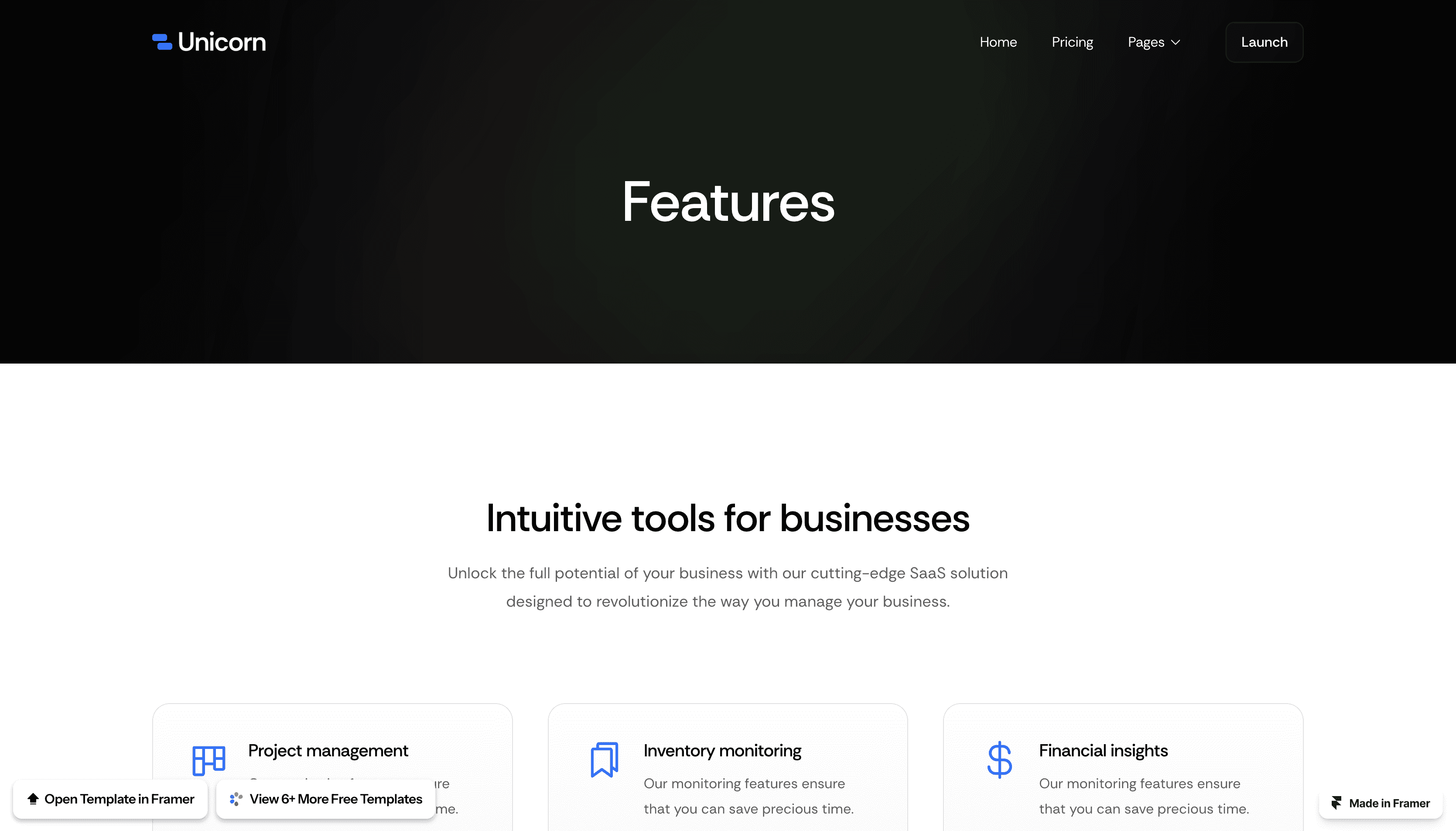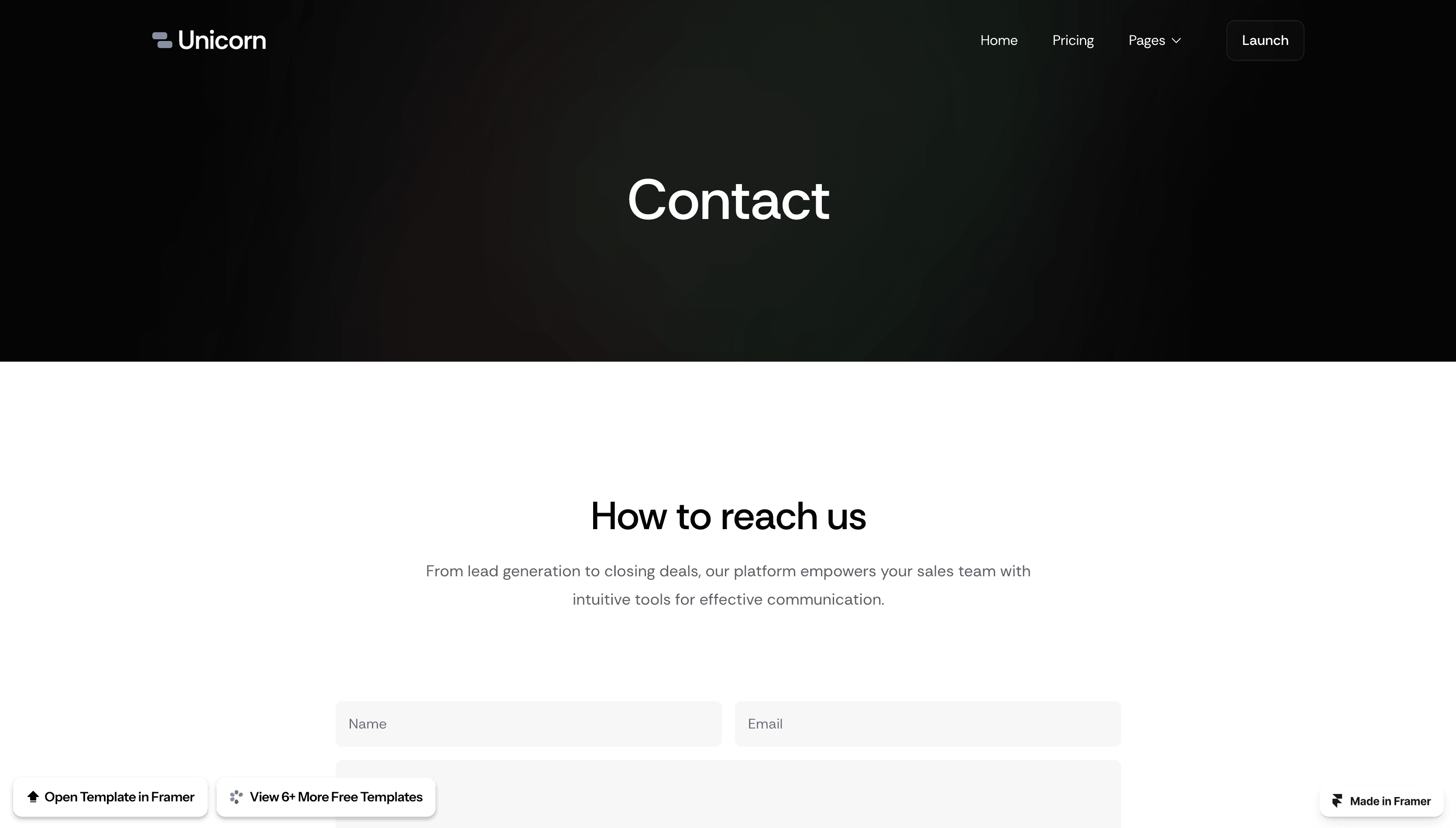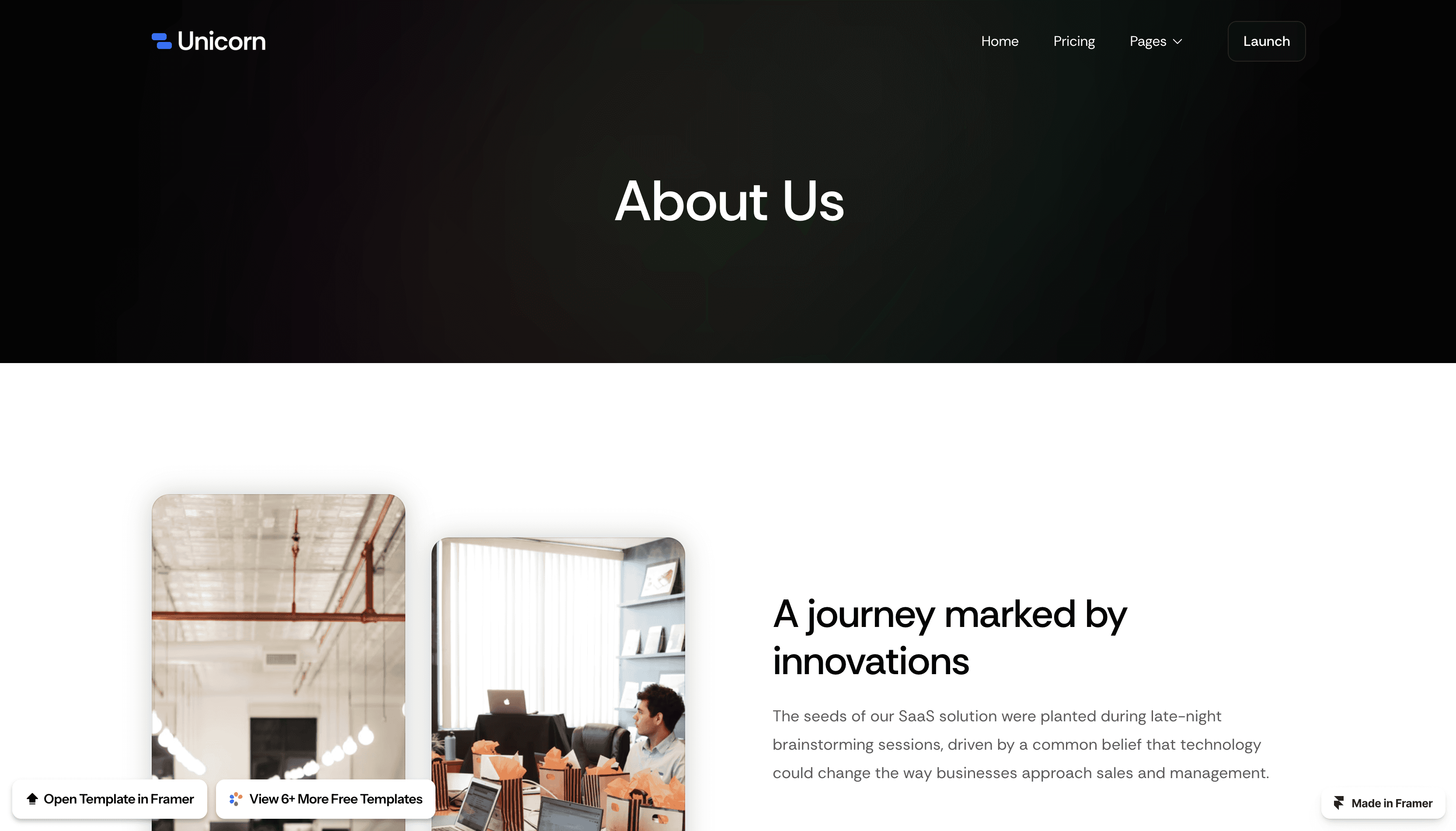 Unicorn is a Free Framer website template made for technology startups.
