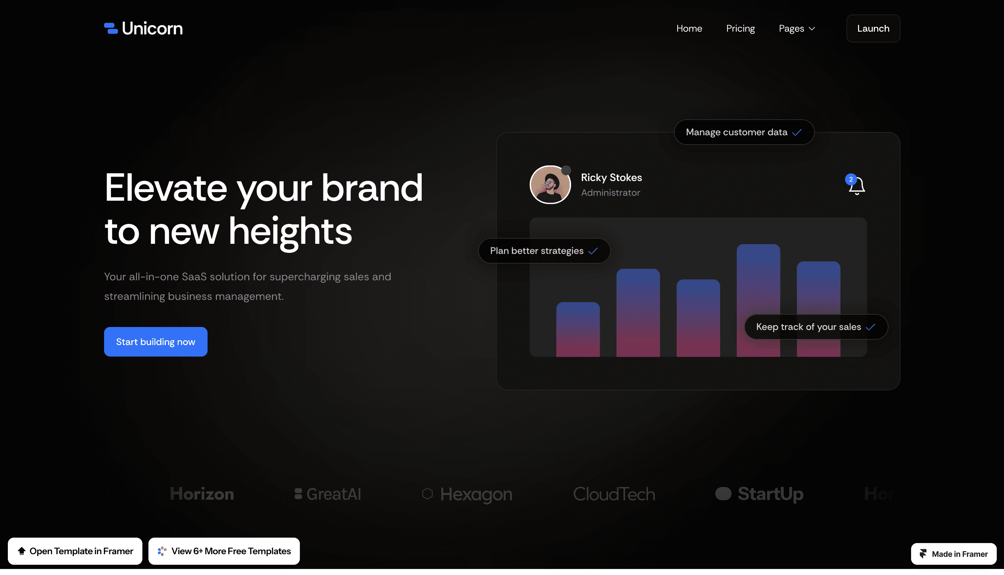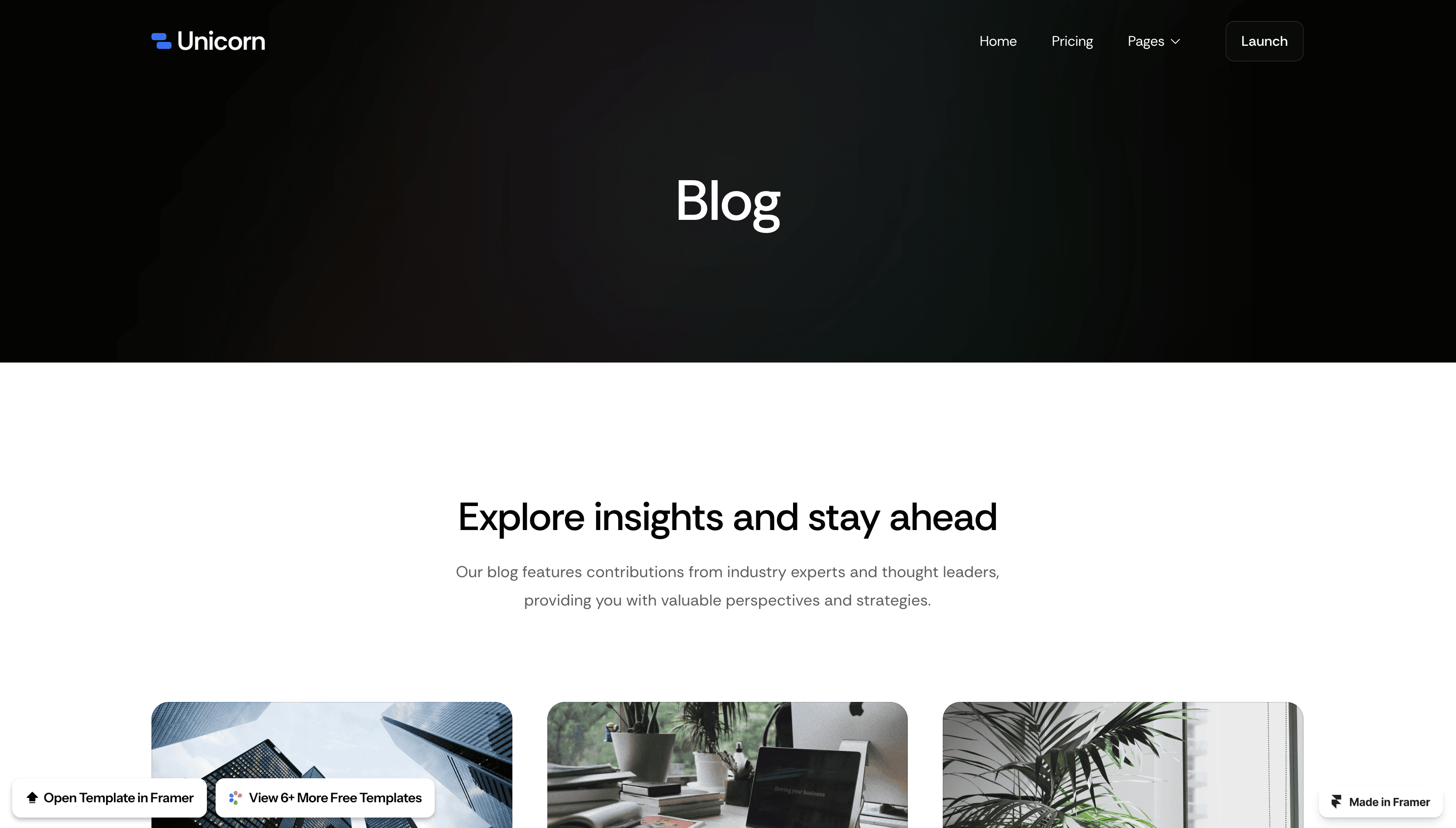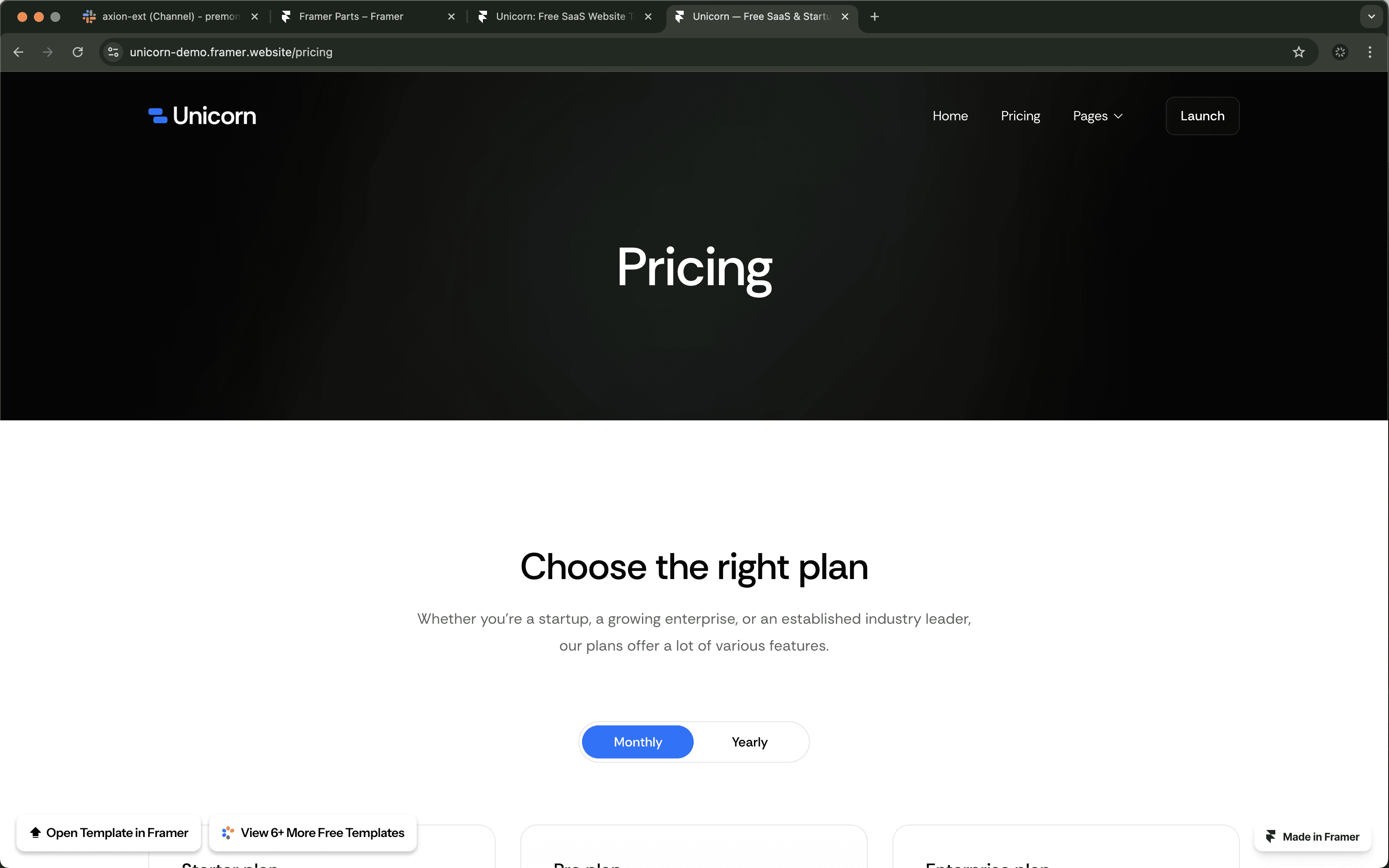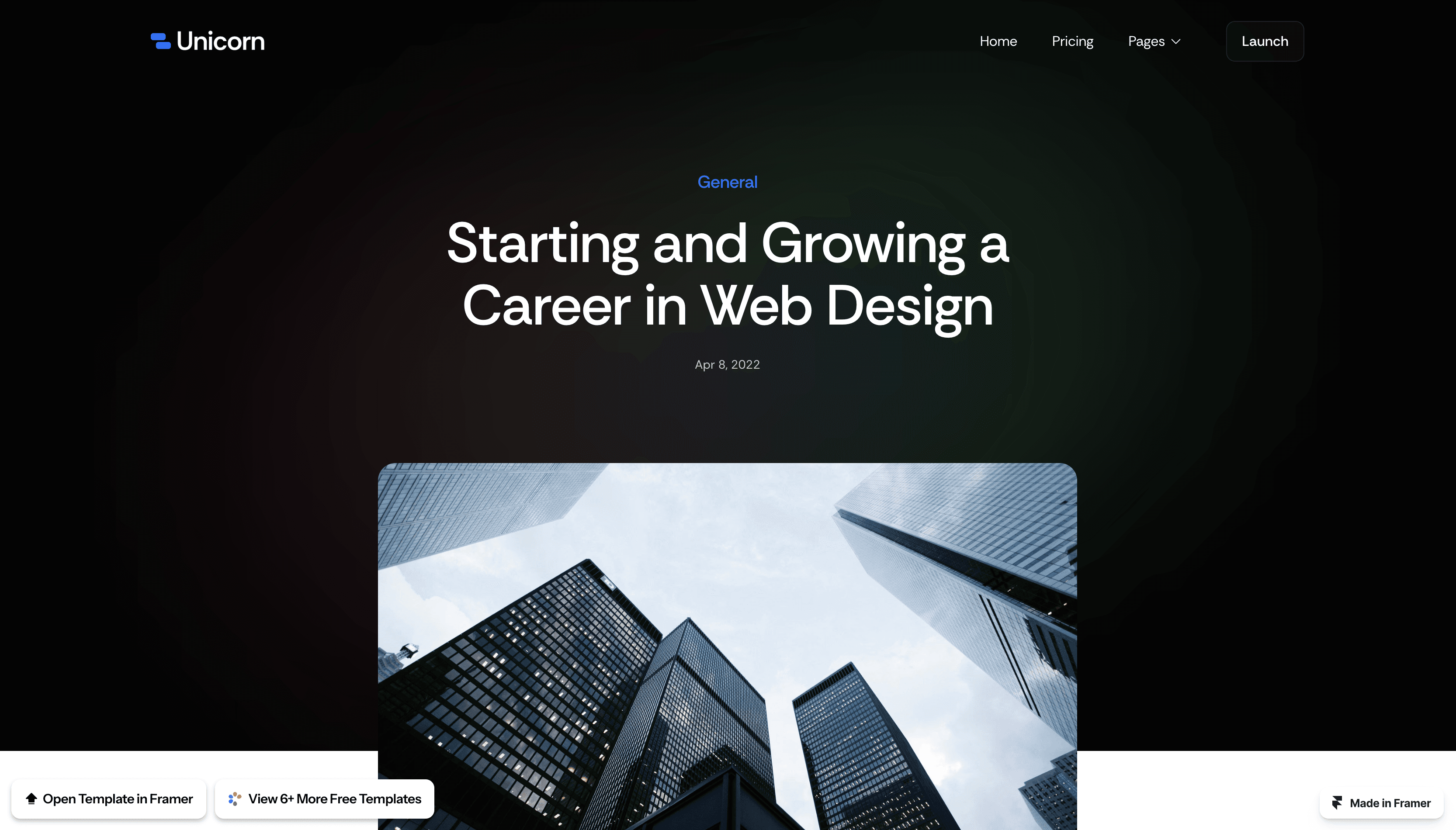 Unicorn is a Free Framer website template made for technology startups.