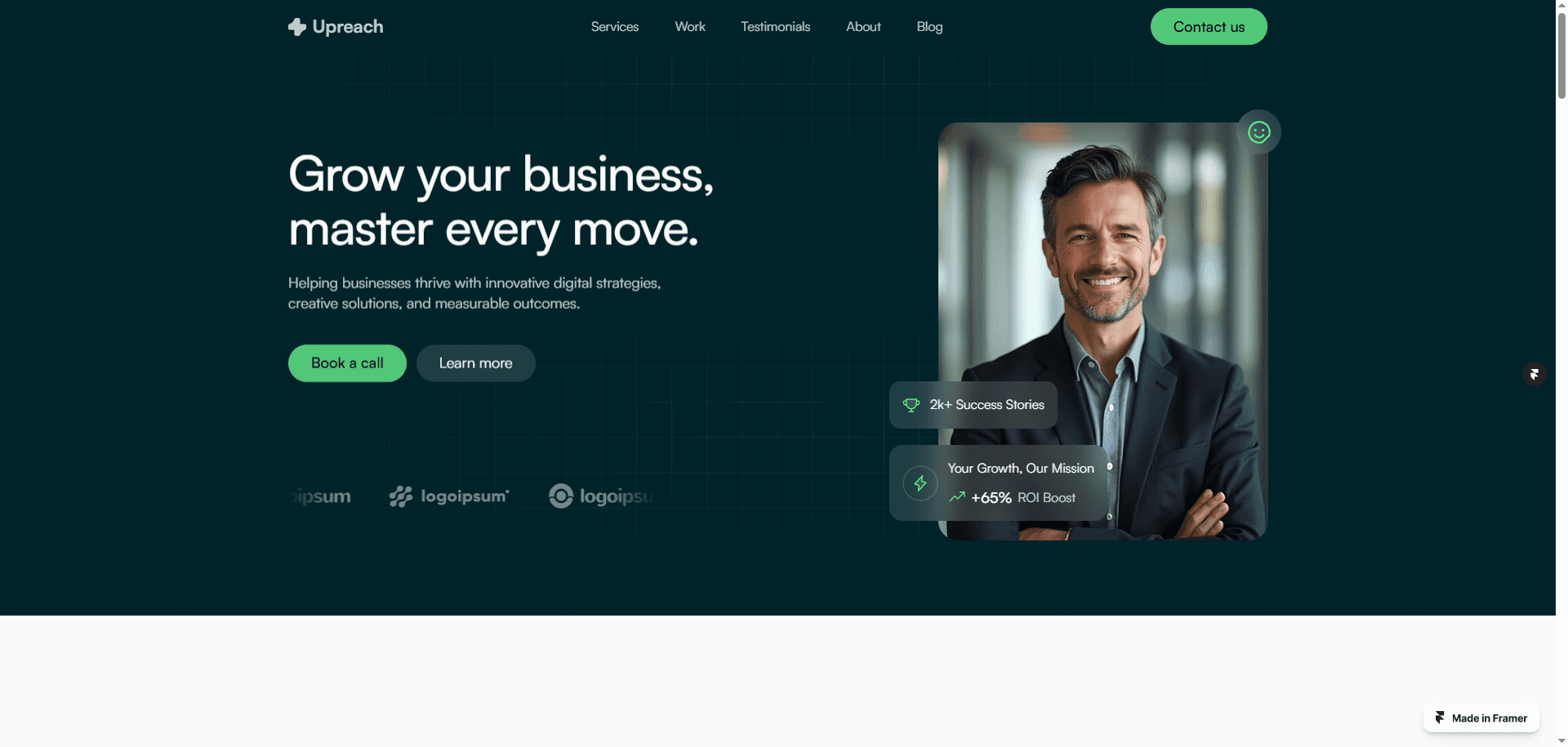This Framer template is perfect for digital marketing agencies, SEO experts, business consultants, and freelancers.