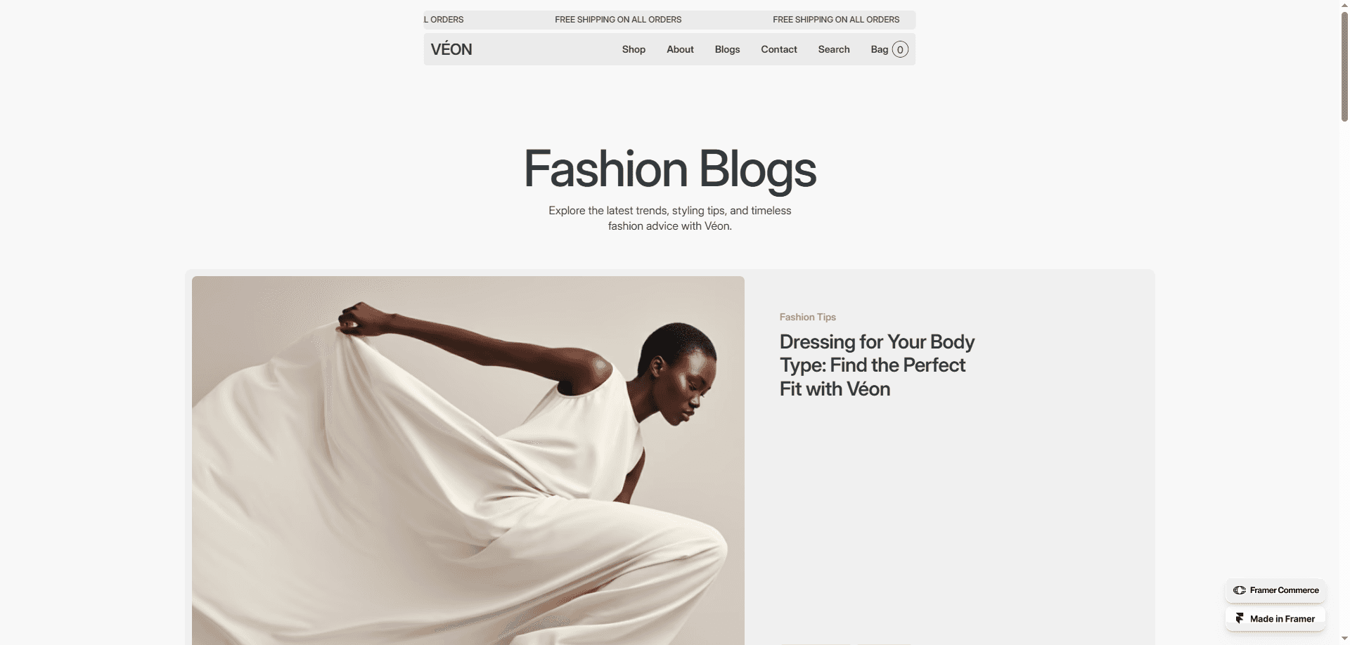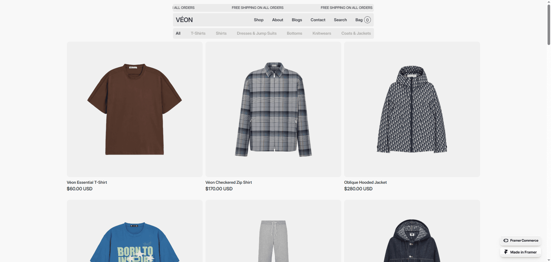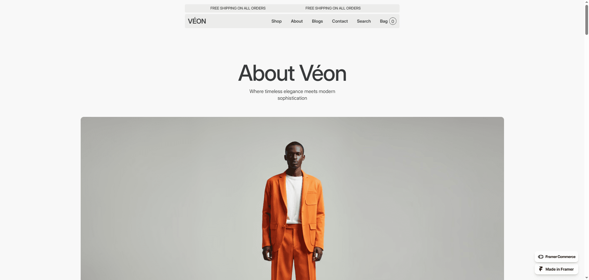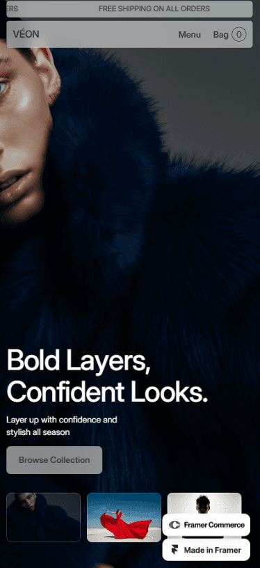 Veon is a high-quality, minimalist Framer template designed for clothing brands and e-commerce businesses.