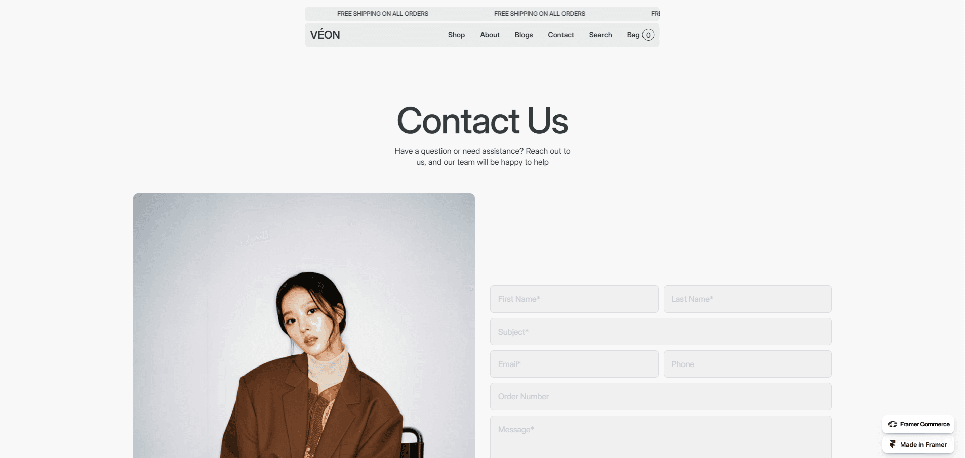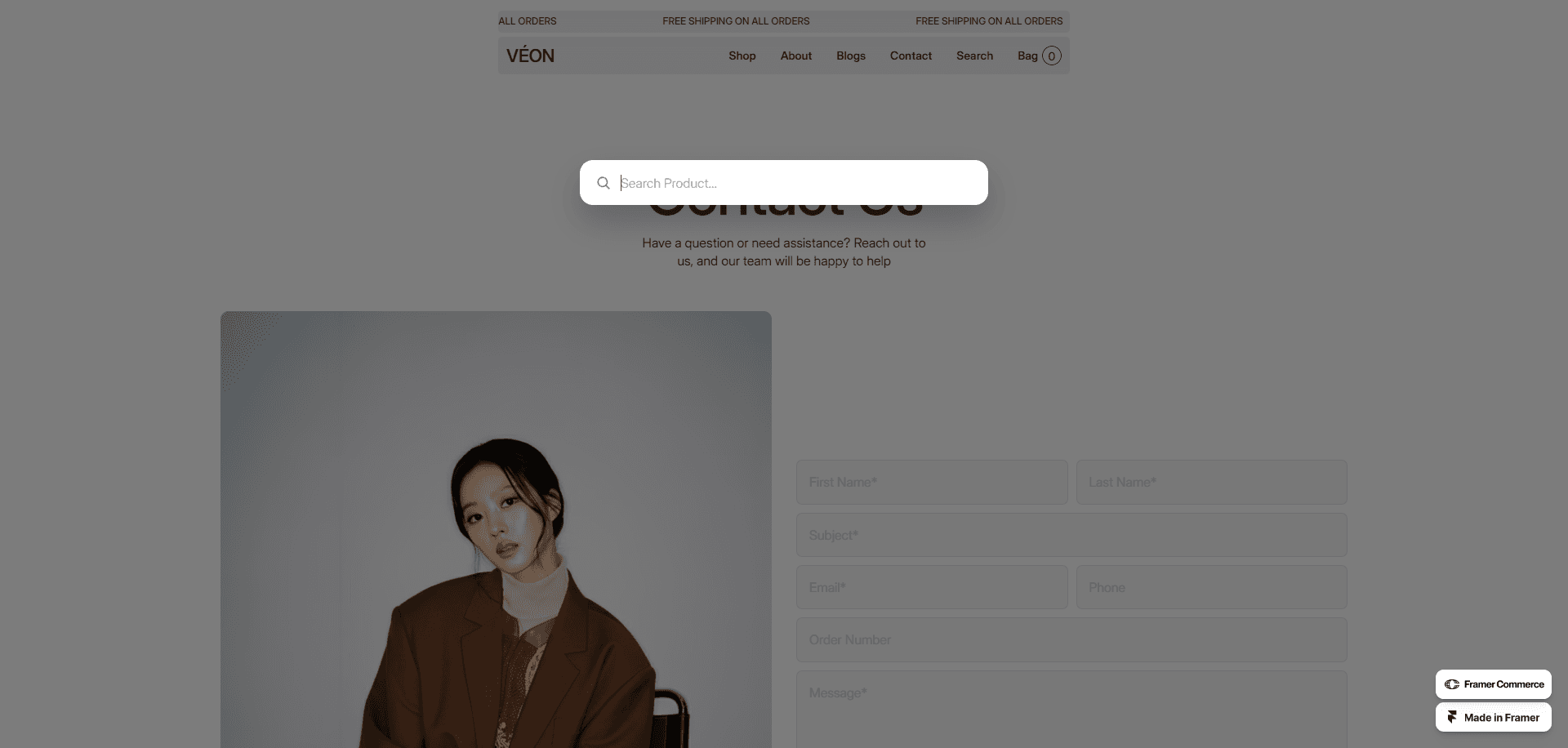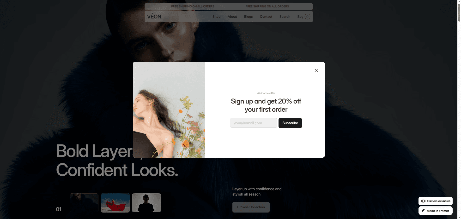 Veon is a high-quality, minimalist Framer template designed for clothing brands and e-commerce businesses.