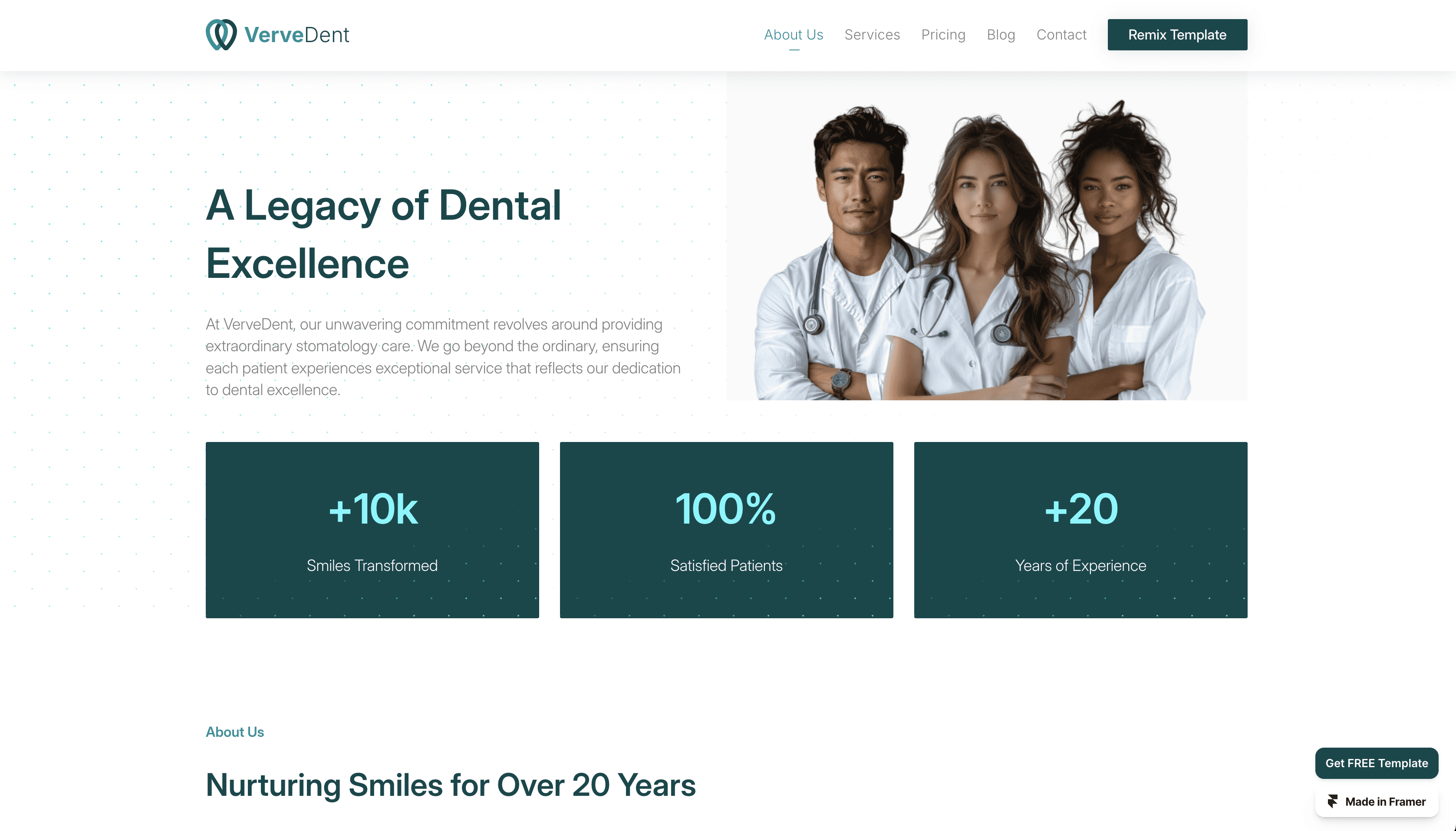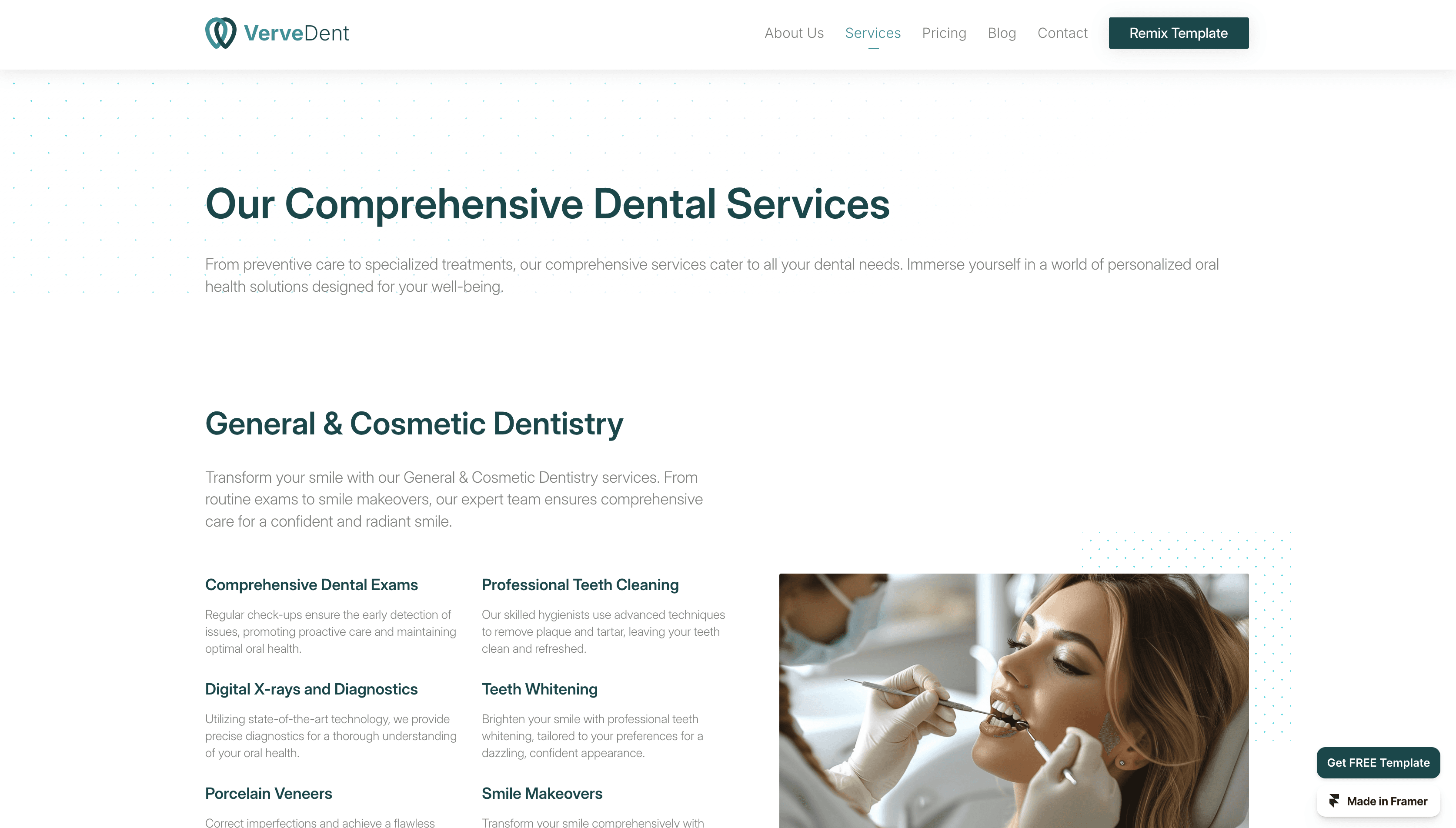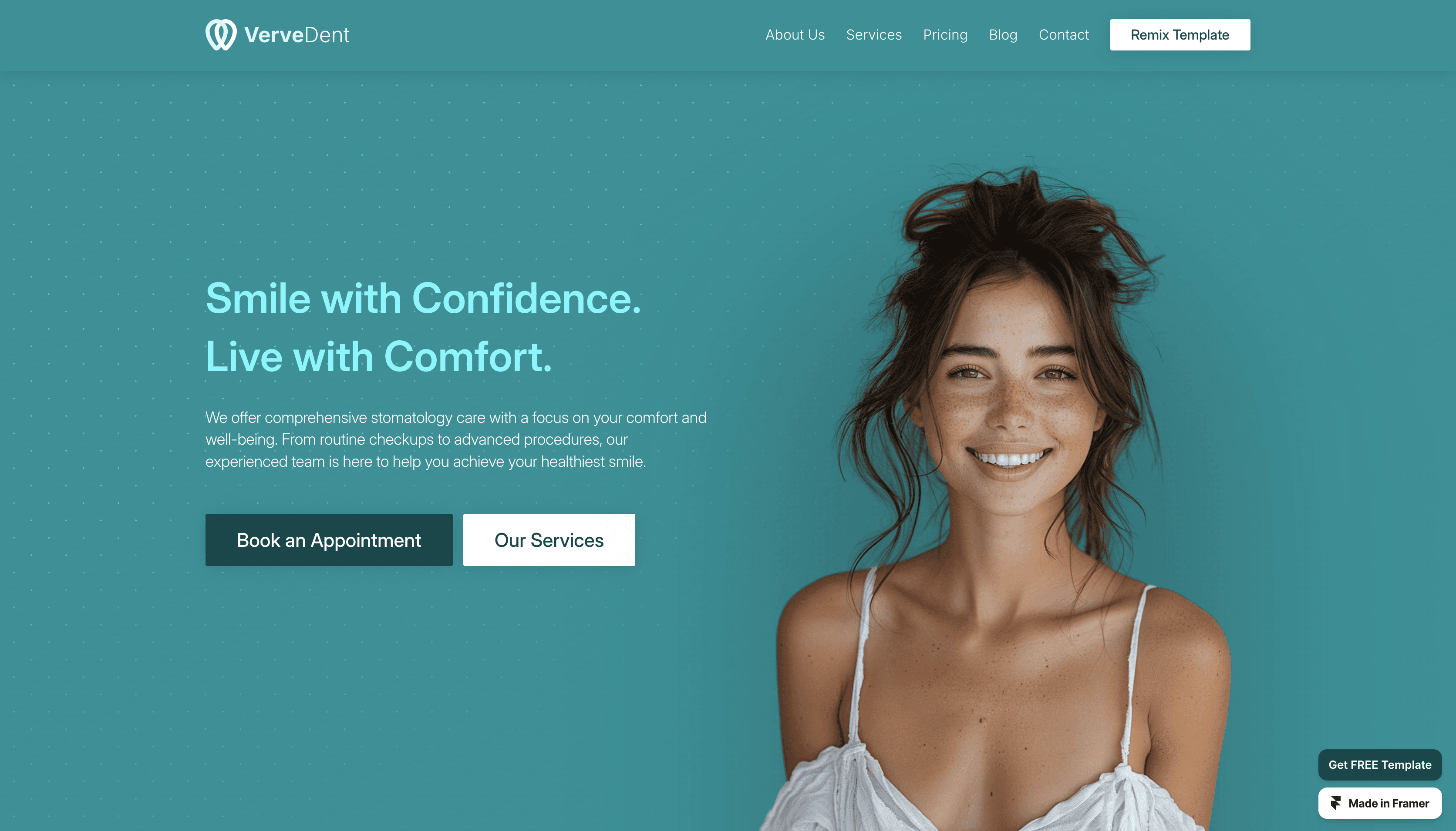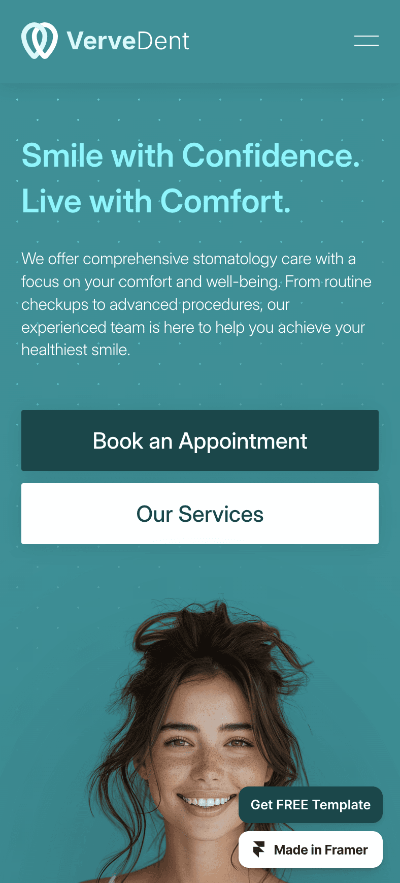 Introducing VerveDent, a template designed for modern dental clinics seeking a balance of professionalism and innovation.