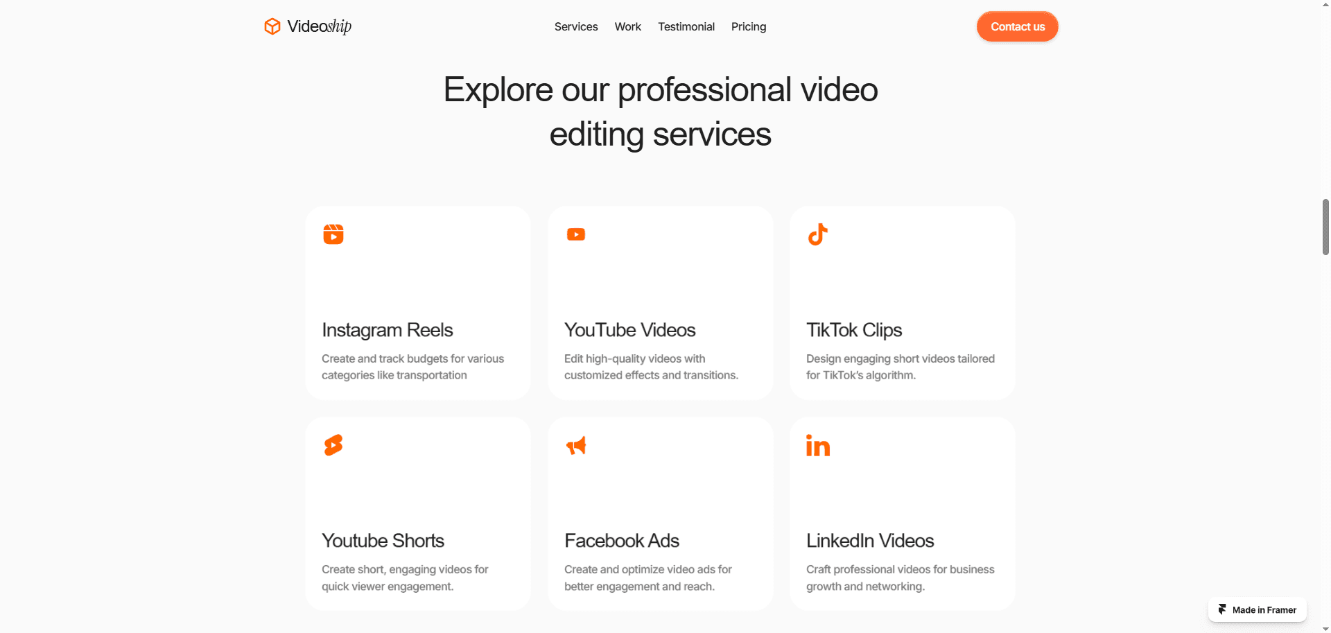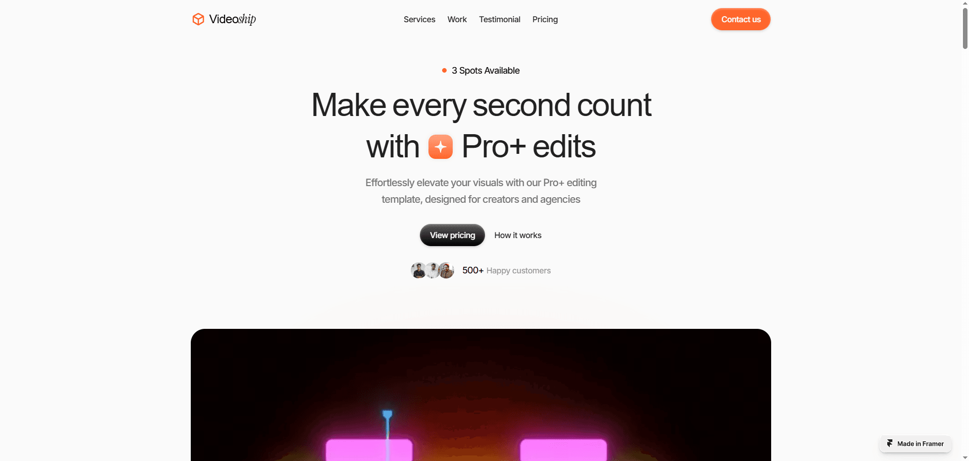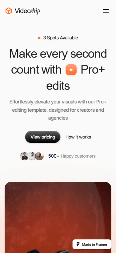 Videoship is perfect for video editing agencies that want a bold, professional, and high-converting online presence.