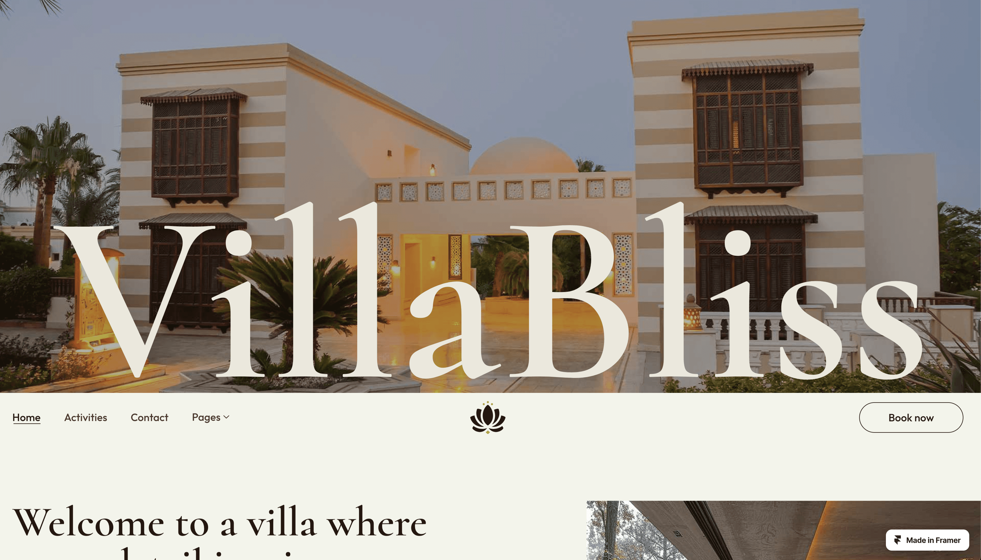 Villa Bliss is a real estate Framer template designed for showcasing a single property.