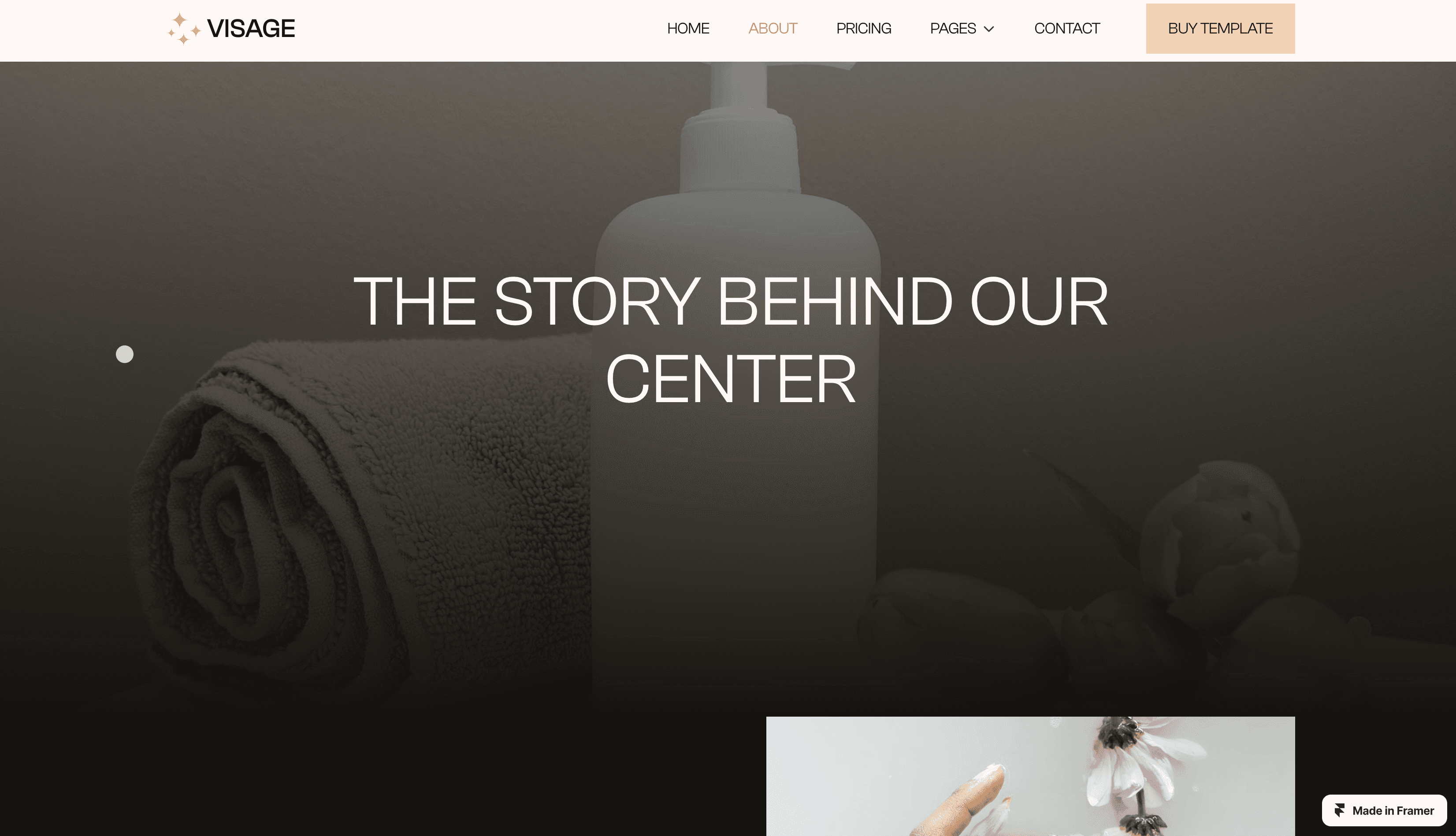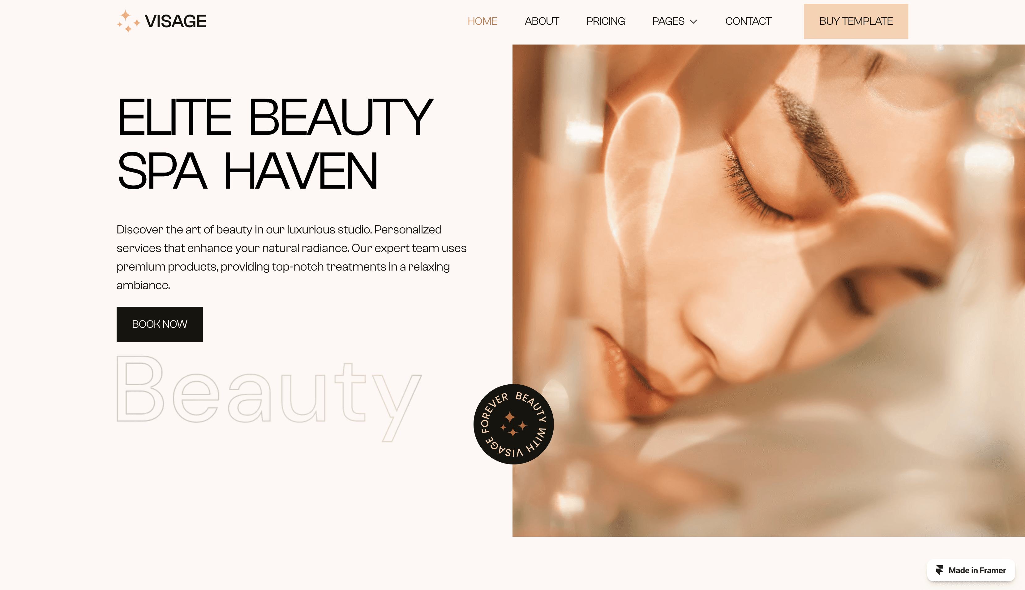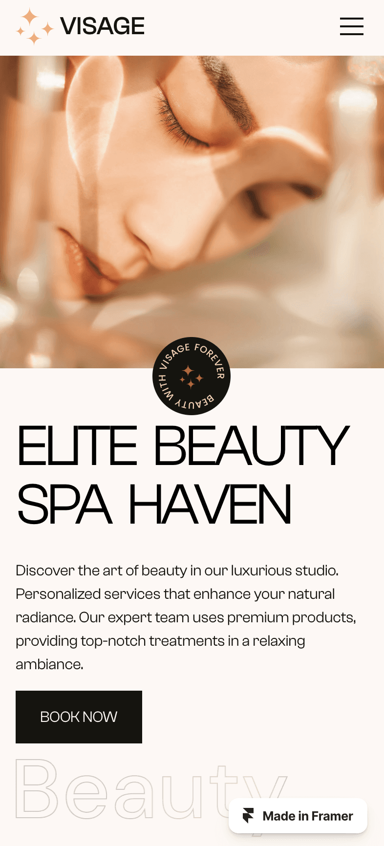 Visage is a versatile Framer template designed to provide an ideal solution for beauty spa business websites.