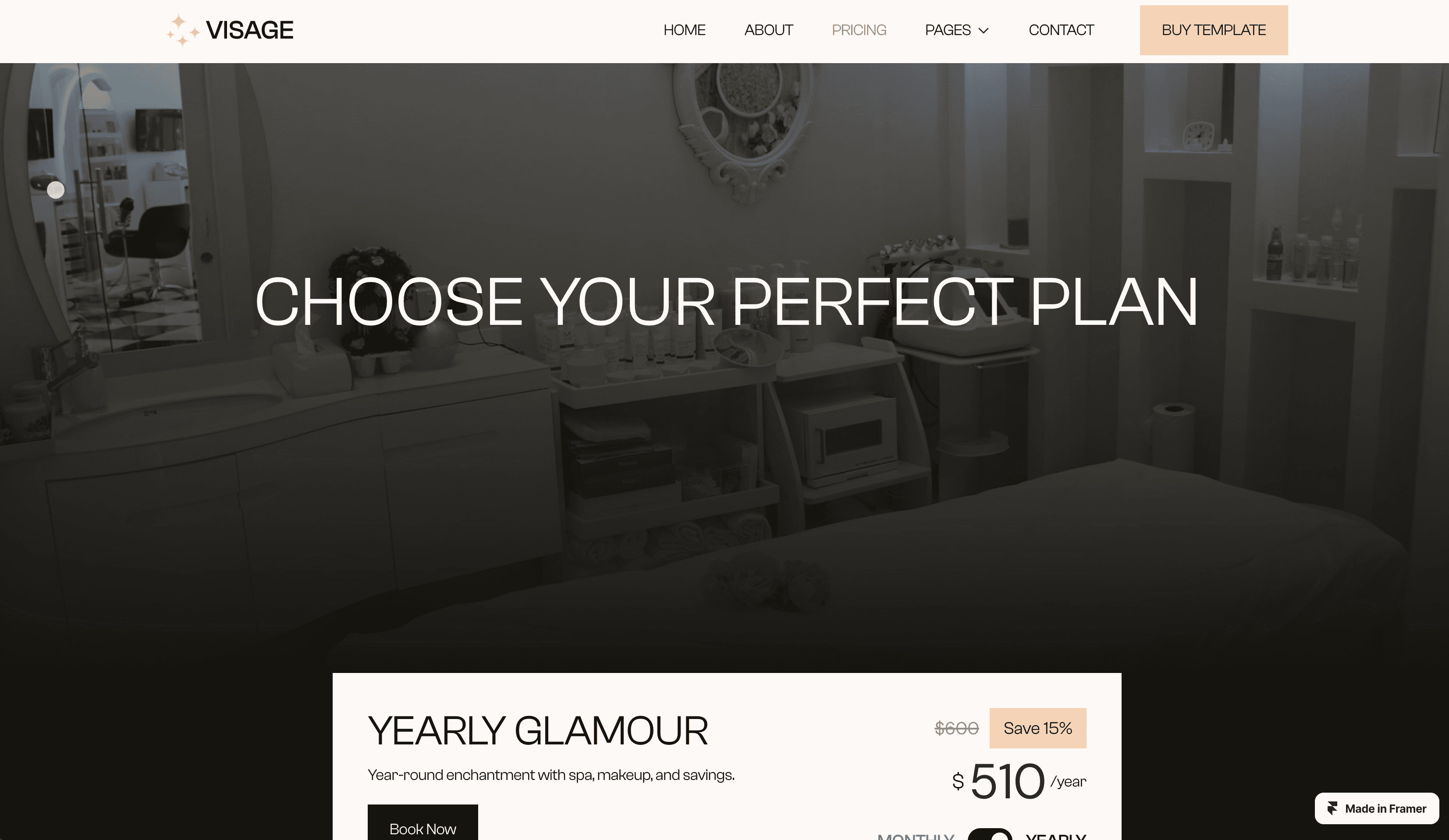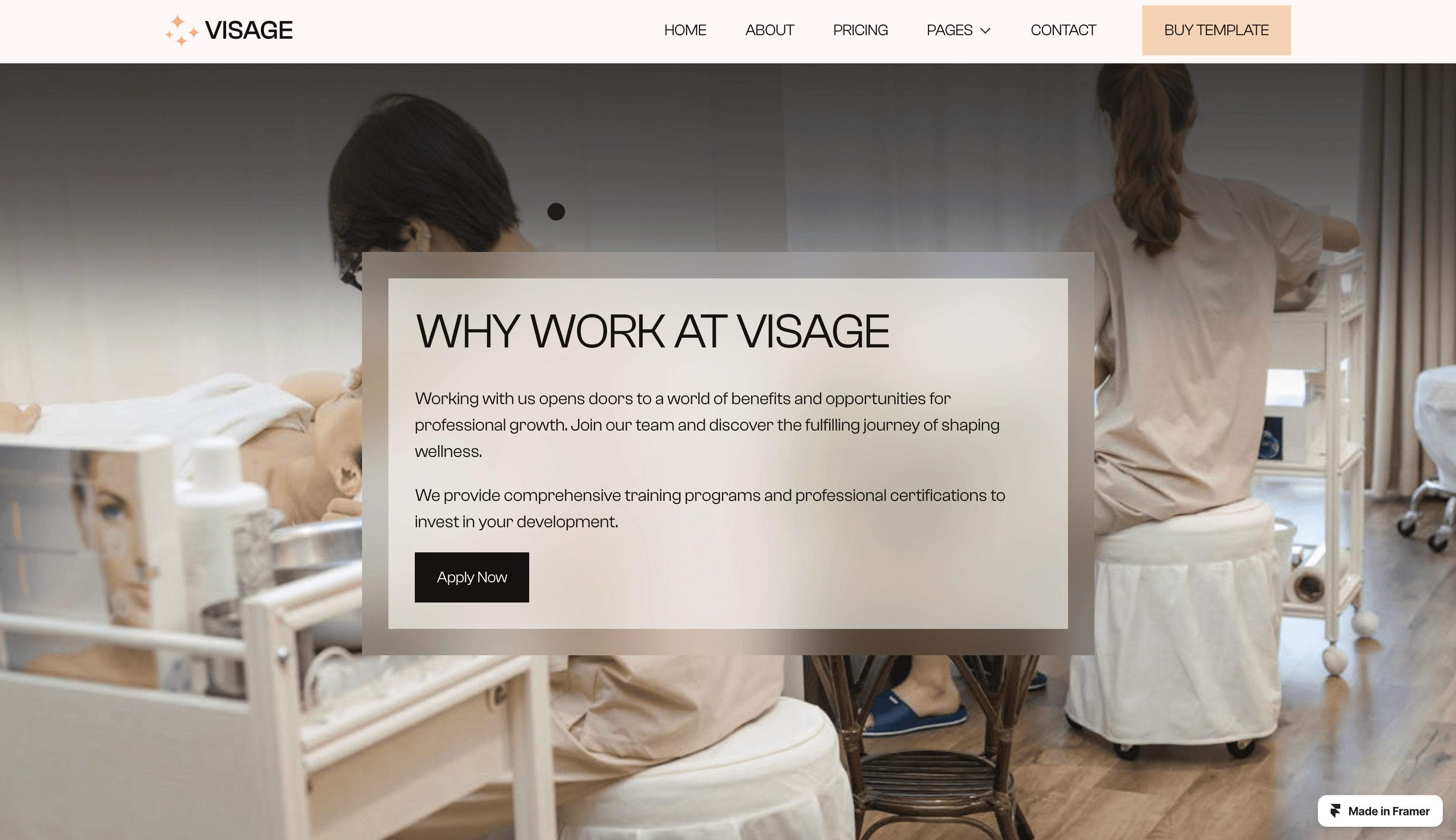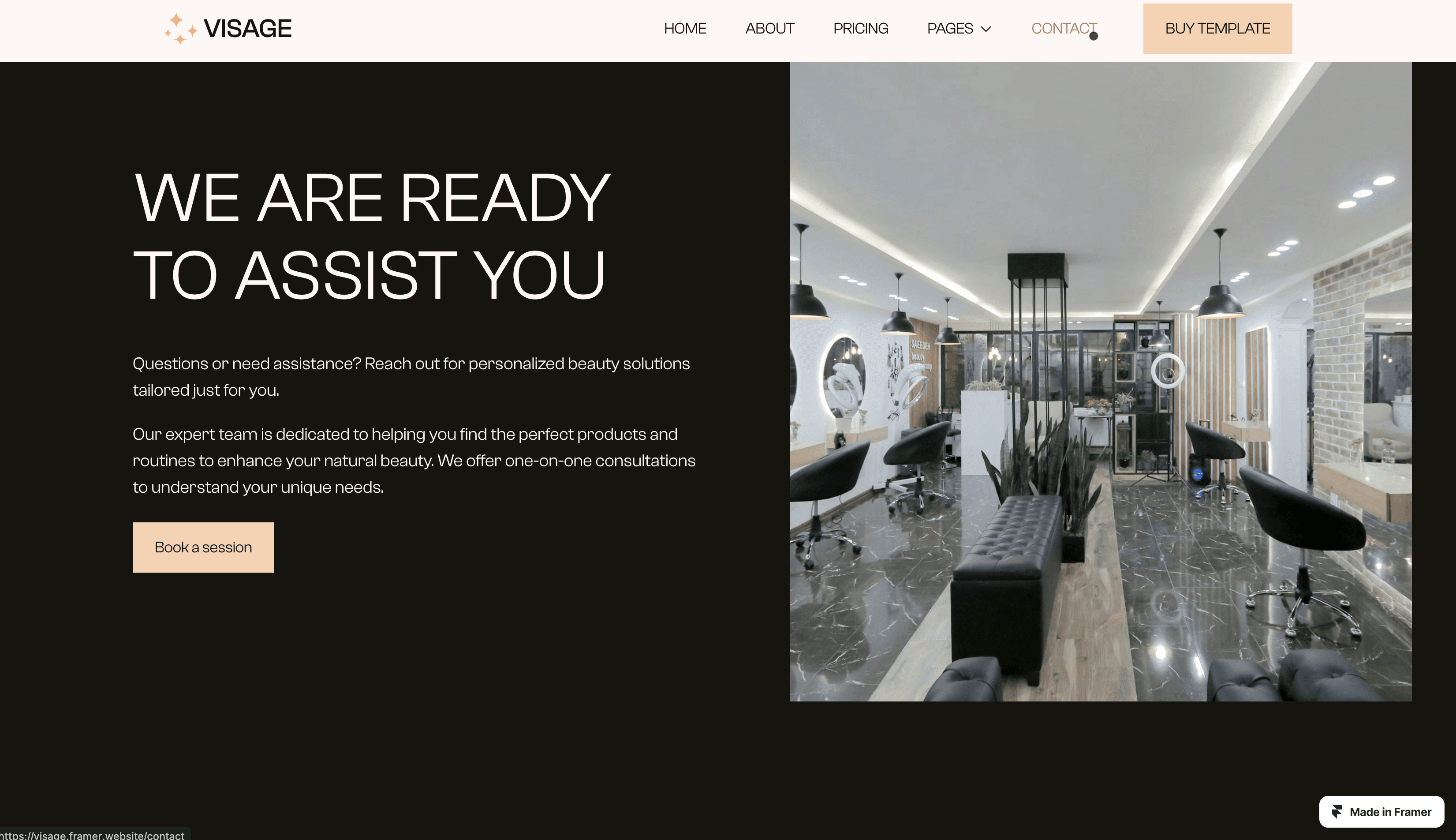 Visage is a versatile Framer template designed to provide an ideal solution for beauty spa business websites.
