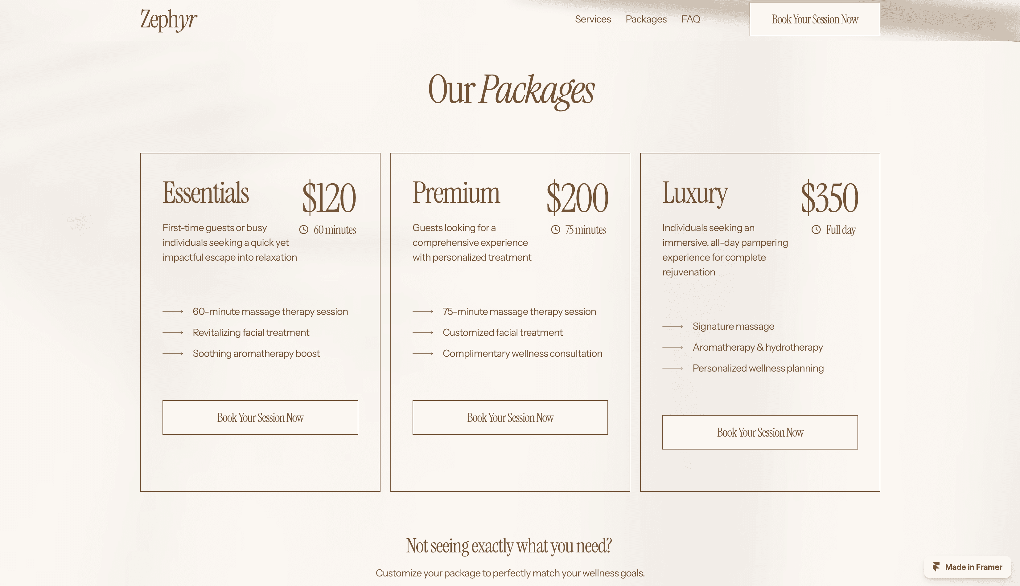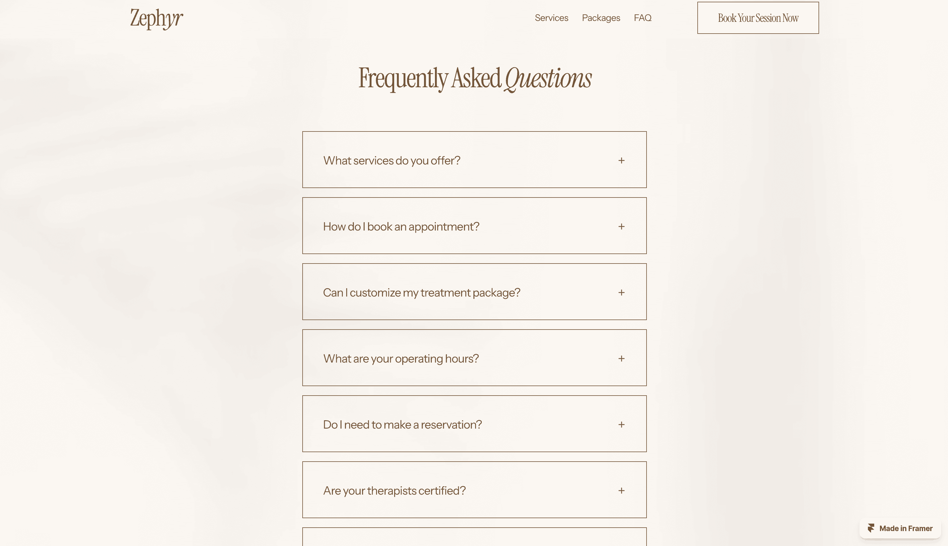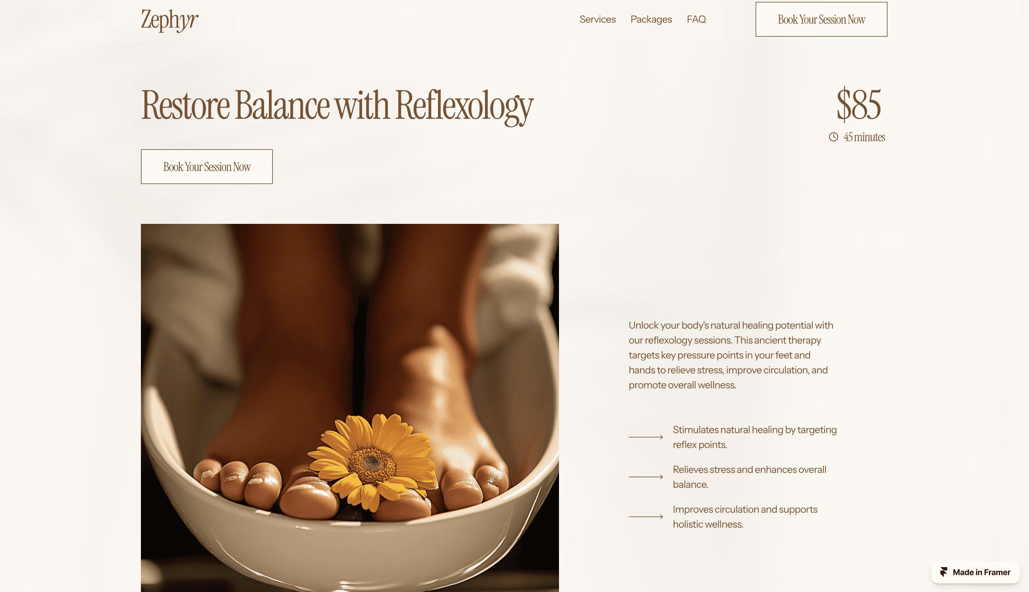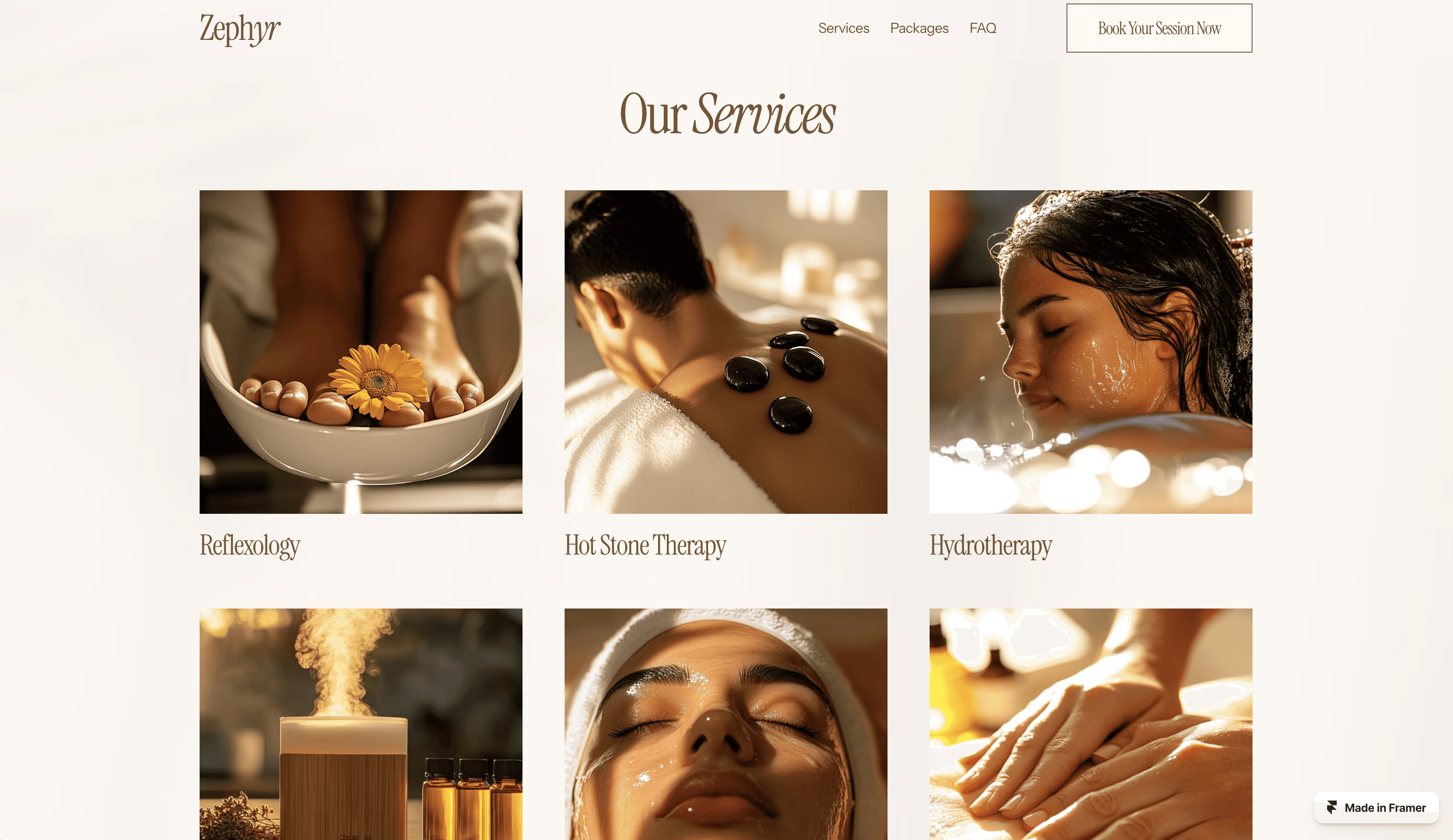 Zephyr is a serene, fully responsive Framer template crafted for spas and wellness centers. Showcase services, engage clients, and elevate your brand effortlessly.